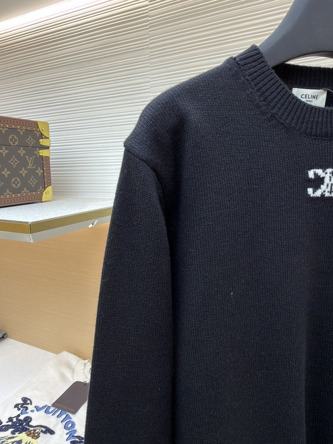 这款衣服是AAAAA 1:1 质量 (非常棒). 使用了和原版一模一样的材料. 商标部分也保持了和思琳/Celine一样. 图片拍摄是实物衣服拍摄, 您所收到的实物保证和我们图片一模一样.