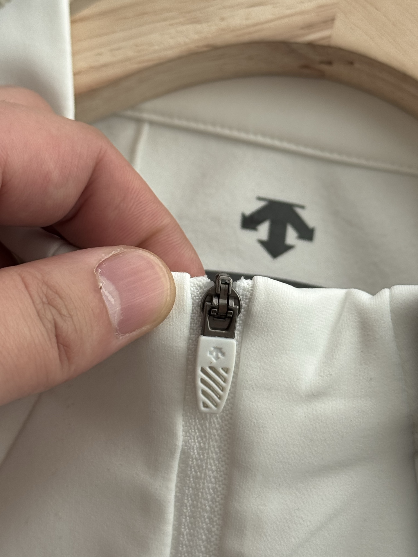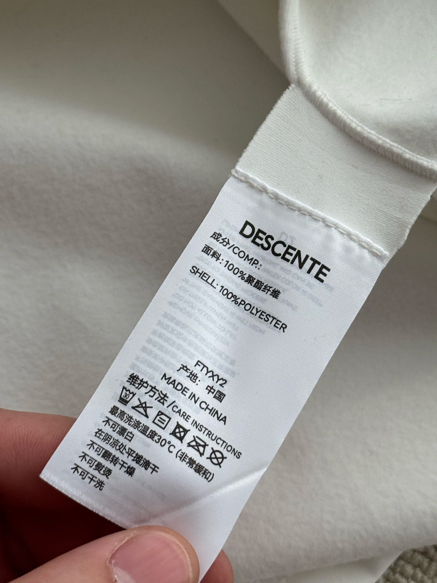 这款衣服是AAAAA 1:1 质量 (非常棒). 使用了和原版一模一样的材料. 商标部分也保持了和Descente一样. 图片拍摄是实物衣服拍摄, 您所收到的实物保证和我们图片一模一样.
