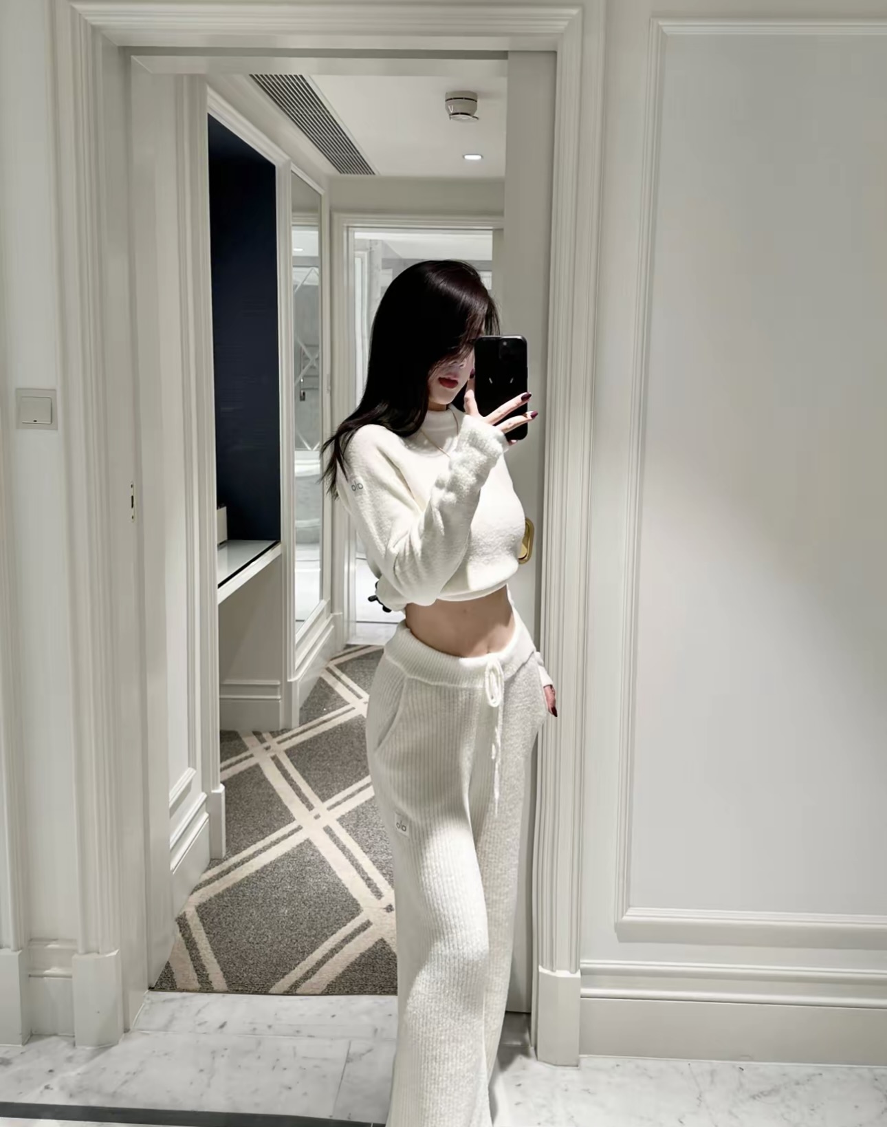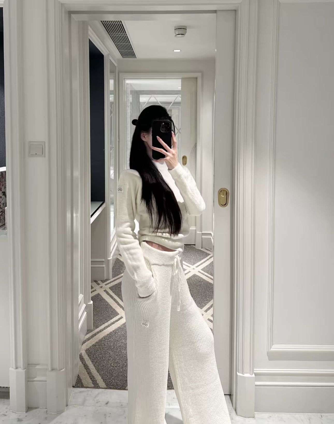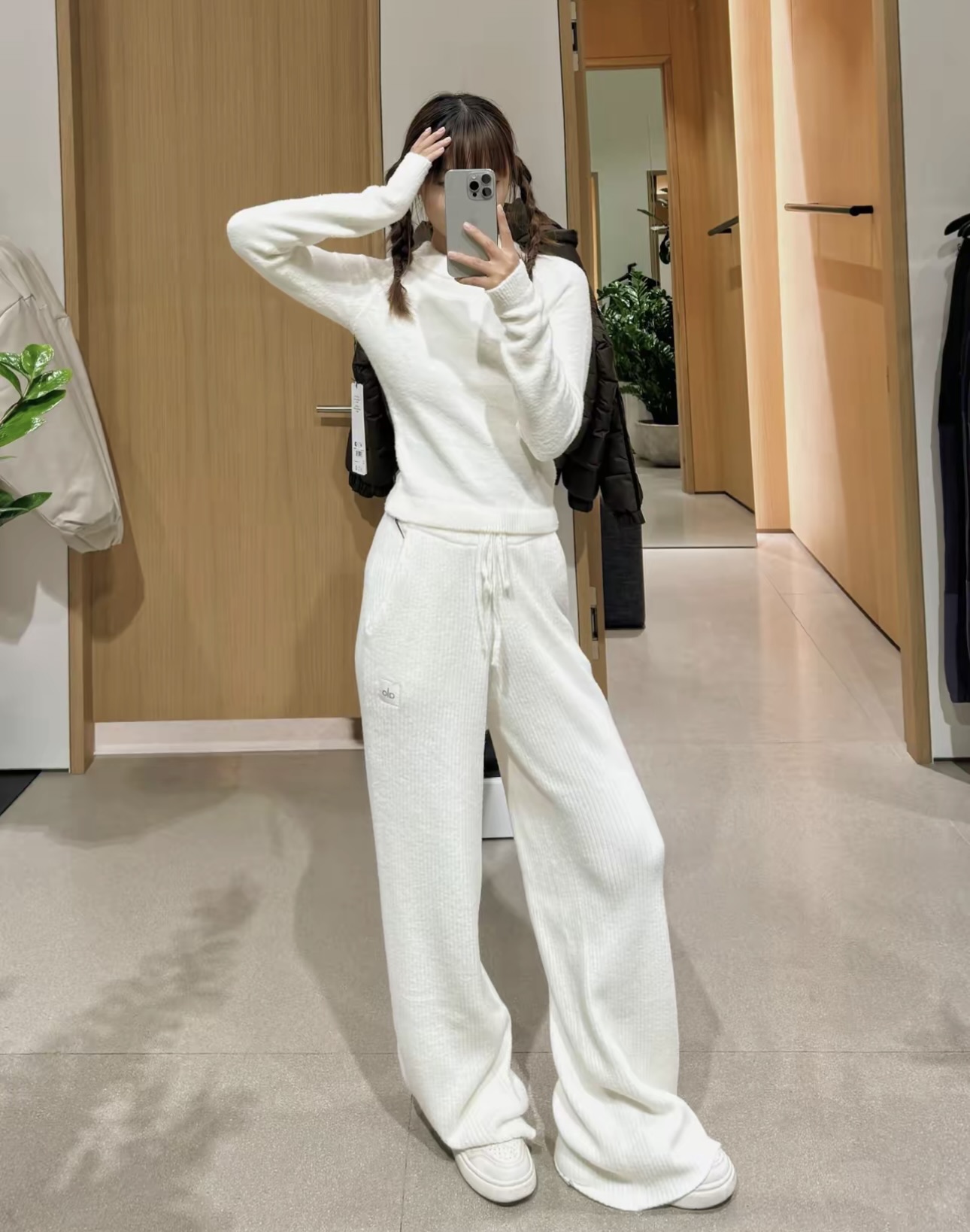 这款衣服是AAAAA 1:1 质量 (非常棒). 使用了和原版一模一样的材料. 商标部分也保持了和Alo Yoga一样. 图片拍摄是实物衣服拍摄, 您所收到的实物保证和我们图片一模一样.