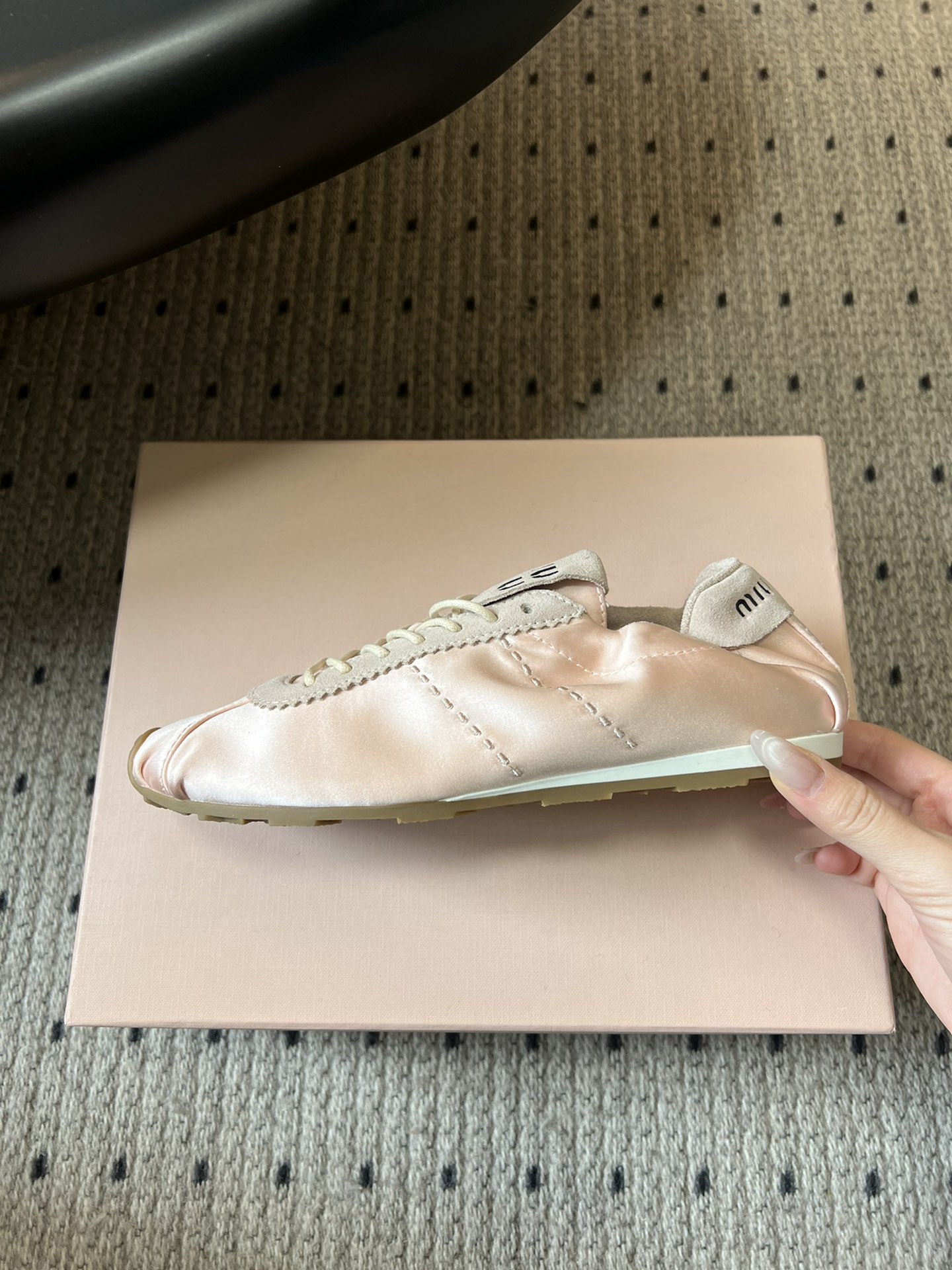 这款鞋子是AAAAA 1:1 质量 (非常棒). 使用了和原版一模一样的材料. 商标部分也保持了和缪缪/Miu Miu一样. 图片拍摄是实物鞋子拍摄, 您所收到的实物保证和我们图片一模一样.