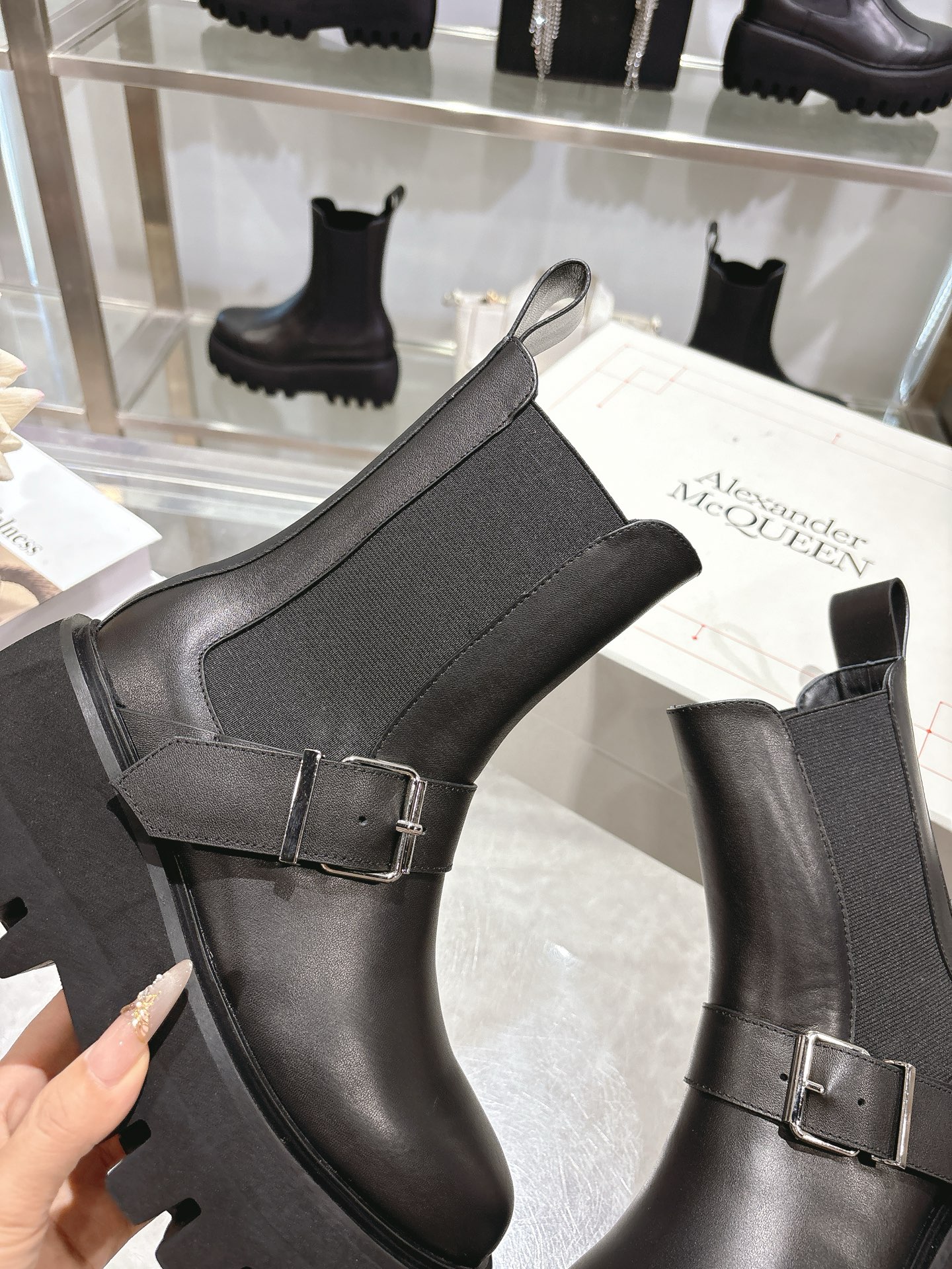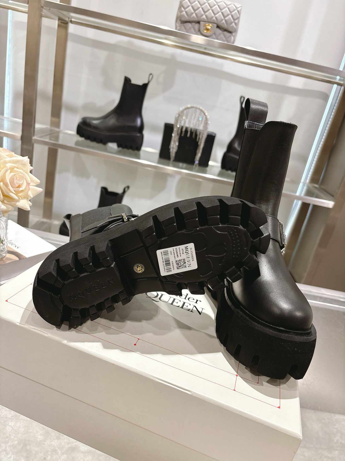 这款鞋子是AAAAA 1:1 质量 (非常棒). 使用了和原版一模一样的材料. 商标部分也保持了和亚历山大·麦昆/McQueen一样. 图片拍摄是实物鞋子拍摄, 您所收到的实物保证和我们图片一模一样.
