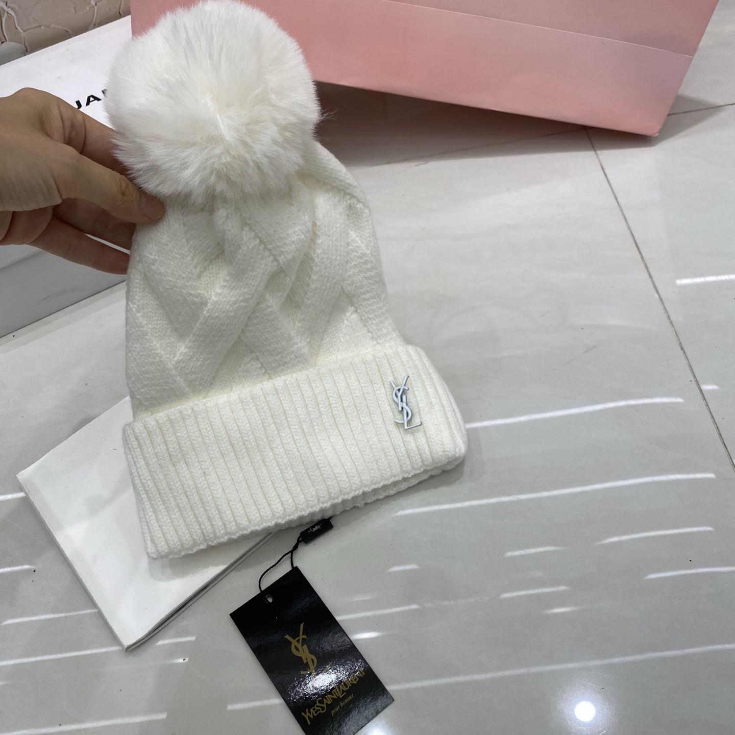 这款帽子是AAAAA 1:1 质量 (非常棒). 使用了和原版一模一样的材料. 商标部分也保持了和圣罗兰/Saint Laurent一样. 图片拍摄是实物帽子拍摄, 您所收到的实物保证和我们图片一模一样.