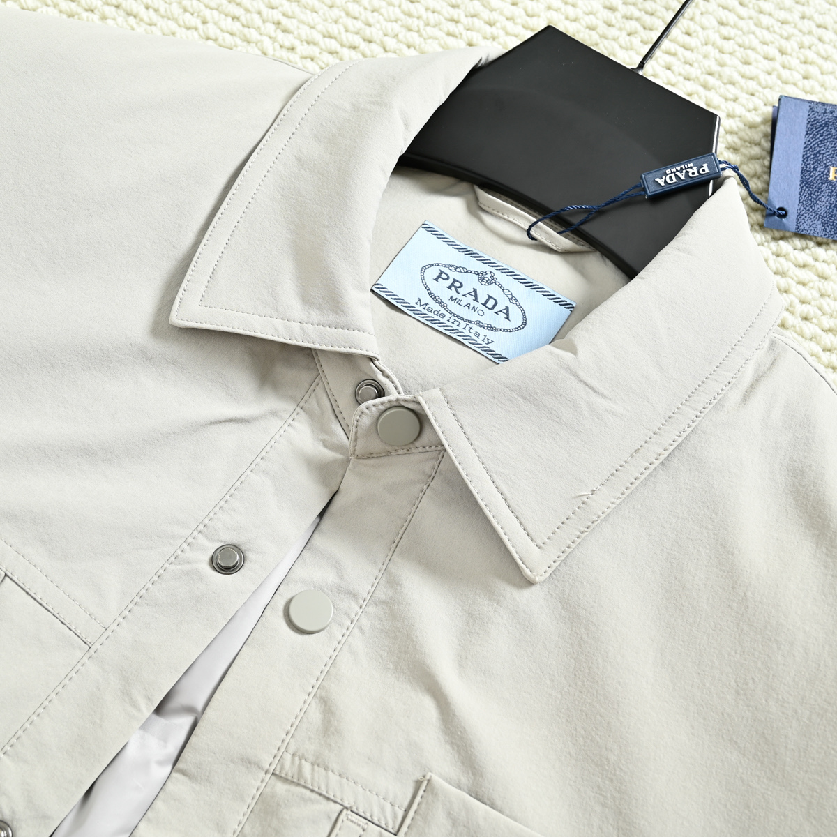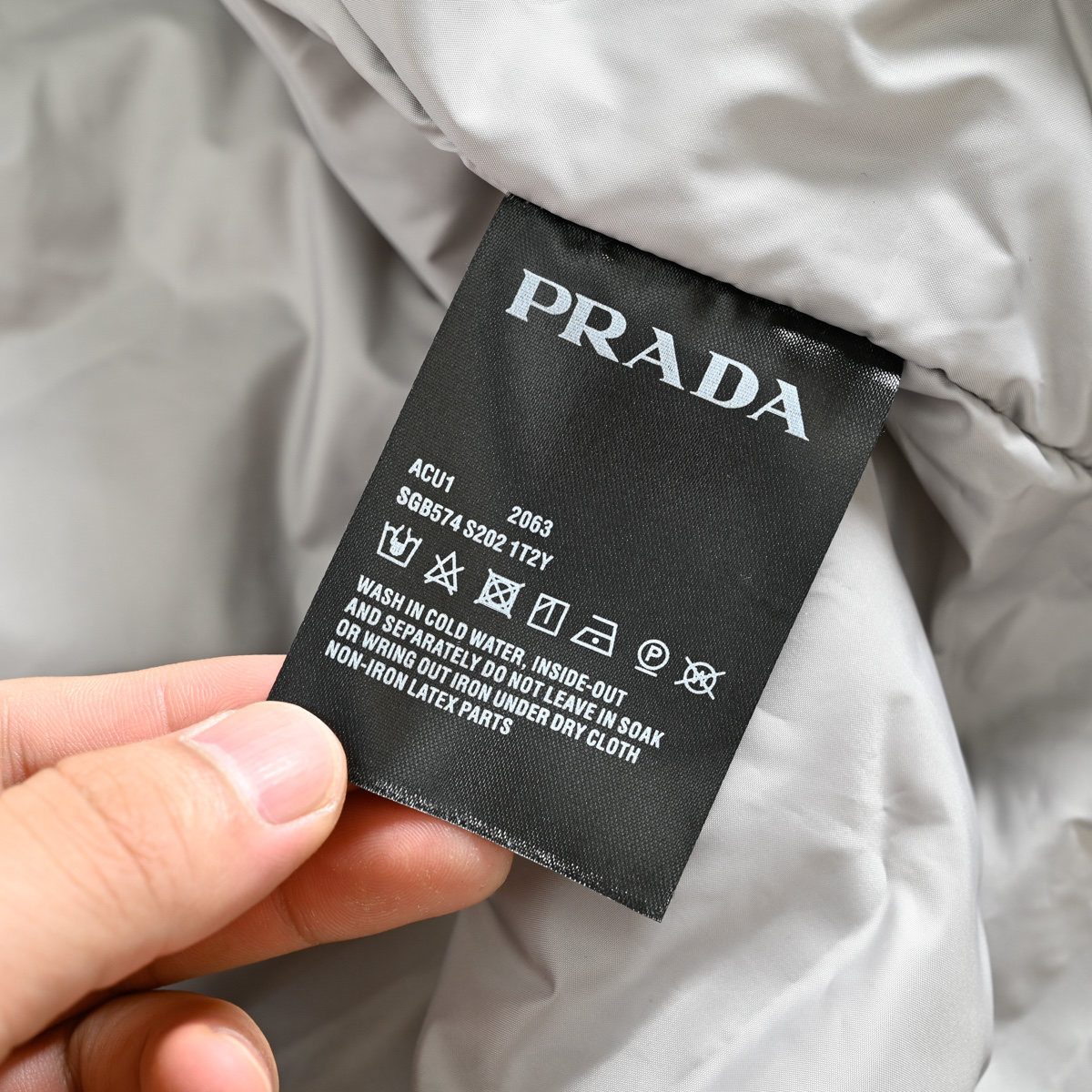这款衣服是AAAAA 1:1 质量 (非常棒). 使用了和原版一模一样的材料. 商标部分也保持了和普拉达/Prada一样. 图片拍摄是实物衣服拍摄, 您所收到的实物保证和我们图片一模一样.