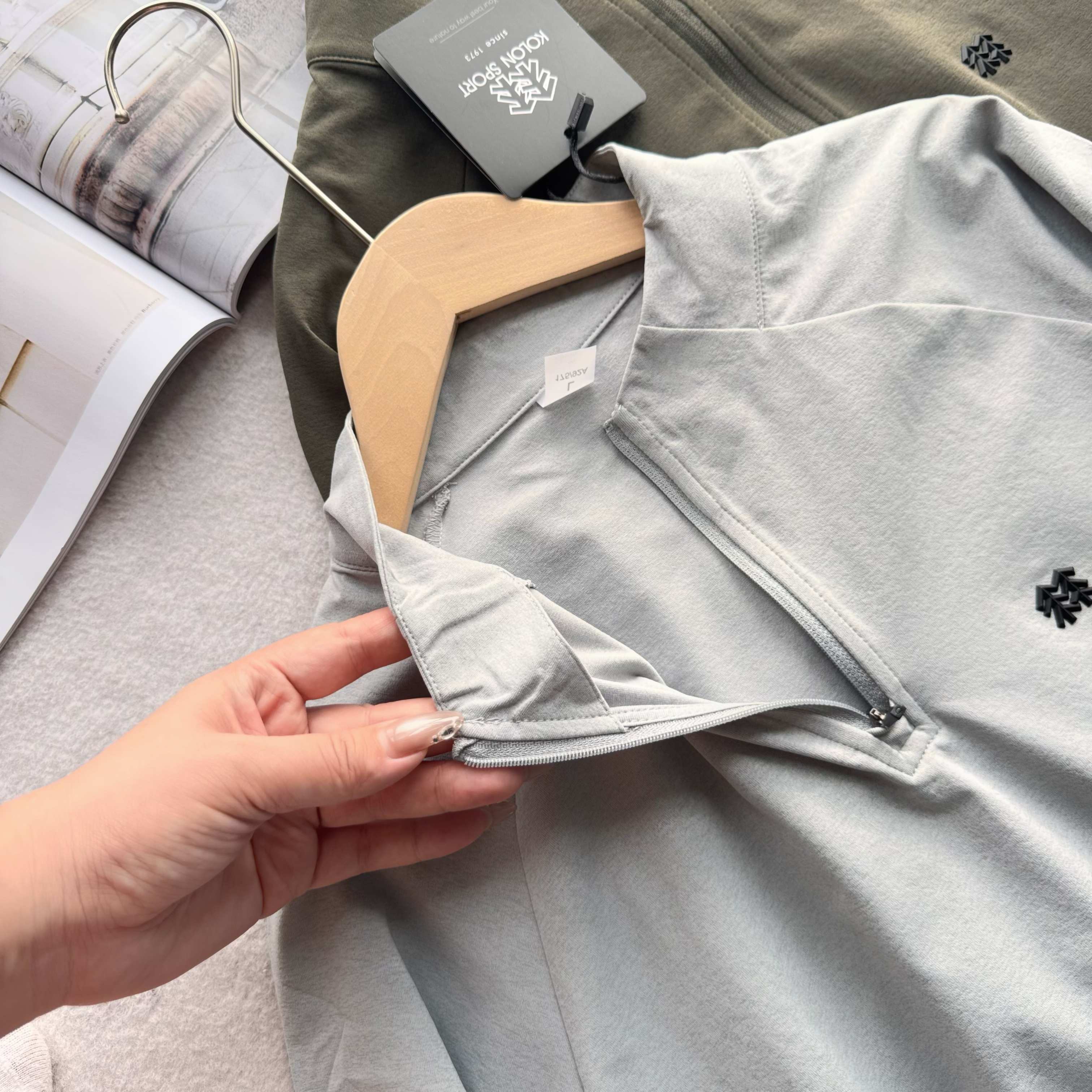 这款衣服是AAAAA 1:1 质量 (非常棒). 使用了和原版一模一样的材料. 商标部分也保持了和Descente一样. 图片拍摄是实物衣服拍摄, 您所收到的实物保证和我们图片一模一样.