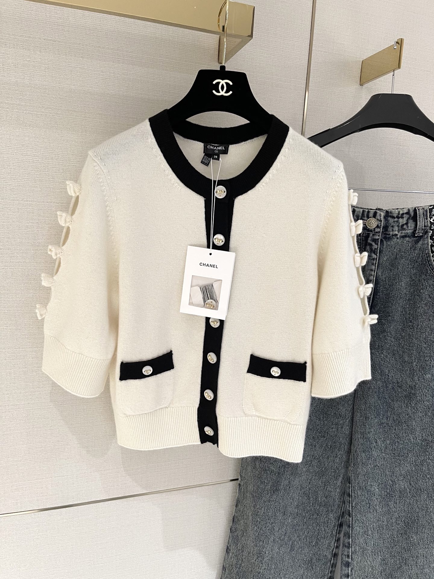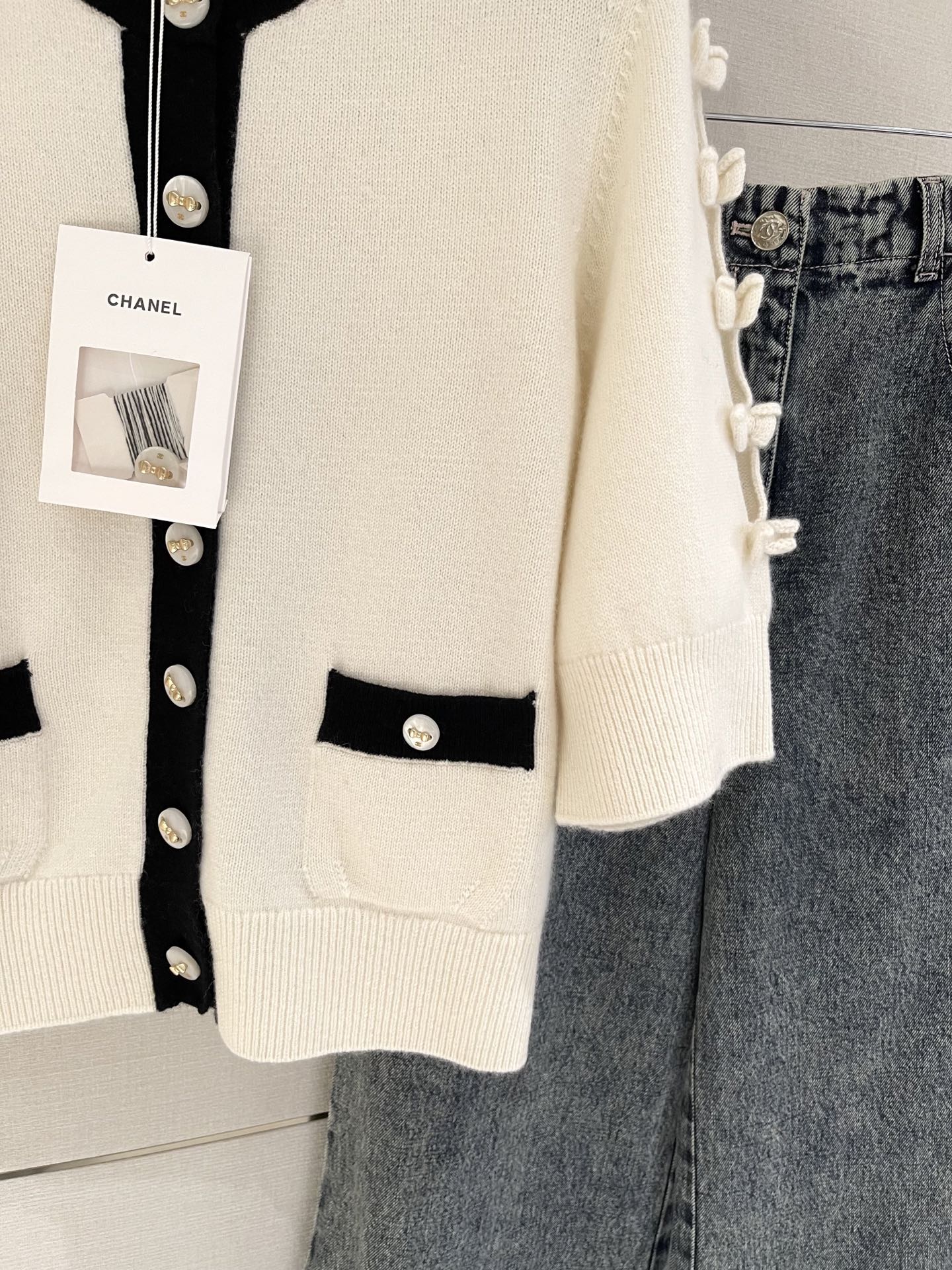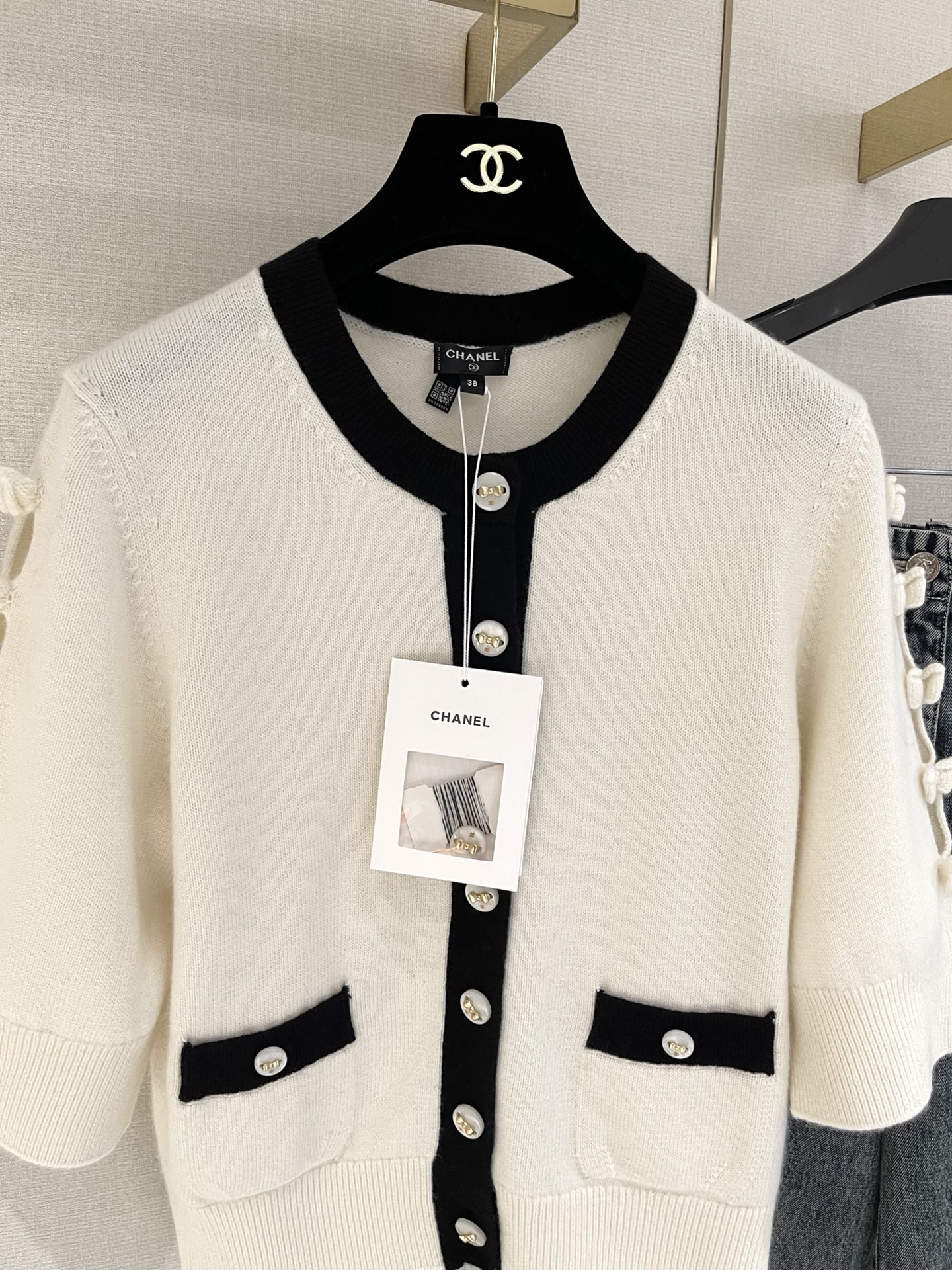 这款衣服是AAAAA 1:1 质量 (非常棒). 使用了和原版一模一样的材料. 商标部分也保持了和香奈儿/Chanel一样. 图片拍摄是实物衣服拍摄, 您所收到的实物保证和我们图片一模一样.