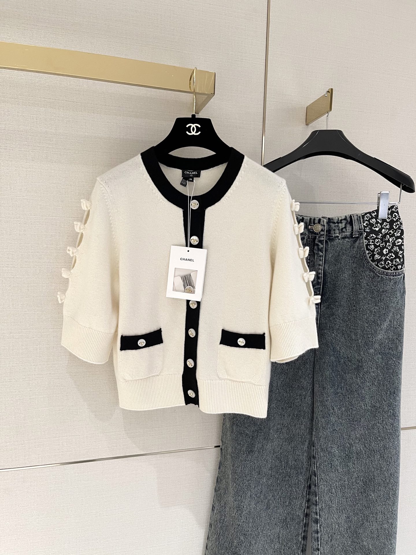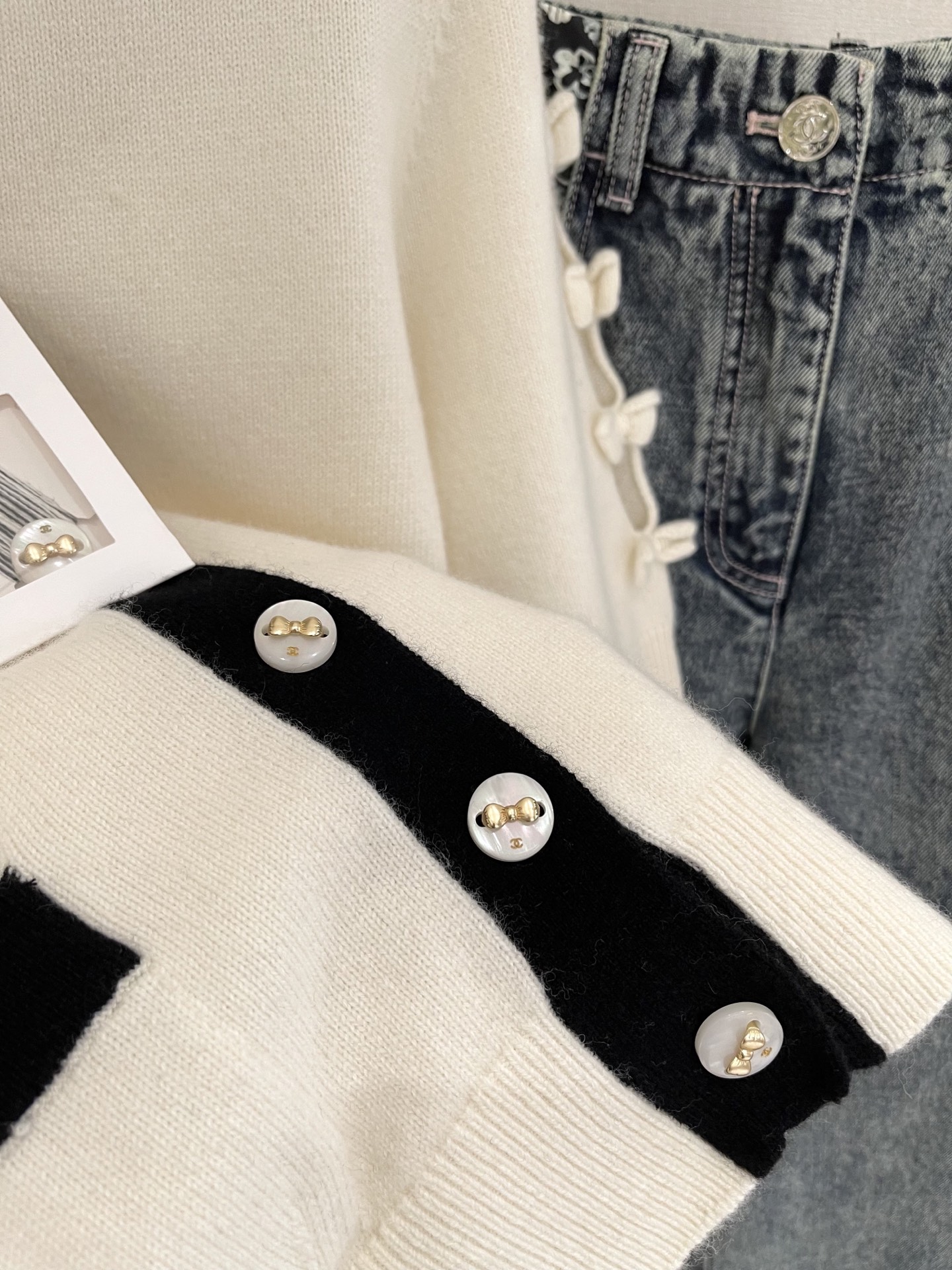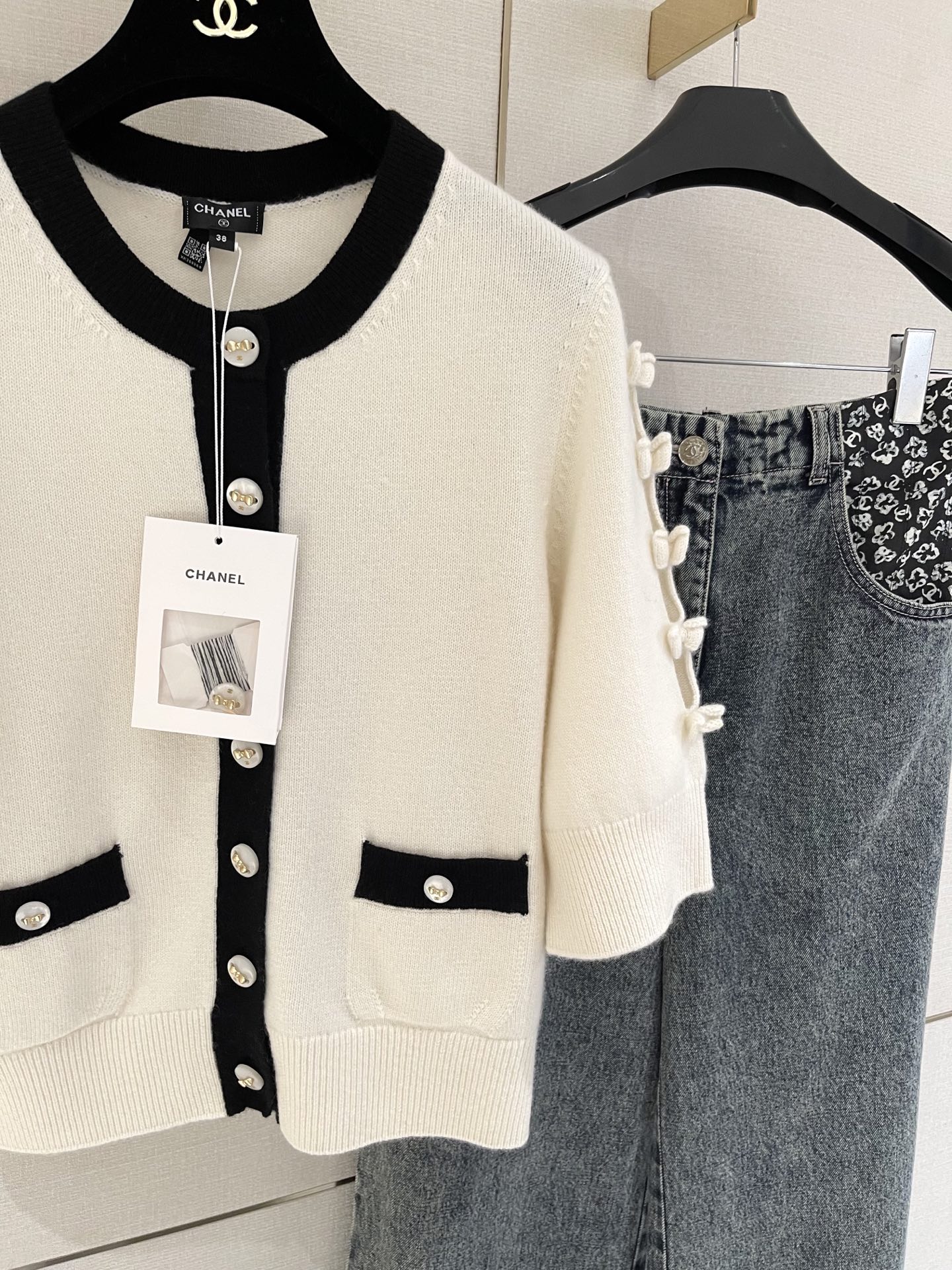 这款衣服是AAAAA 1:1 质量 (非常棒). 使用了和原版一模一样的材料. 商标部分也保持了和香奈儿/Chanel一样. 图片拍摄是实物衣服拍摄, 您所收到的实物保证和我们图片一模一样.
