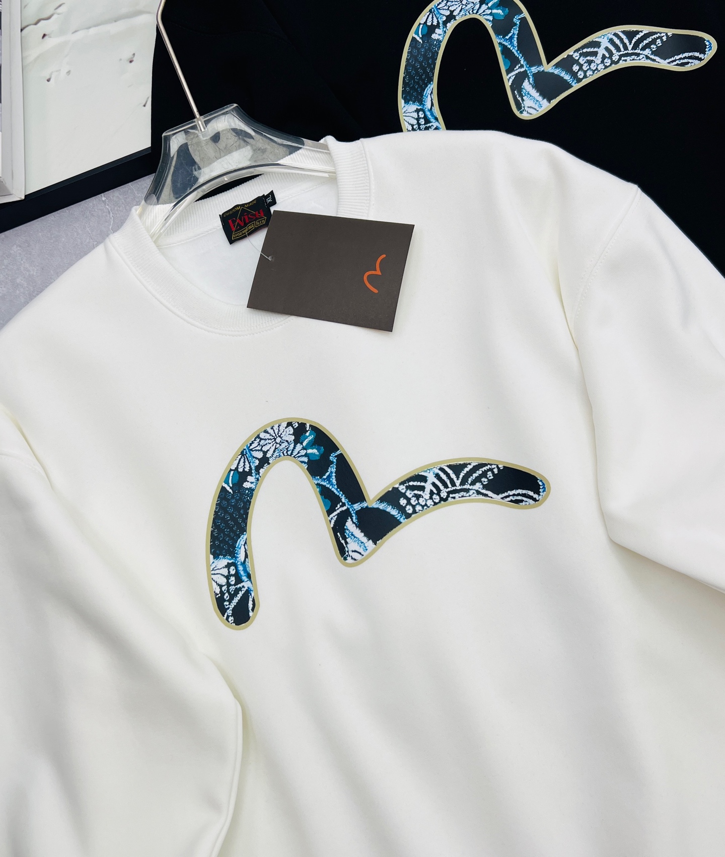 这款衣服是AAAAA 1:1 质量 (非常棒). 使用了和原版一模一样的材料. 商标部分也保持了和EVISU一样. 图片拍摄是实物衣服拍摄, 您所收到的实物保证和我们图片一模一样.