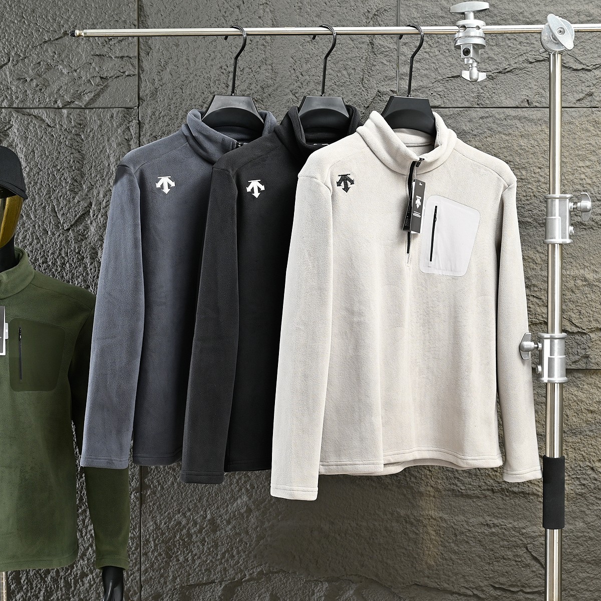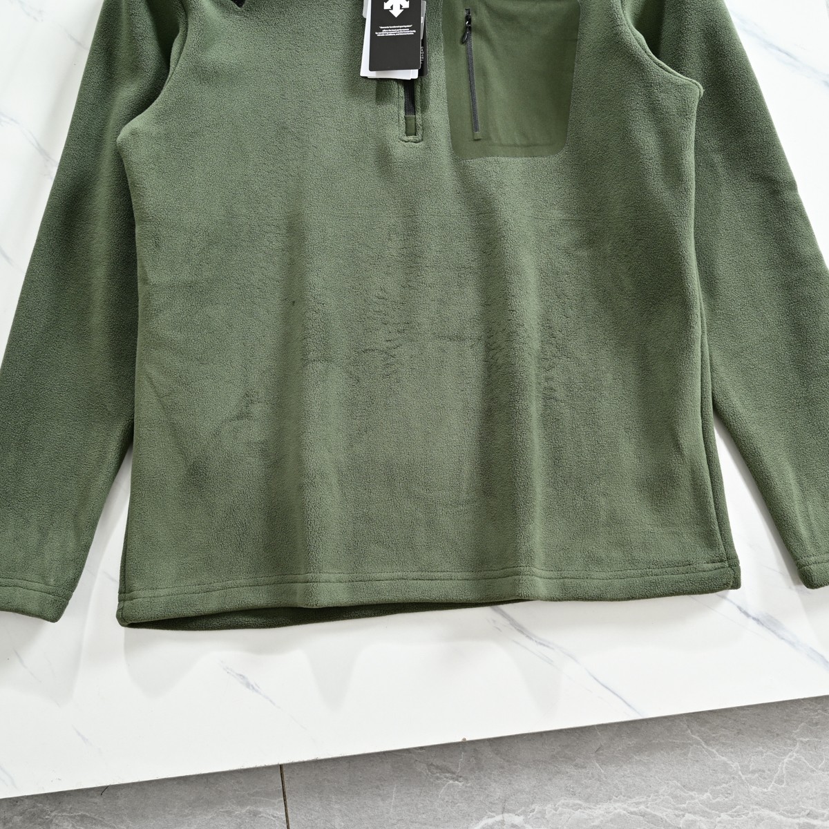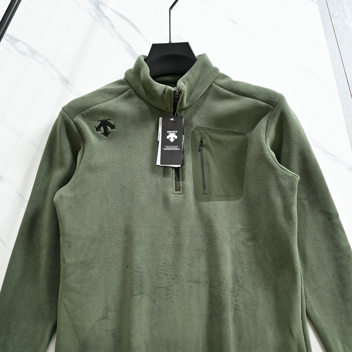 这款衣服是AAAAA 1:1 质量 (非常棒). 使用了和原版一模一样的材料. 商标部分也保持了和Descente一样. 图片拍摄是实物衣服拍摄, 您所收到的实物保证和我们图片一模一样.