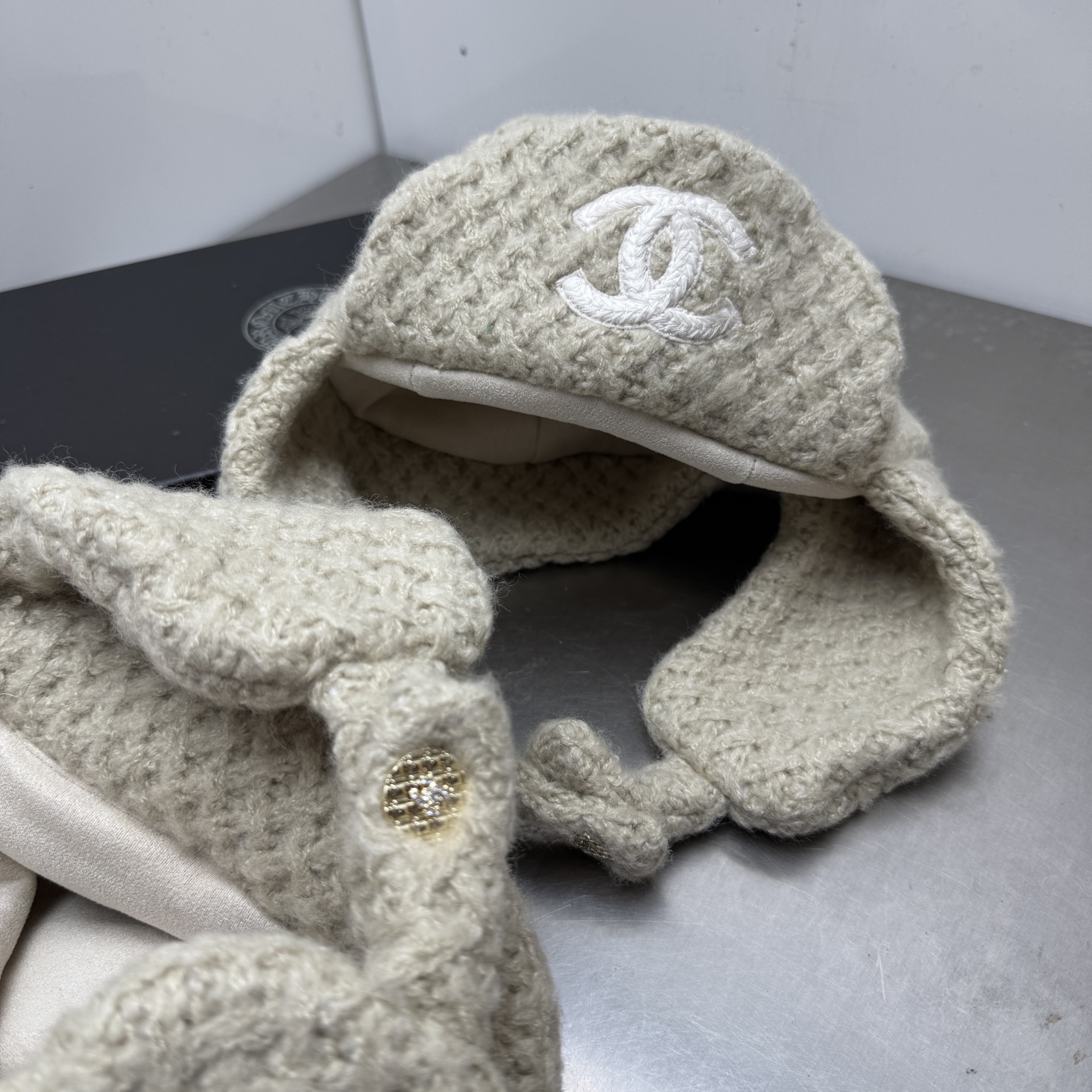 这款帽子是AAAAA 1:1 质量 (非常棒). 使用了和原版一模一样的材料. 商标部分也保持了和香奈儿/Chanel一样. 图片拍摄是实物帽子拍摄, 您所收到的实物保证和我们图片一模一样.