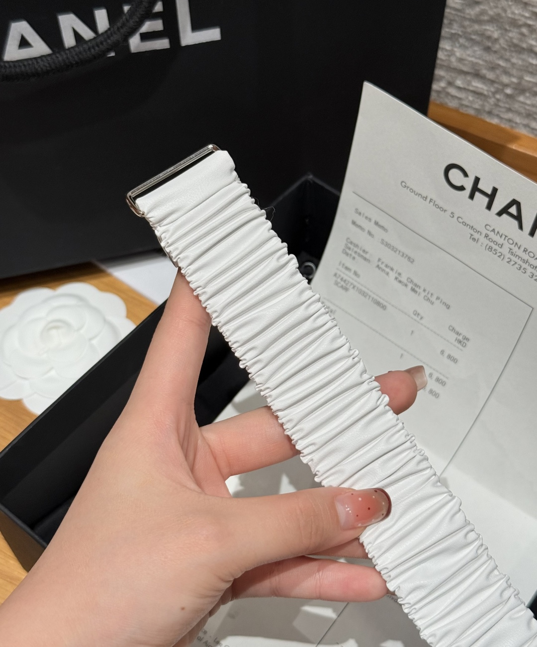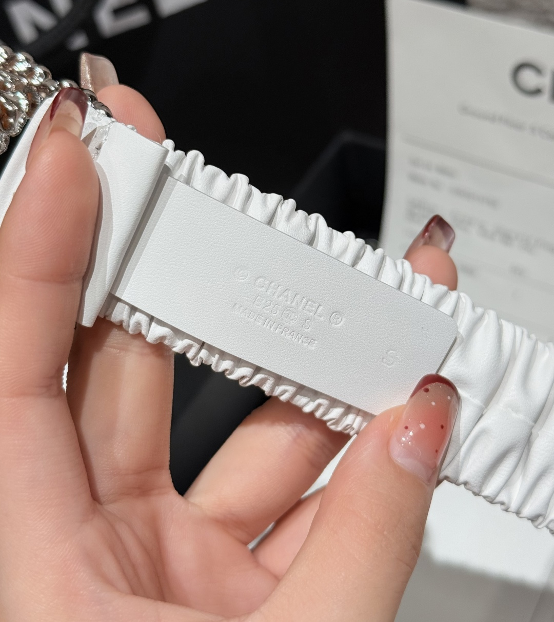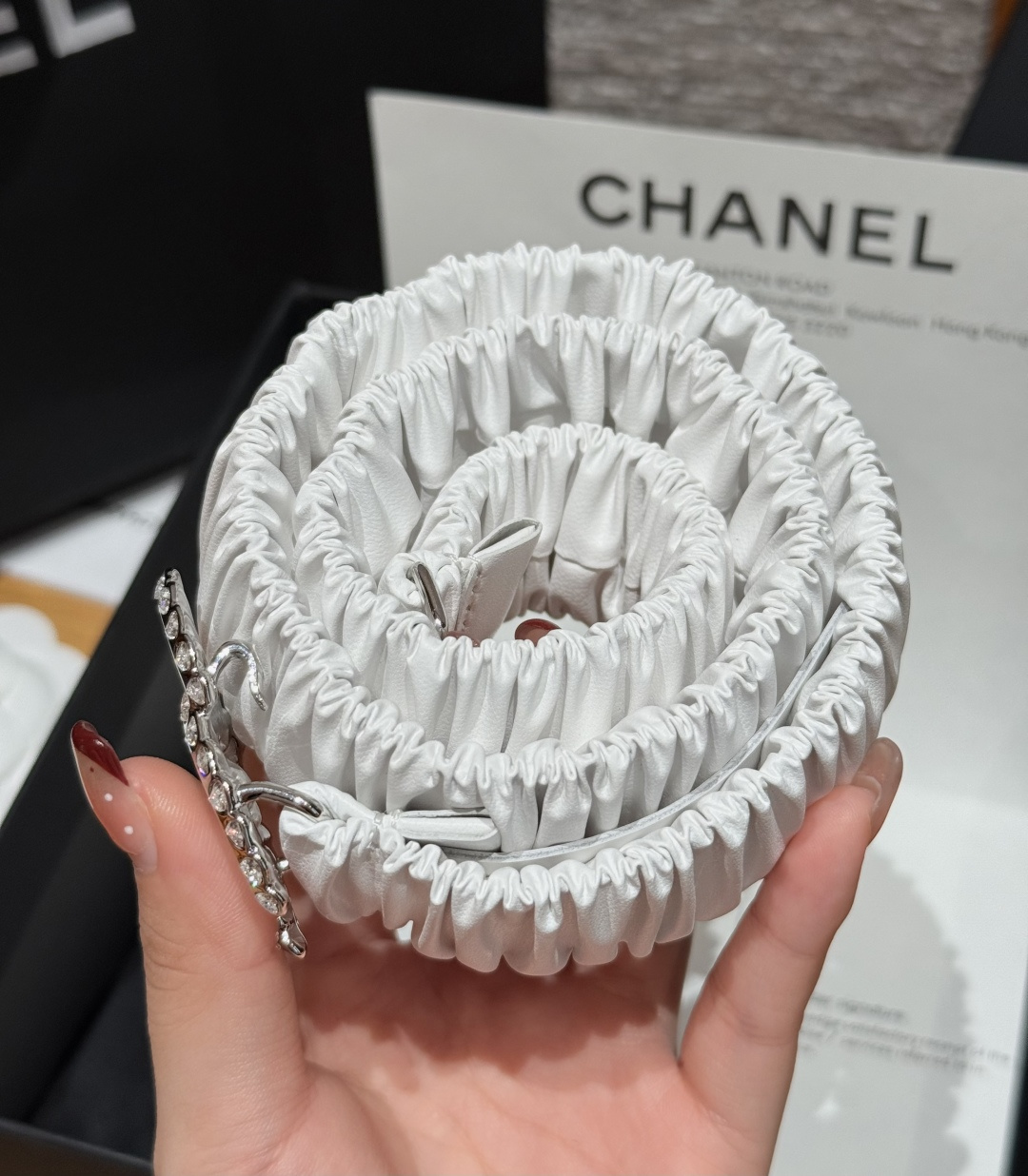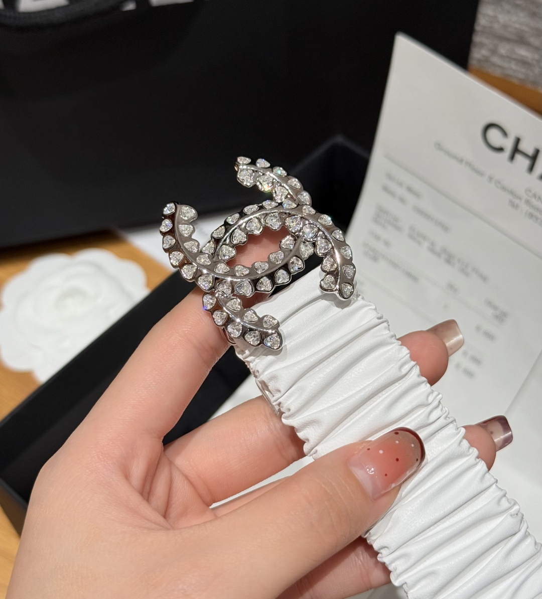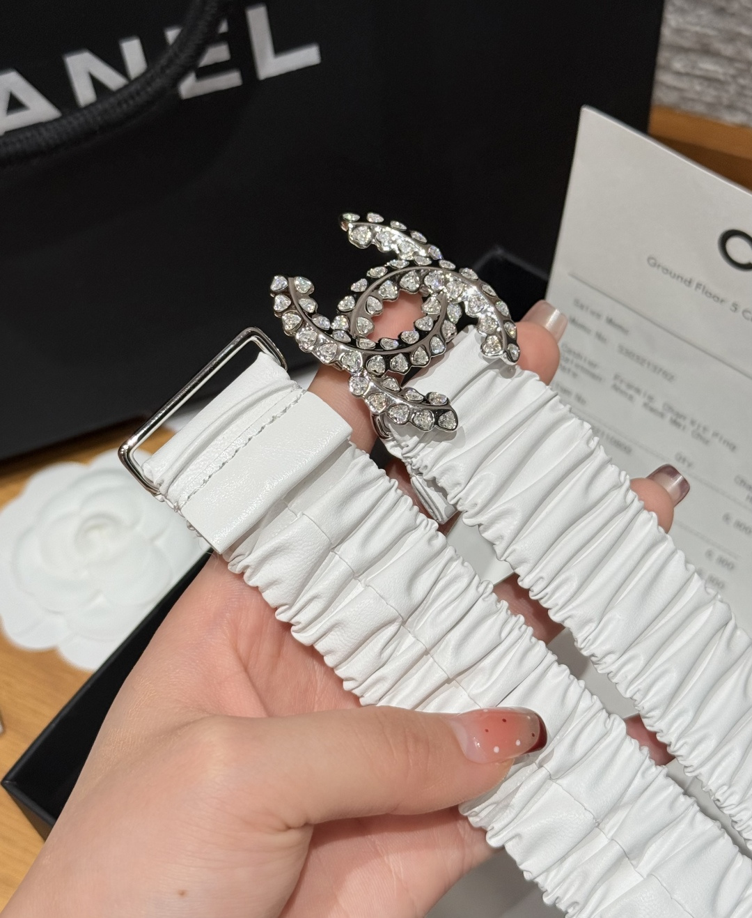 这款皮带是AAAAA 1:1 质量 (非常棒). 使用了和原版一模一样的材料. 商标部分也保持了和香奈儿/Chanel一样. 图片拍摄是实物皮带拍摄, 您所收到的实物保证和我们图片一模一样.