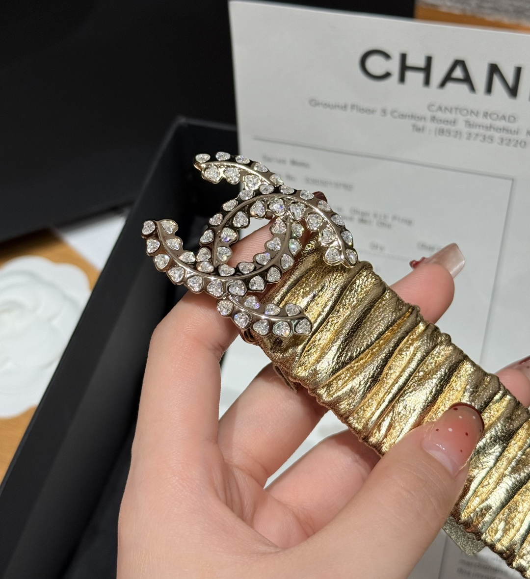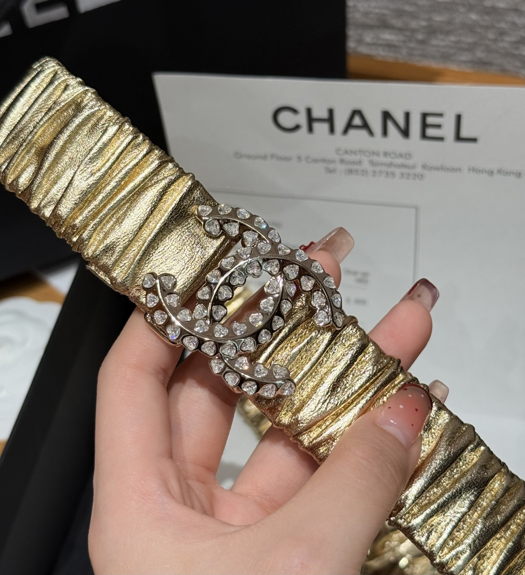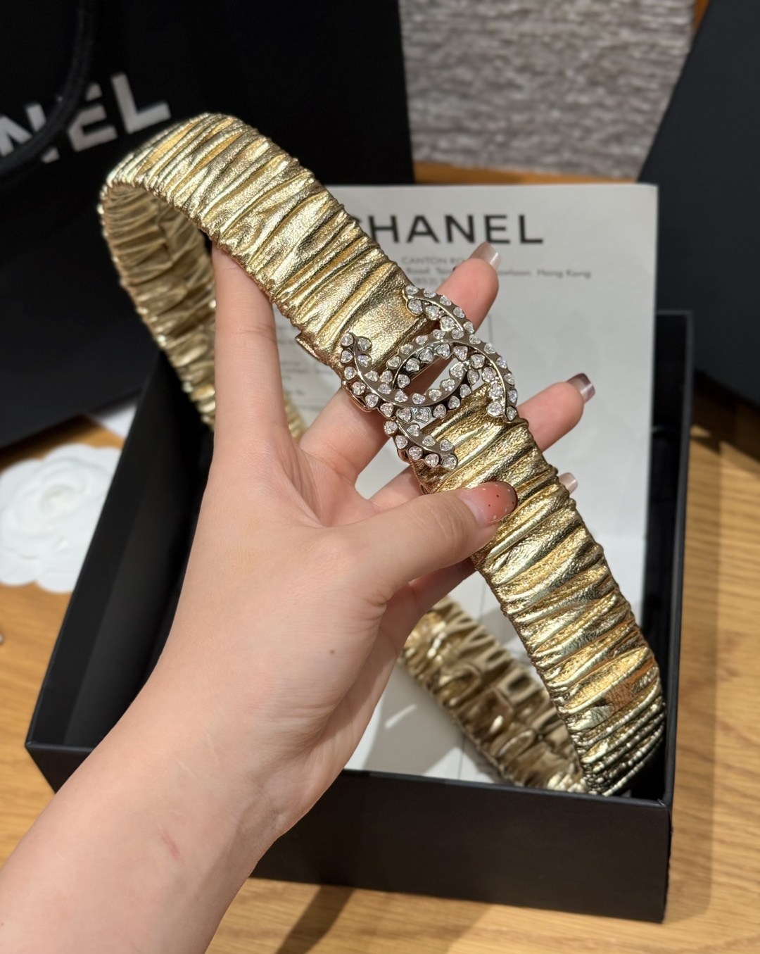 这款皮带是AAAAA 1:1 质量 (非常棒). 使用了和原版一模一样的材料. 商标部分也保持了和香奈儿/Chanel一样. 图片拍摄是实物皮带拍摄, 您所收到的实物保证和我们图片一模一样.