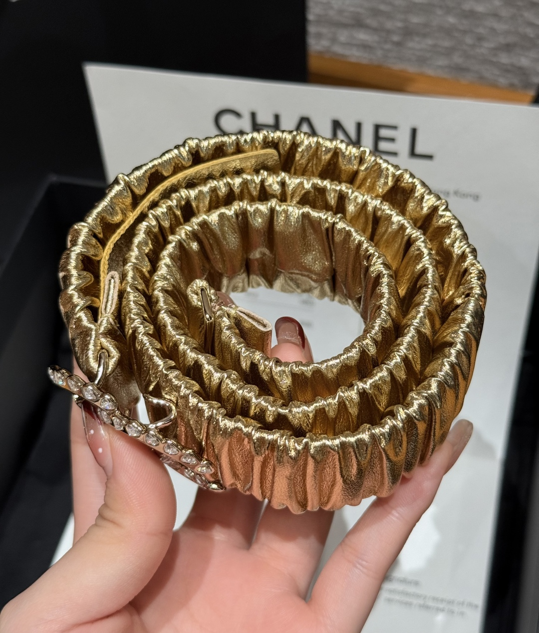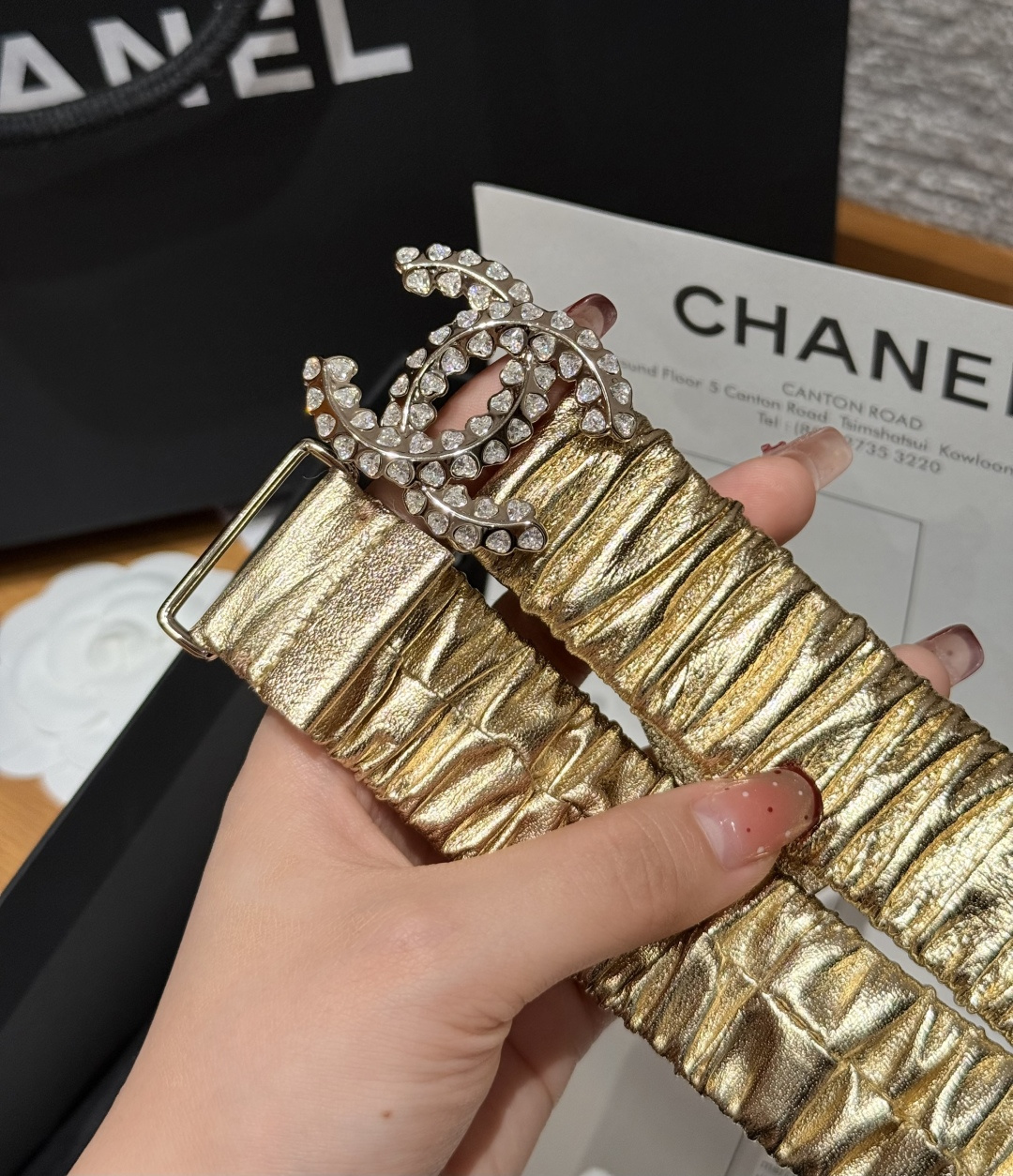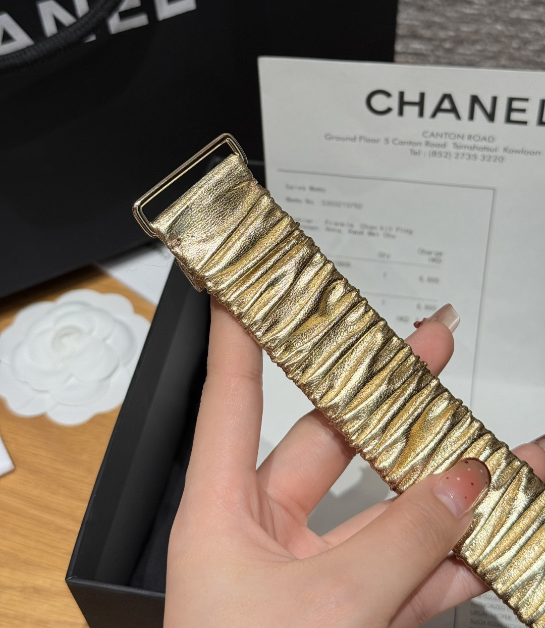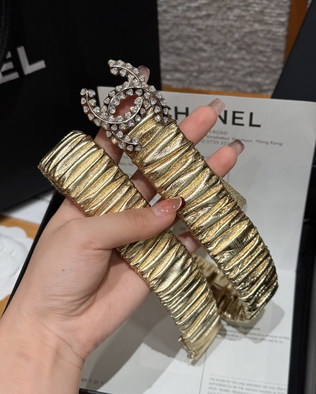 这款皮带是AAAAA 1:1 质量 (非常棒). 使用了和原版一模一样的材料. 商标部分也保持了和香奈儿/Chanel一样. 图片拍摄是实物皮带拍摄, 您所收到的实物保证和我们图片一模一样.