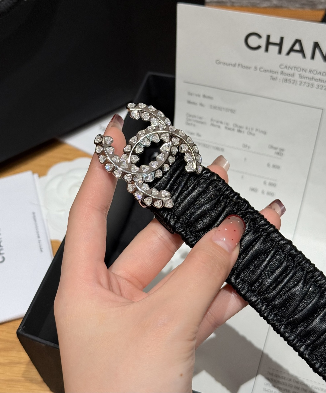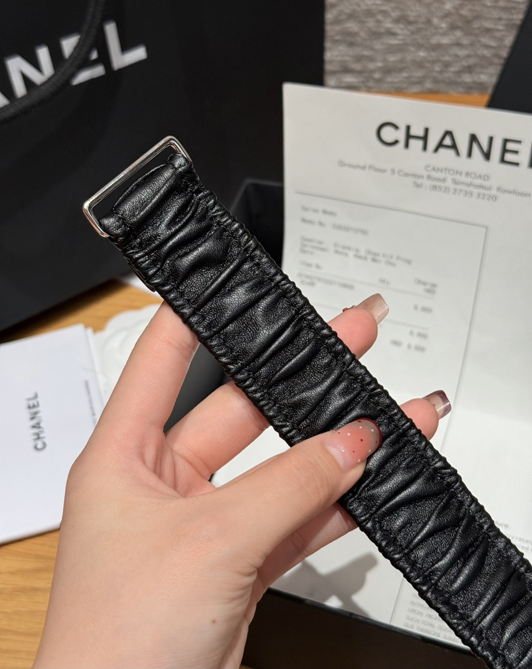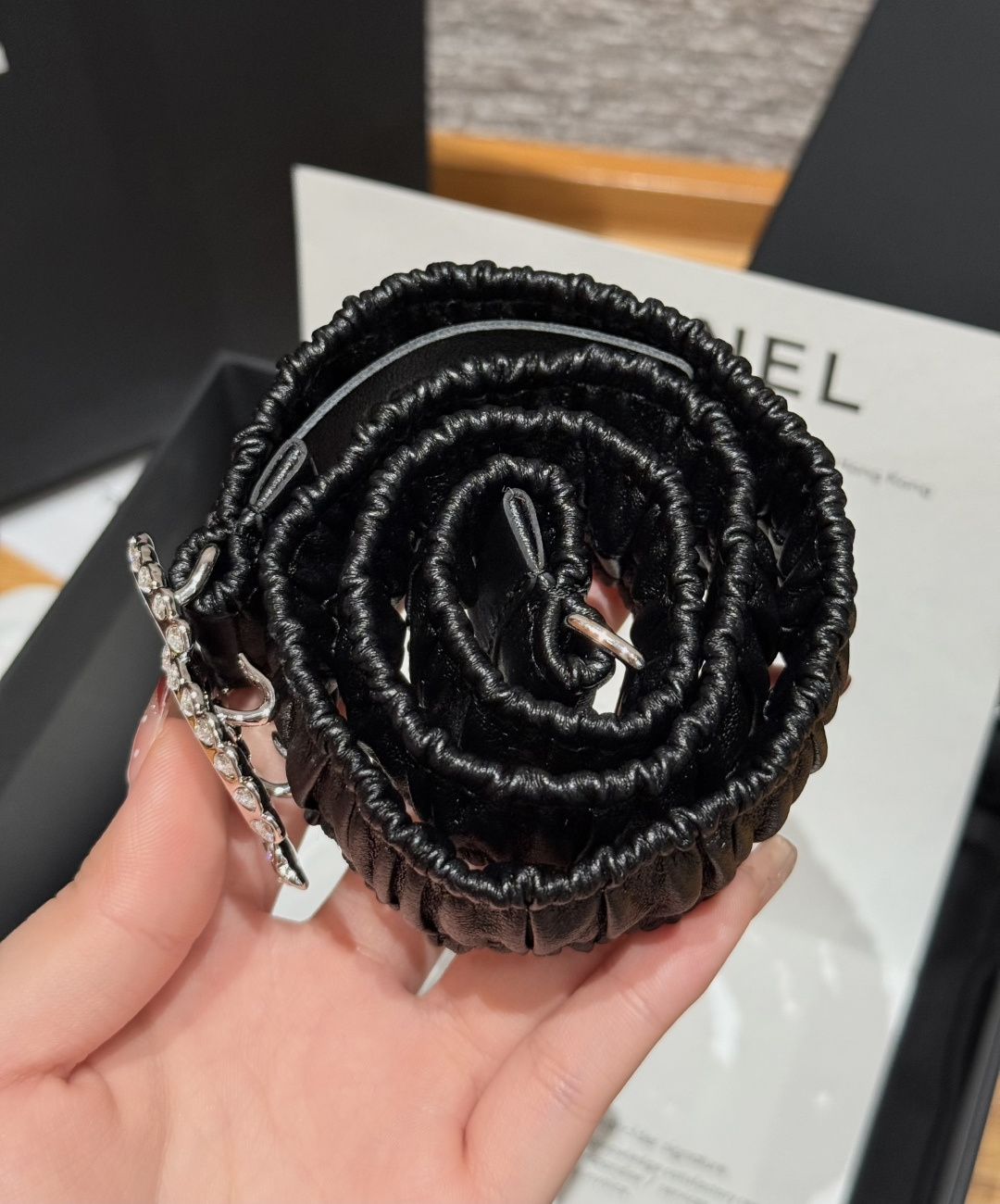 这款皮带是AAAAA 1:1 质量 (非常棒). 使用了和原版一模一样的材料. 商标部分也保持了和香奈儿/Chanel一样. 图片拍摄是实物皮带拍摄, 您所收到的实物保证和我们图片一模一样.