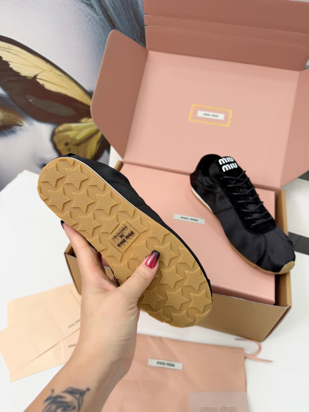 这款鞋子是AAAAA 1:1 质量 (非常棒). 使用了和原版一模一样的材料. 商标部分也保持了和缪缪/Miu Miu一样. 图片拍摄是实物鞋子拍摄, 您所收到的实物保证和我们图片一模一样.