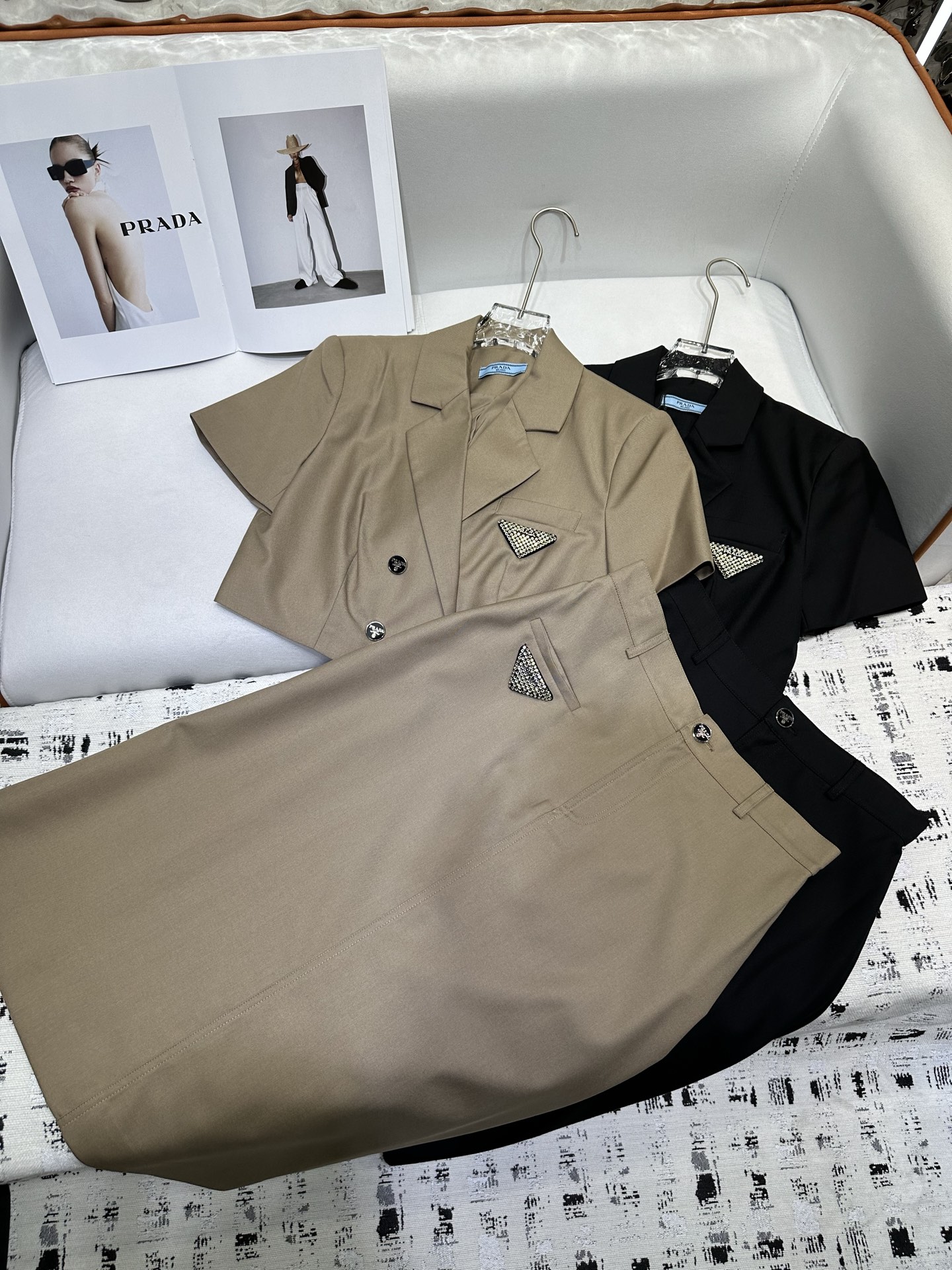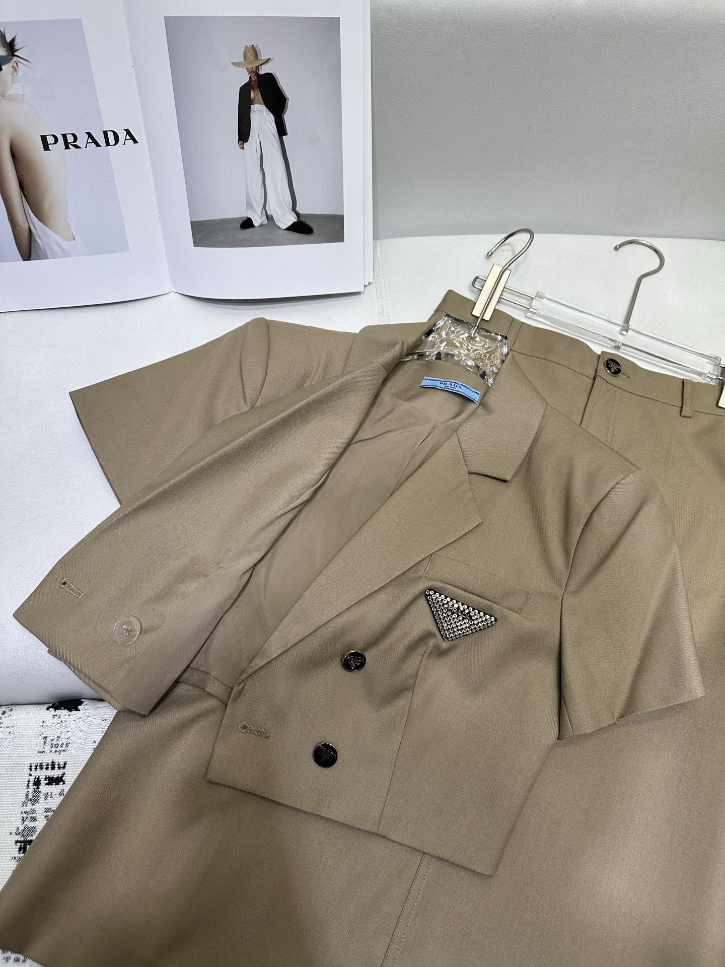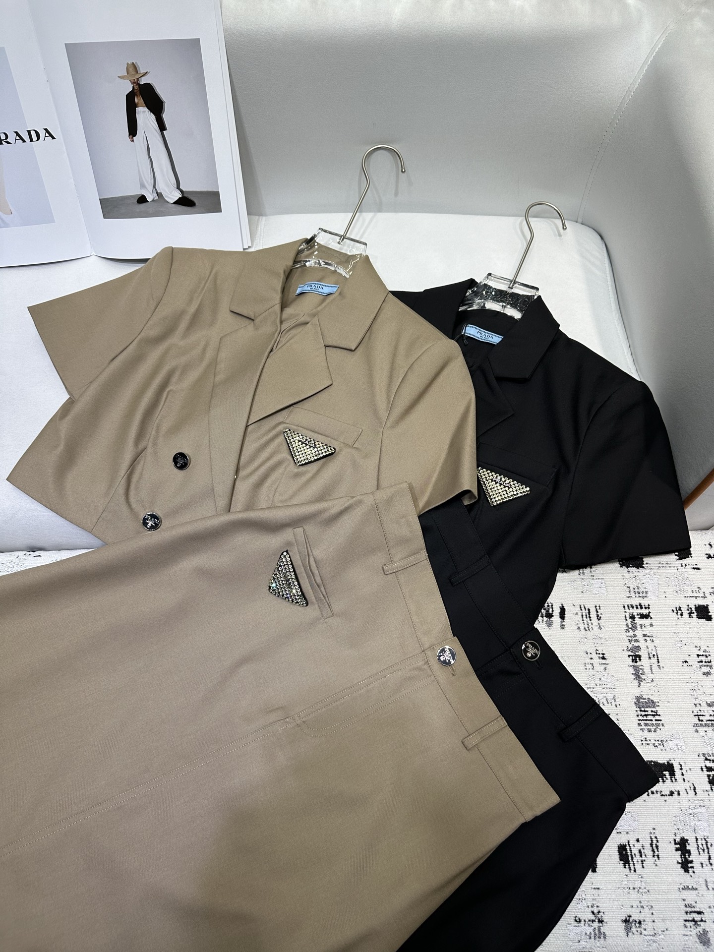 这款衣服是AAAAA 1:1 质量 (非常棒). 使用了和原版一模一样的材料. 商标部分也保持了和普拉达/Prada一样. 图片拍摄是实物衣服拍摄, 您所收到的实物保证和我们图片一模一样.