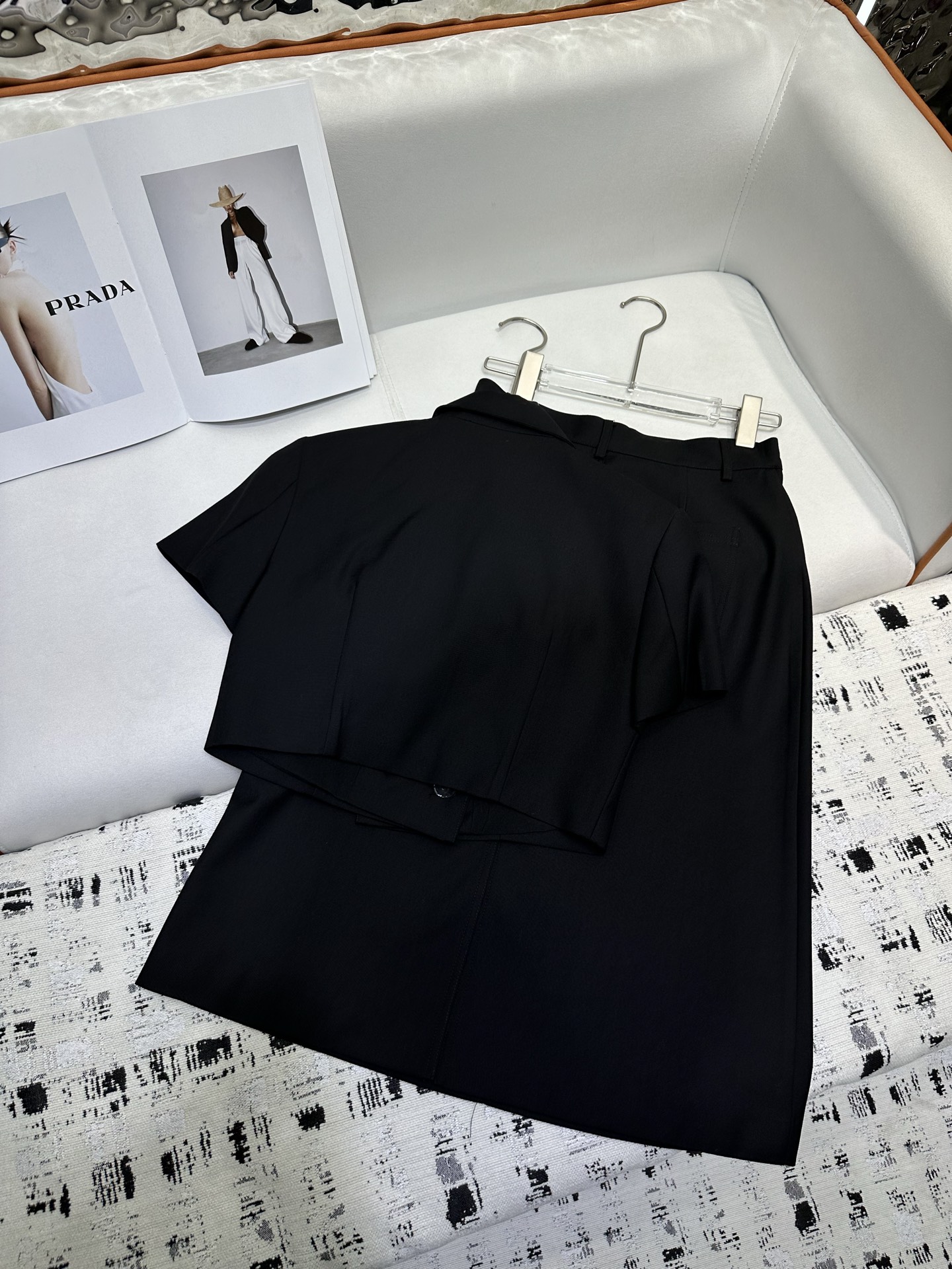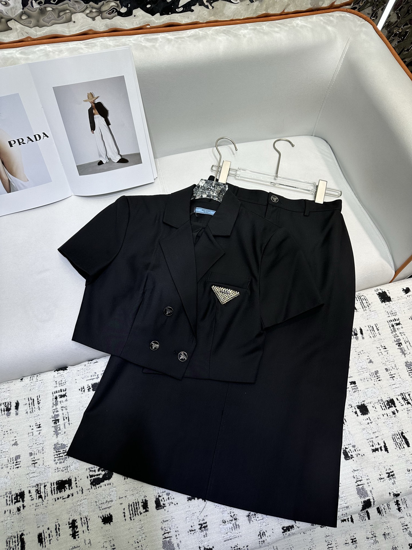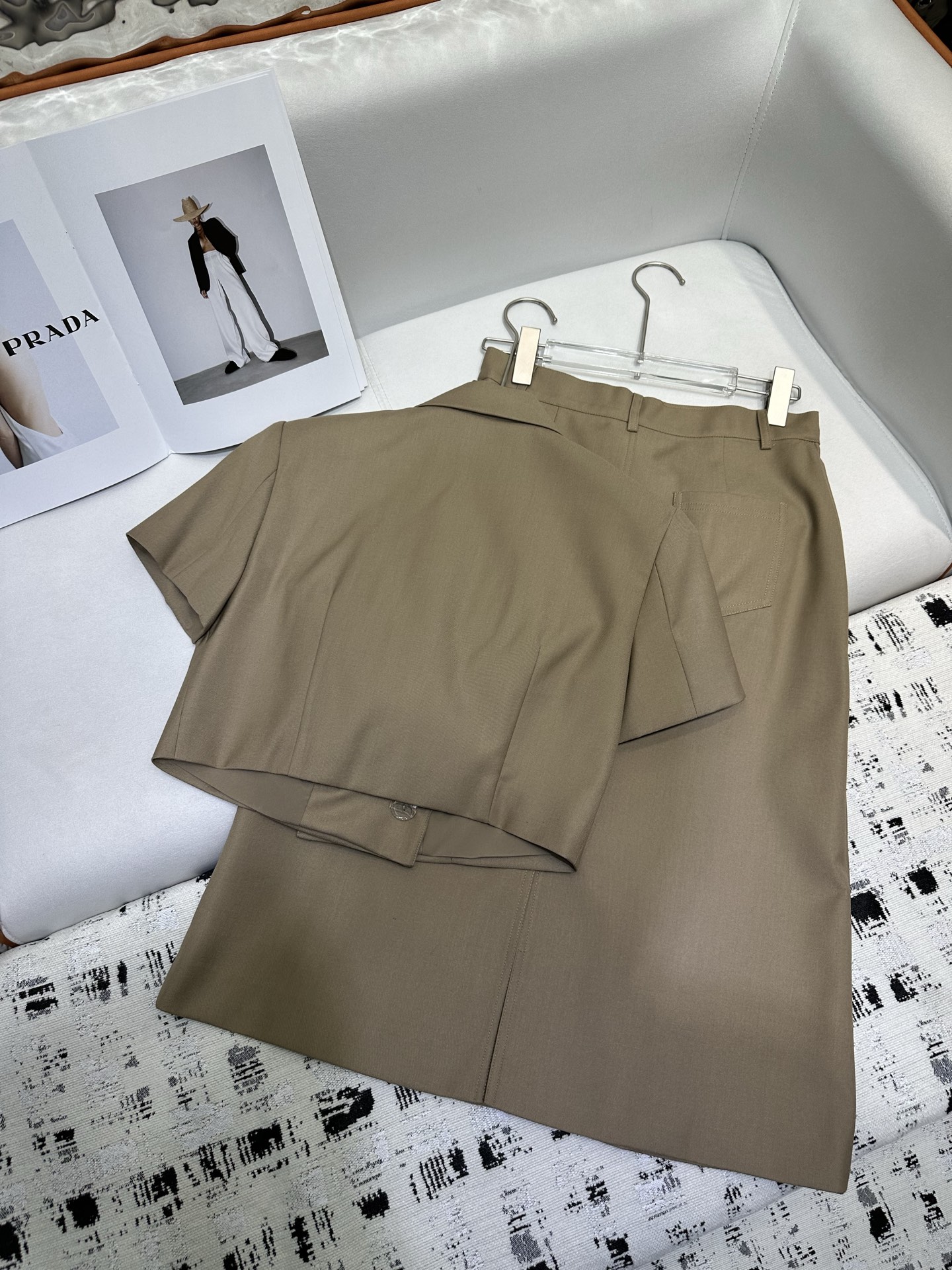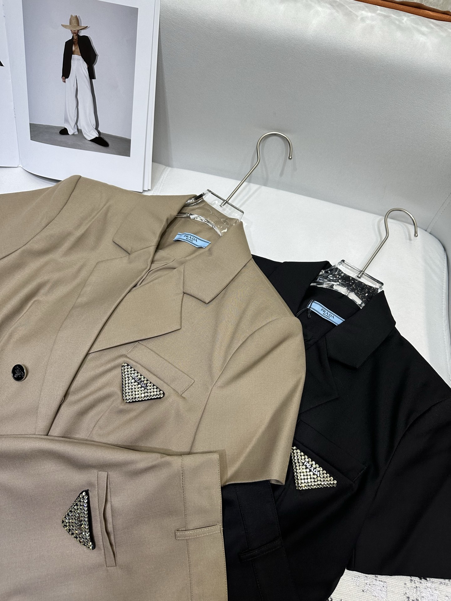 这款衣服是AAAAA 1:1 质量 (非常棒). 使用了和原版一模一样的材料. 商标部分也保持了和普拉达/Prada一样. 图片拍摄是实物衣服拍摄, 您所收到的实物保证和我们图片一模一样.