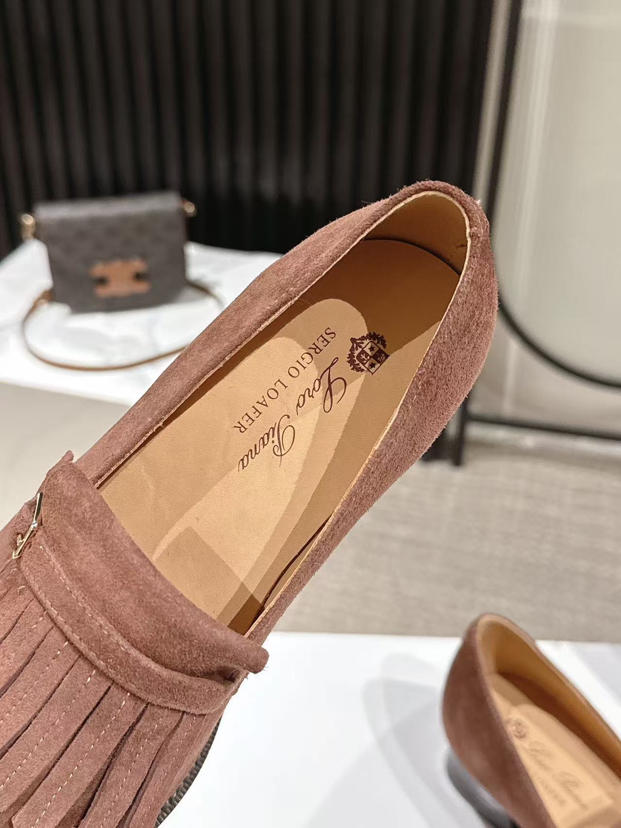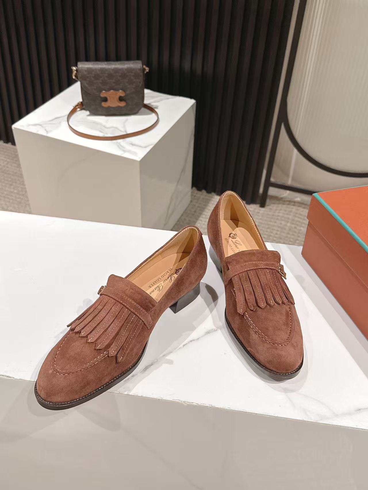 这款鞋子是AAAAA 1:1 质量 (非常棒). 使用了和原版一模一样的材料. 商标部分也保持了和洛罗皮亚纳/Loro Piana一样. 图片拍摄是实物鞋子拍摄, 您所收到的实物保证和我们图片一模一样.