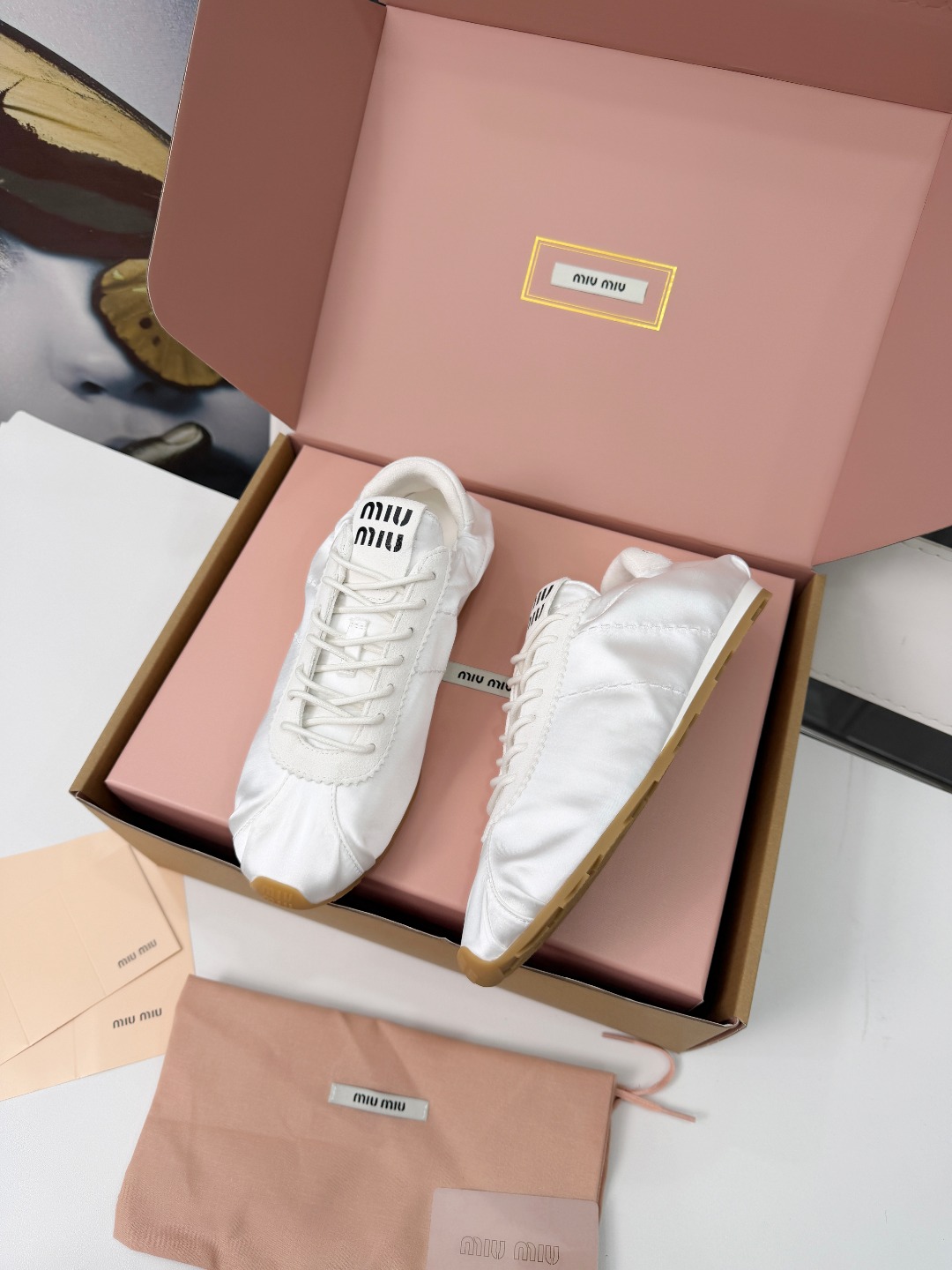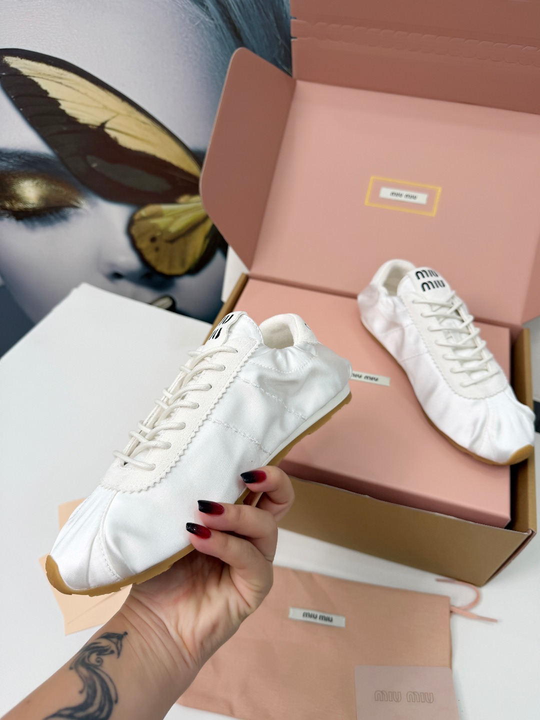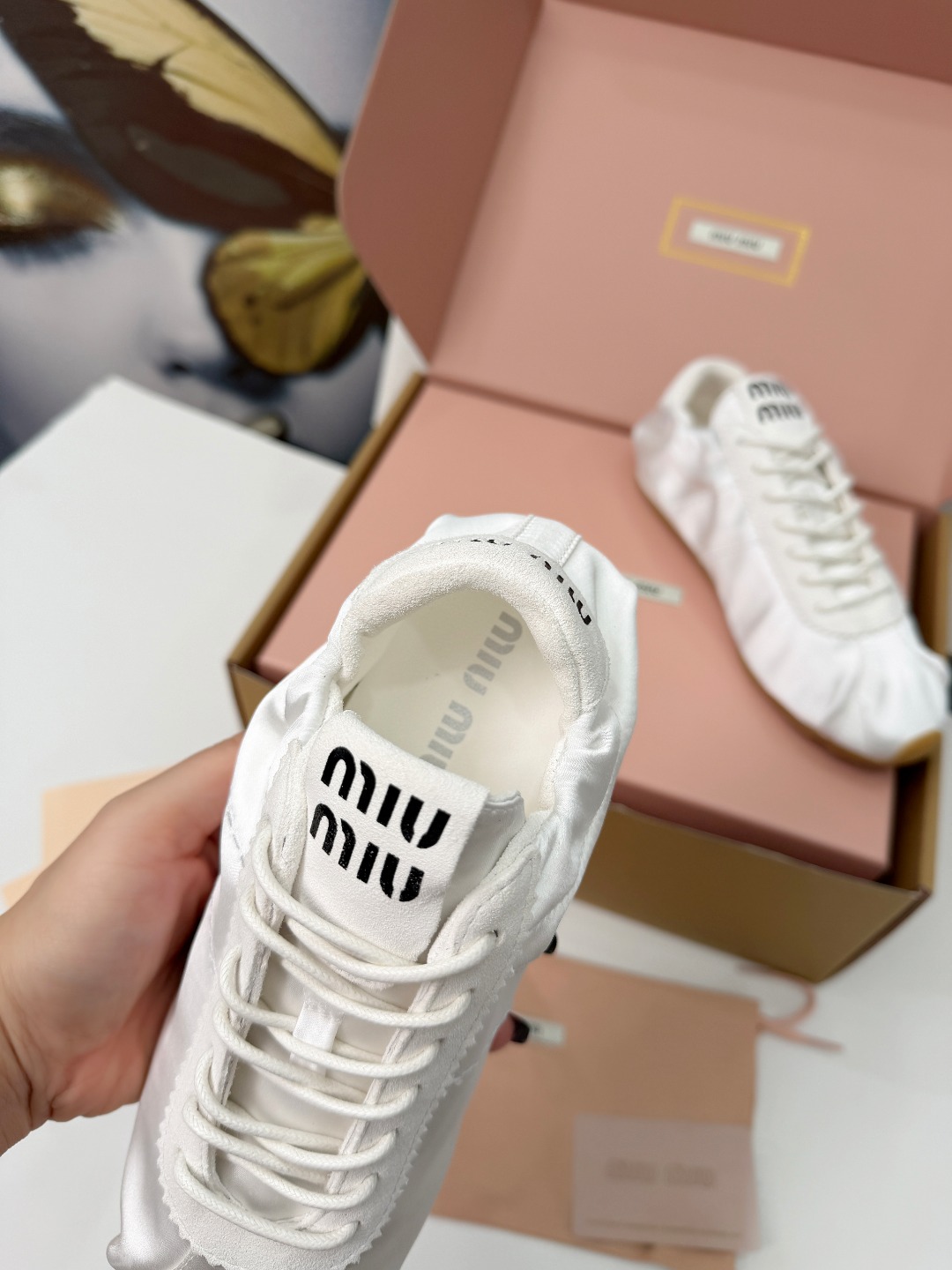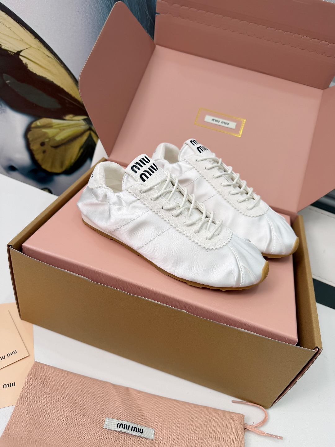 这款鞋子是AAAAA 1:1 质量 (非常棒). 使用了和原版一模一样的材料. 商标部分也保持了和缪缪/Miu Miu一样. 图片拍摄是实物鞋子拍摄, 您所收到的实物保证和我们图片一模一样.