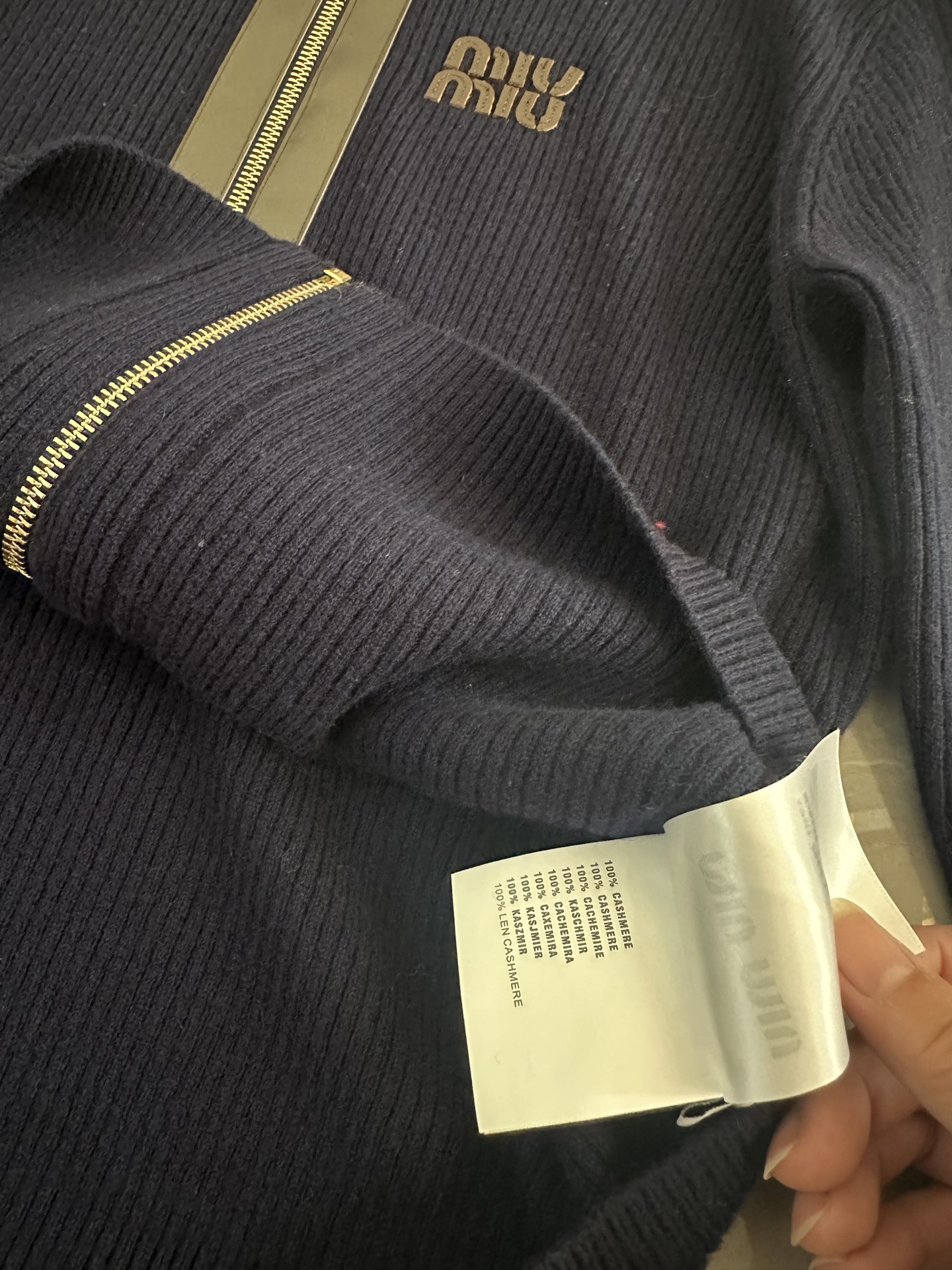 这款衣服是AAAAA 1:1 质量 (非常棒). 使用了和原版一模一样的材料. 商标部分也保持了和缪缪/Miu Miu一样. 图片拍摄是实物衣服拍摄, 您所收到的实物保证和我们图片一模一样.