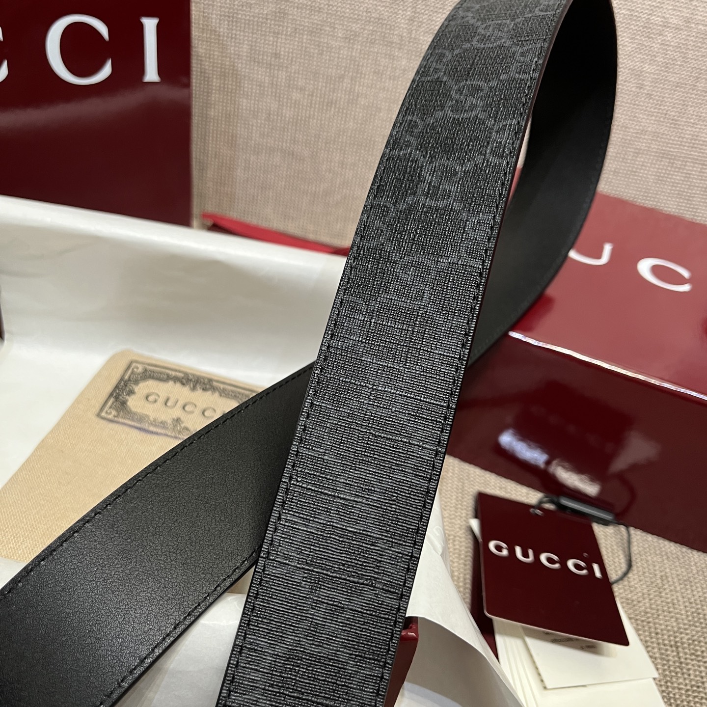 这款皮带是AAAAA 1:1 质量 (非常棒). 使用了和原版一模一样的材料. 商标部分也保持了和一样. 图片拍摄是实物皮带拍摄, 您所收到的实物保证和我们图片一模一样.