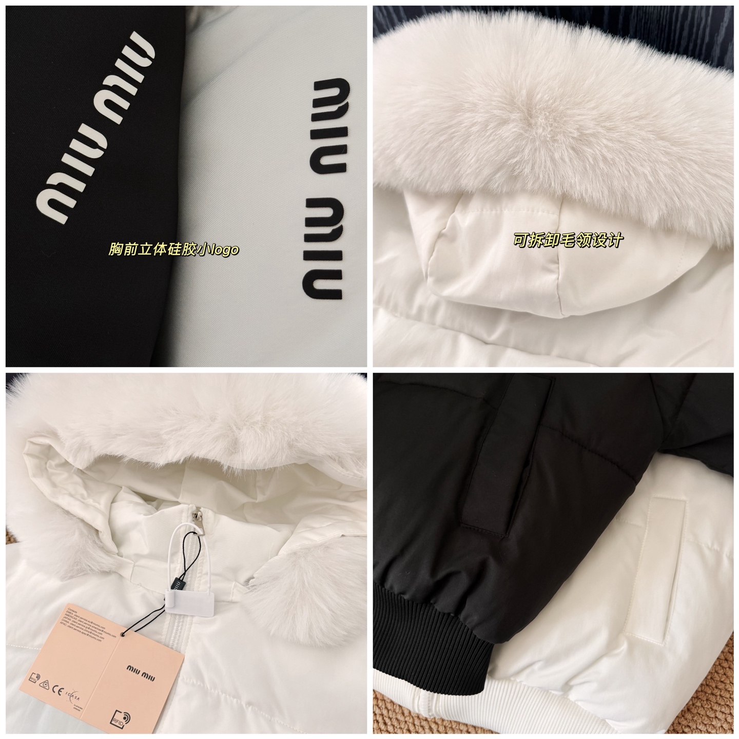 这款衣服是AAAAA 1:1 质量 (非常棒). 使用了和原版一模一样的材料. 商标部分也保持了和缪缪/Miu Miu一样. 图片拍摄是实物衣服拍摄, 您所收到的实物保证和我们图片一模一样.