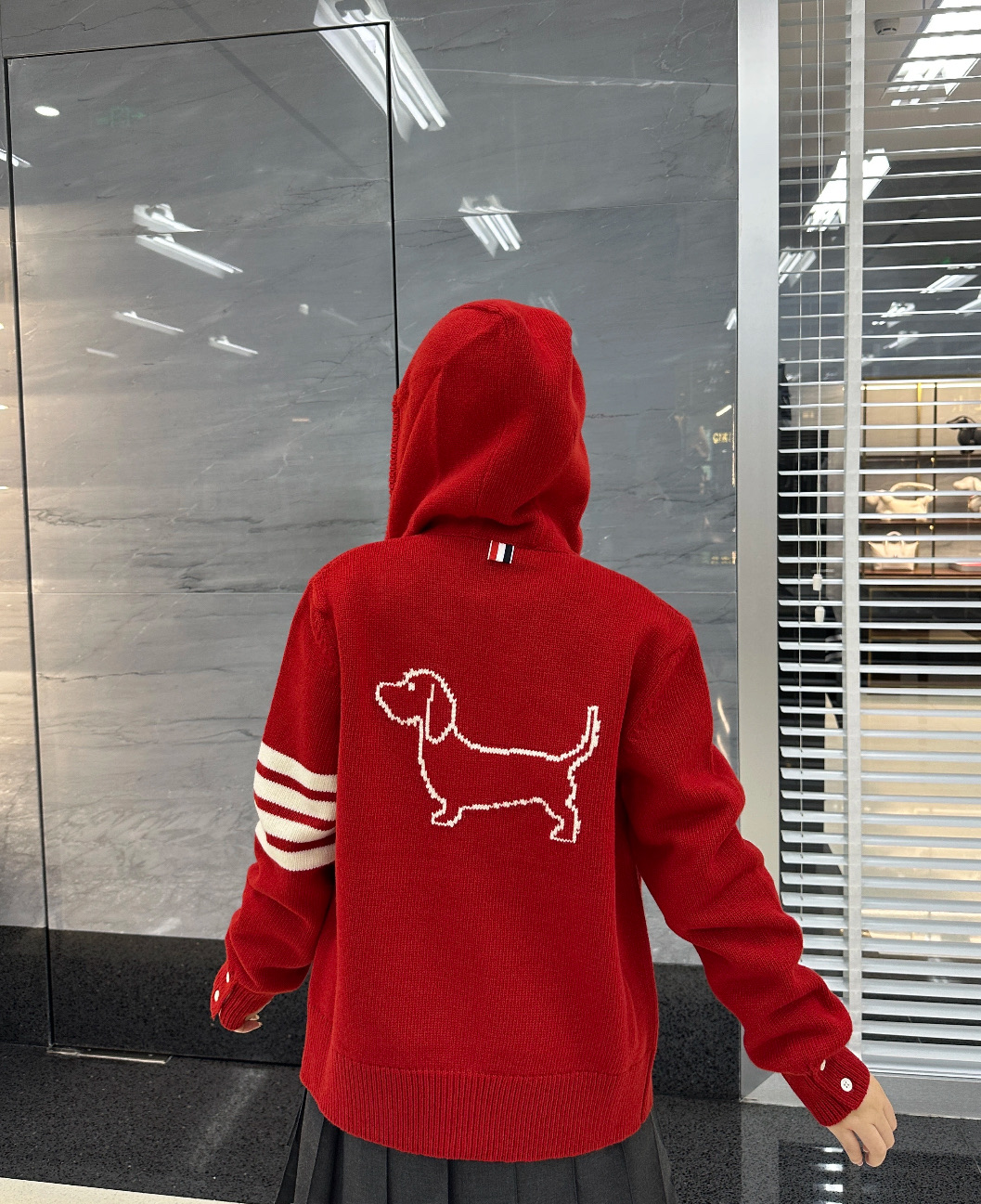这款衣服是AAAAA 1:1 质量 (非常棒). 使用了和原版一模一样的材料. 商标部分也保持了和汤姆布朗/Thom Browne一样. 图片拍摄是实物衣服拍摄, 您所收到的实物保证和我们图片一模一样.