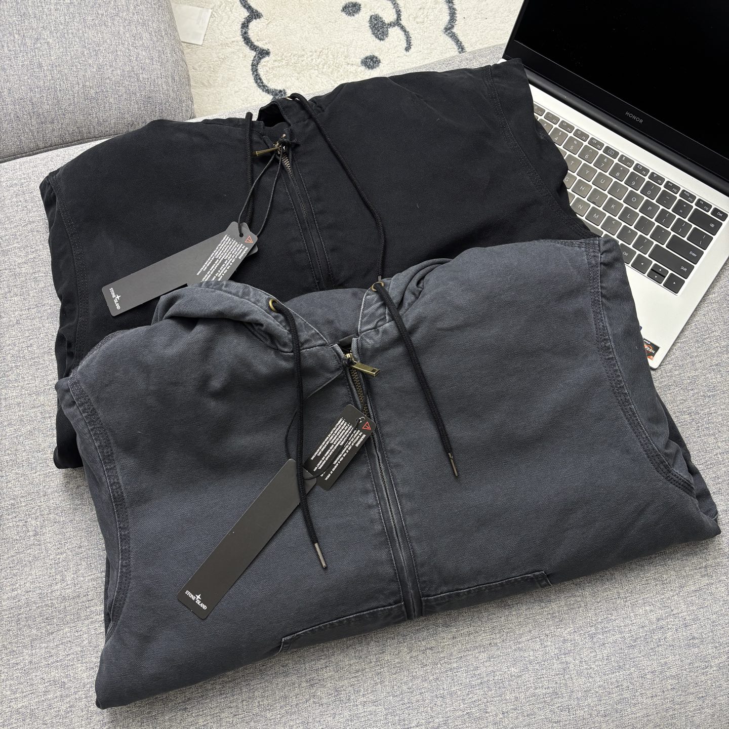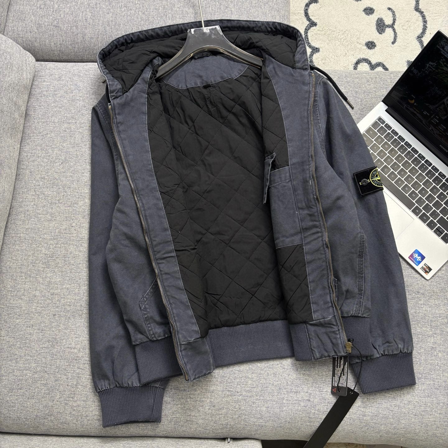 这款衣服是AAAAA 1:1 质量 (非常棒). 使用了和原版一模一样的材料. 商标部分也保持了和Stone Island一样. 图片拍摄是实物衣服拍摄, 您所收到的实物保证和我们图片一模一样.