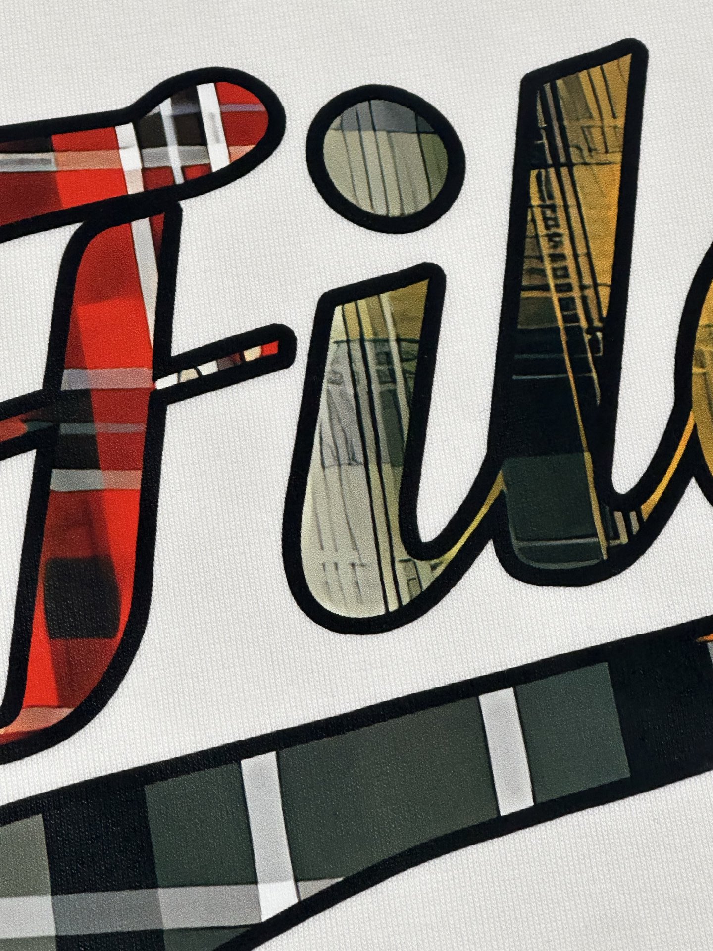 这款衣服是AAAAA 1:1 质量 (非常棒). 使用了和原版一模一样的材料. 商标部分也保持了和Fila一样. 图片拍摄是实物衣服拍摄, 您所收到的实物保证和我们图片一模一样.