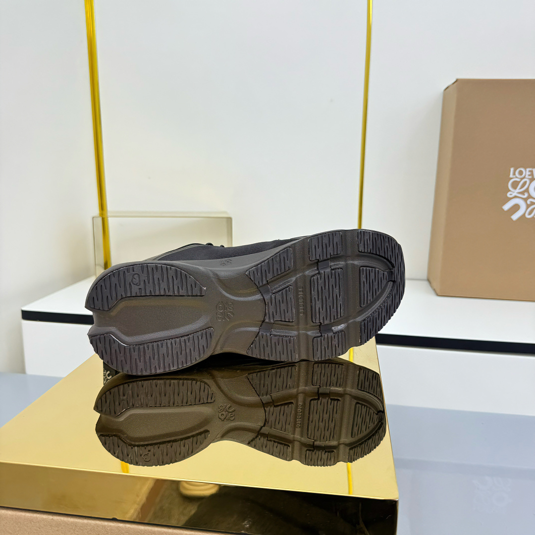 这款鞋子是AAAAA 1:1 质量 (非常棒). 使用了和原版一模一样的材料. 商标部分也保持了和罗意威/Loewe一样. 图片拍摄是实物鞋子拍摄, 您所收到的实物保证和我们图片一模一样.