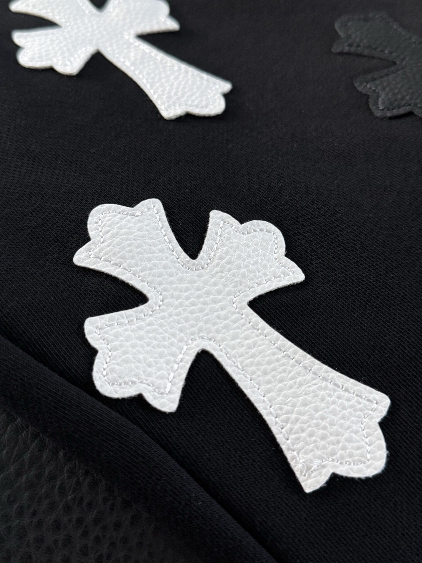这款衣服是AAAAA 1:1 质量 (非常棒). 使用了和原版一模一样的材料. 商标部分也保持了和克罗心/Chrome Hearts一样. 图片拍摄是实物衣服拍摄, 您所收到的实物保证和我们图片一模一样.