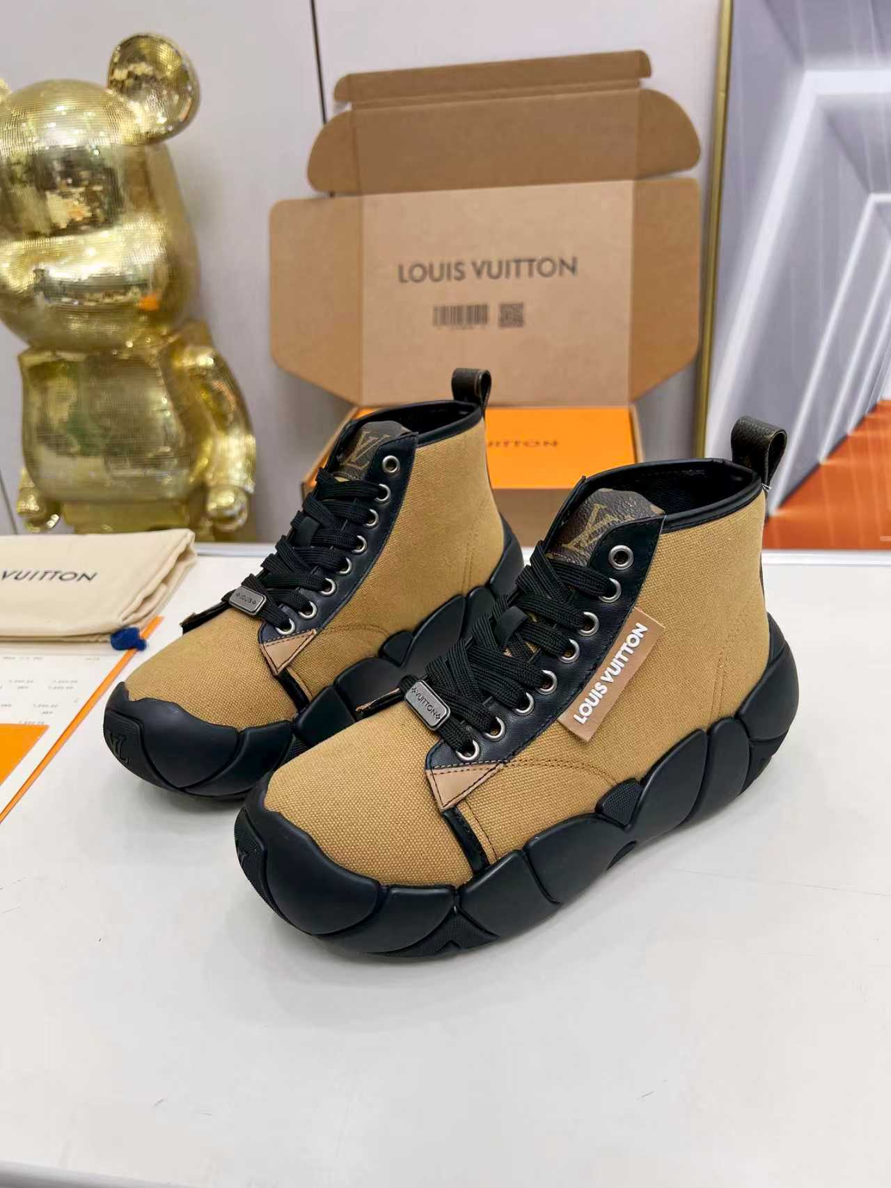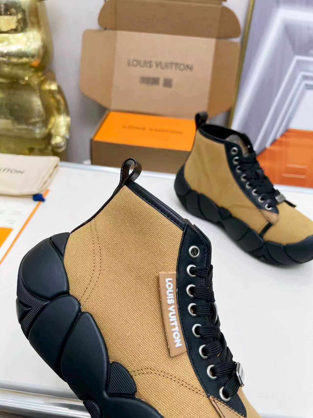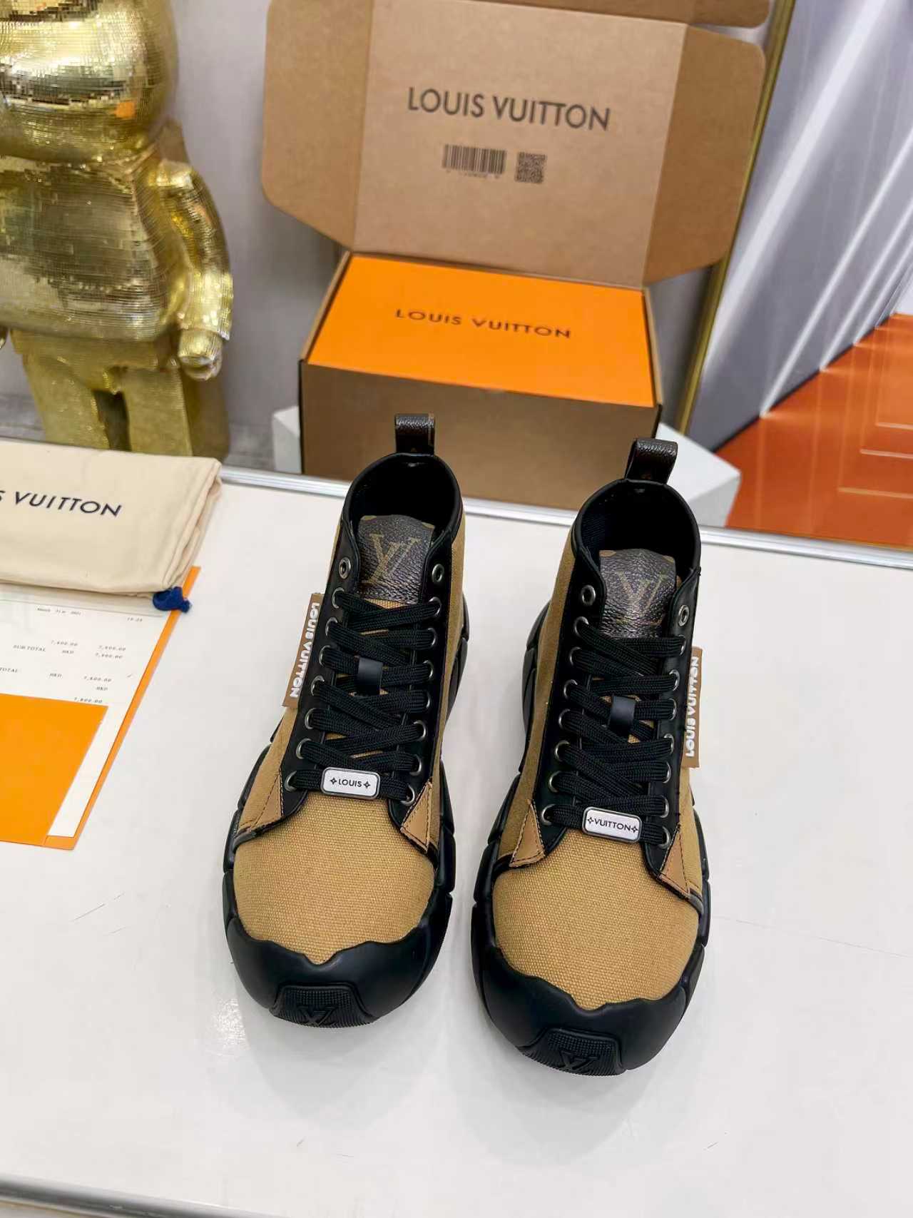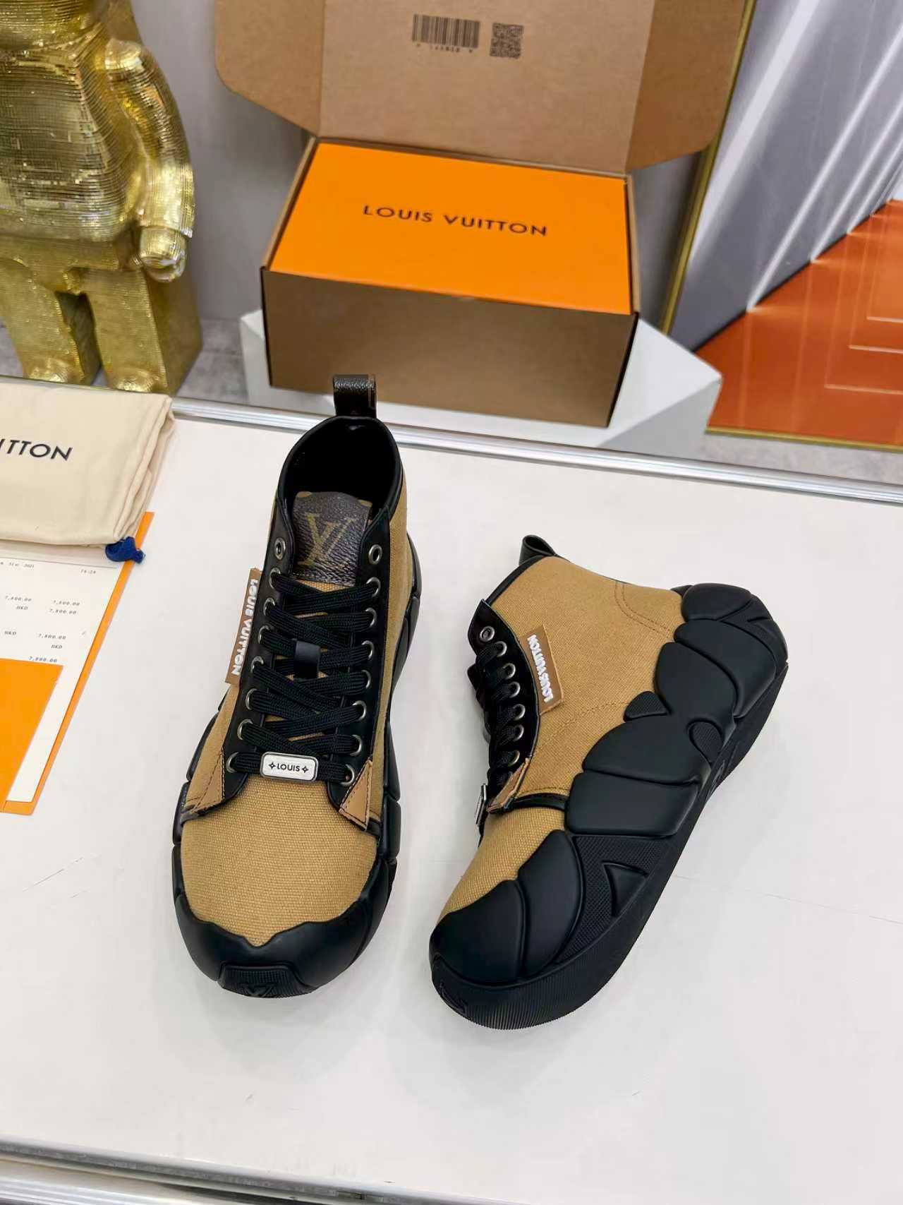 这款鞋子是AAAAA 1:1 质量 (非常棒). 使用了和原版一模一样的材料. 商标部分也保持了和路易威登/Louis Vuitton一样. 图片拍摄是实物鞋子拍摄, 您所收到的实物保证和我们图片一模一样.