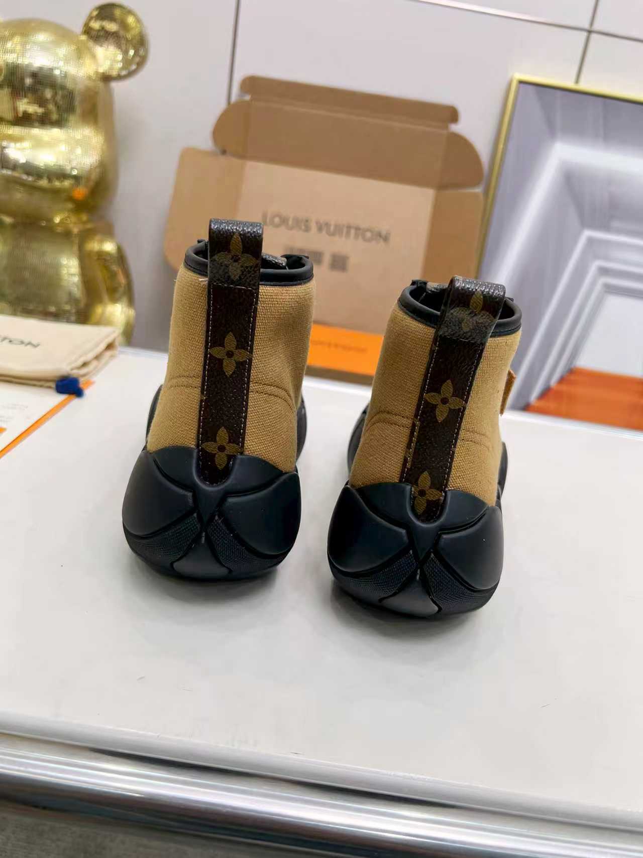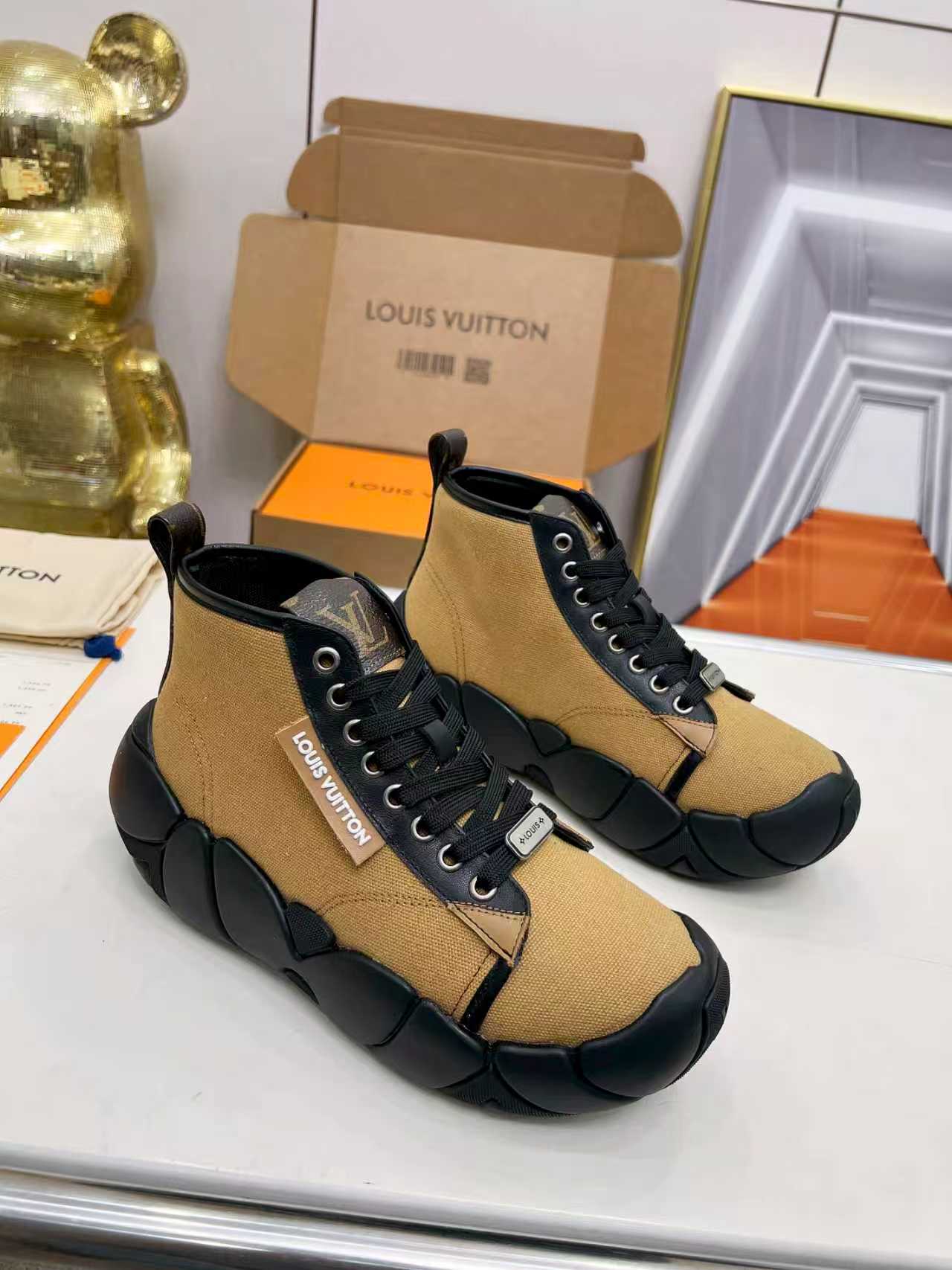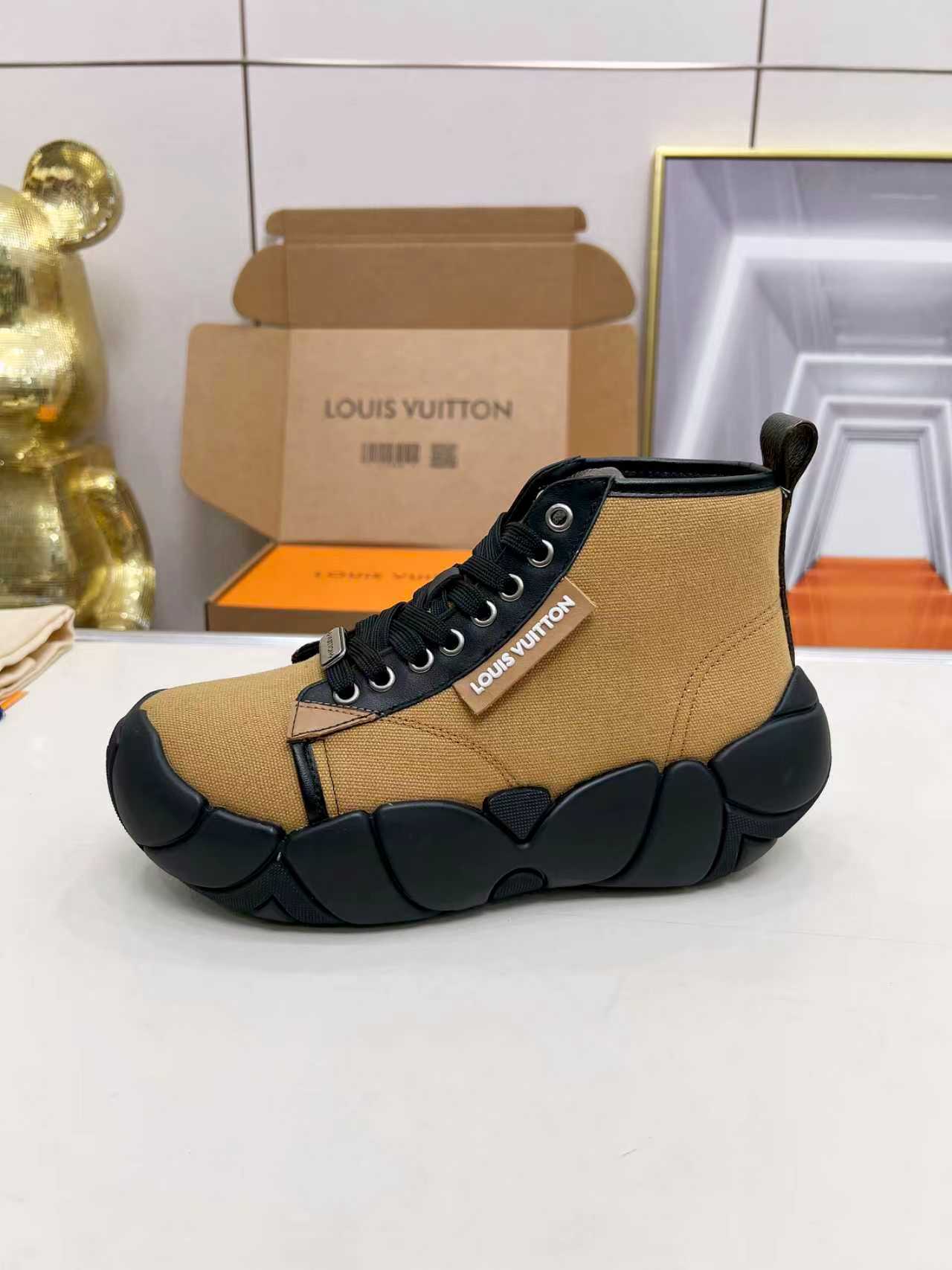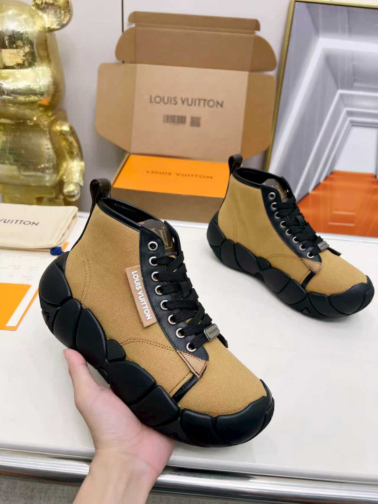 这款鞋子是AAAAA 1:1 质量 (非常棒). 使用了和原版一模一样的材料. 商标部分也保持了和路易威登/Louis Vuitton一样. 图片拍摄是实物鞋子拍摄, 您所收到的实物保证和我们图片一模一样.