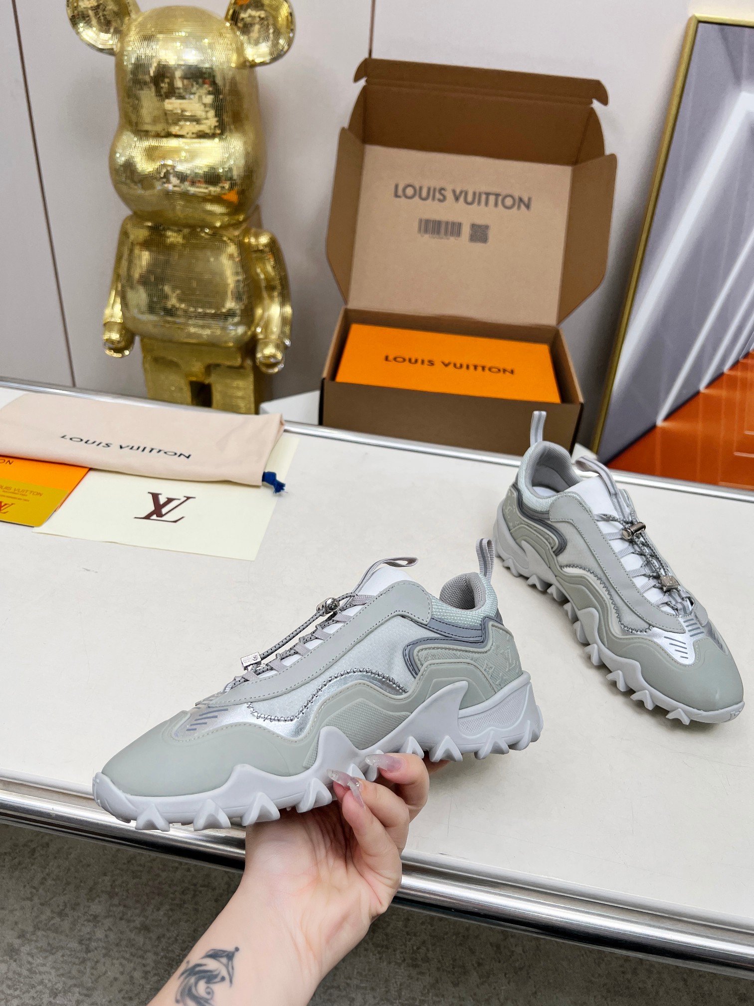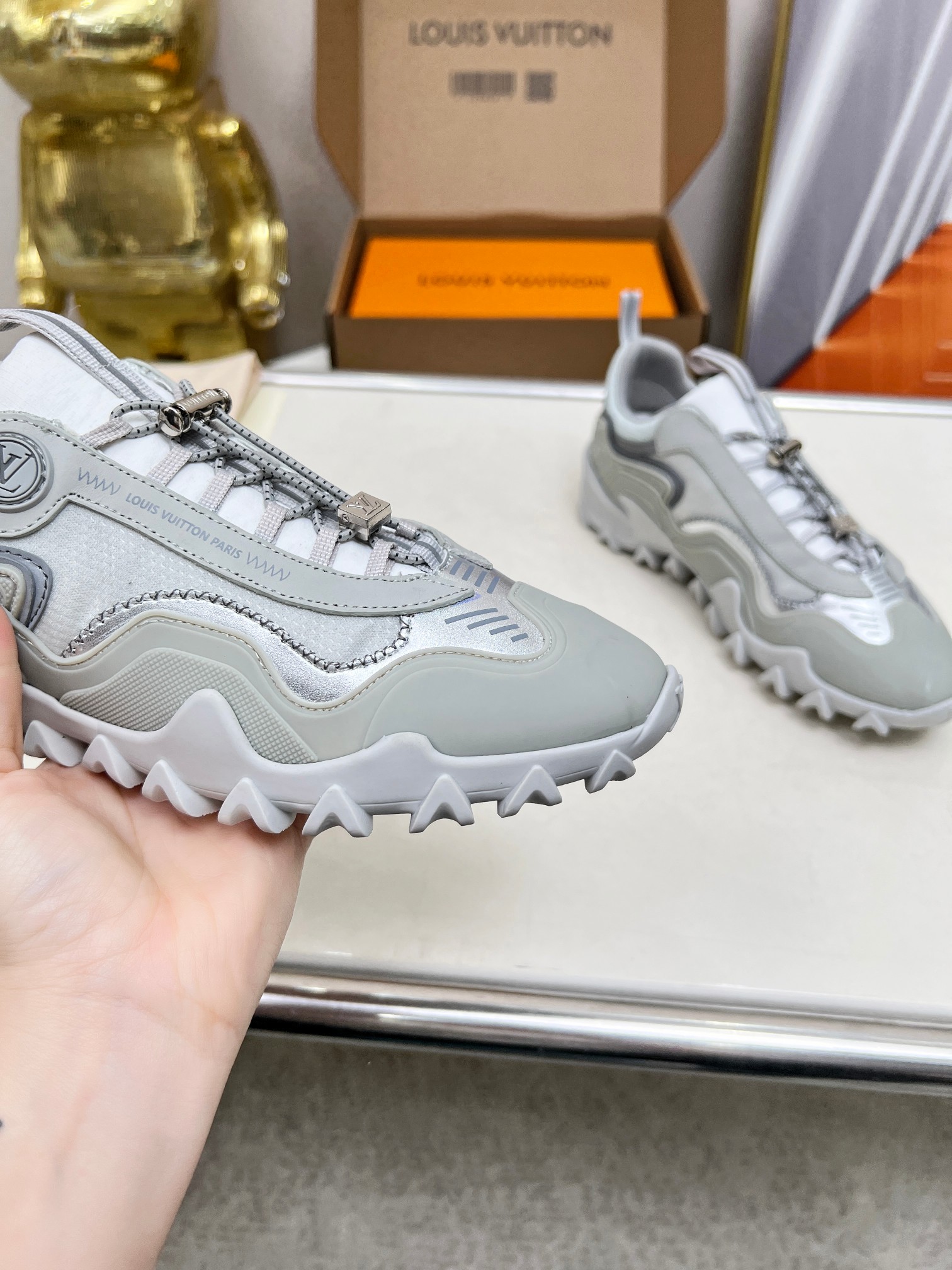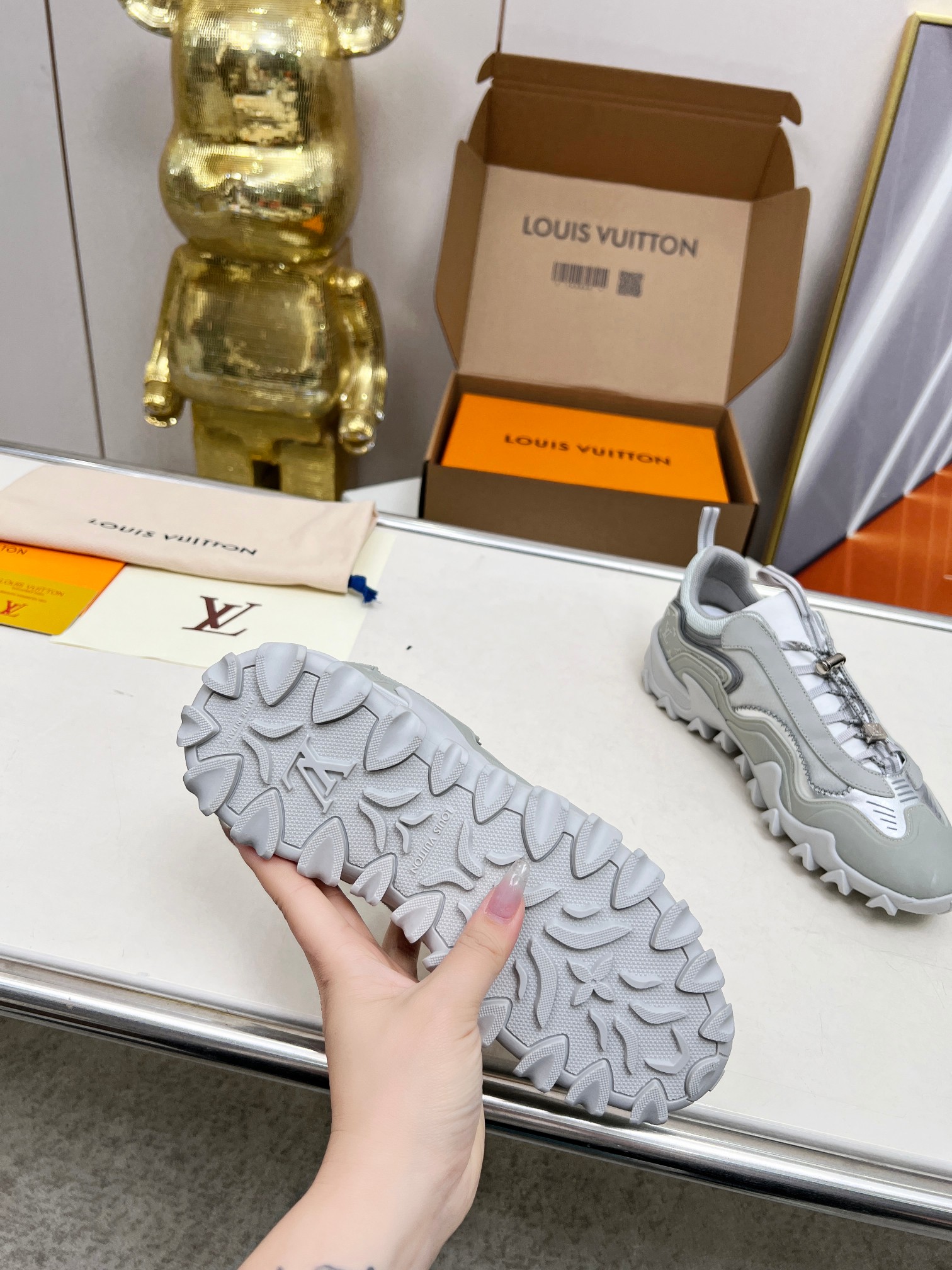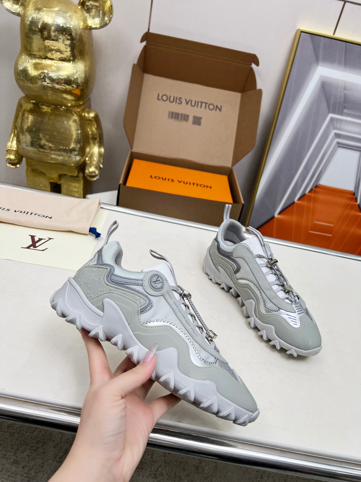 这款鞋子是AAAAA 1:1 质量 (非常棒). 使用了和原版一模一样的材料. 商标部分也保持了和路易威登/Louis Vuitton一样. 图片拍摄是实物鞋子拍摄, 您所收到的实物保证和我们图片一模一样.