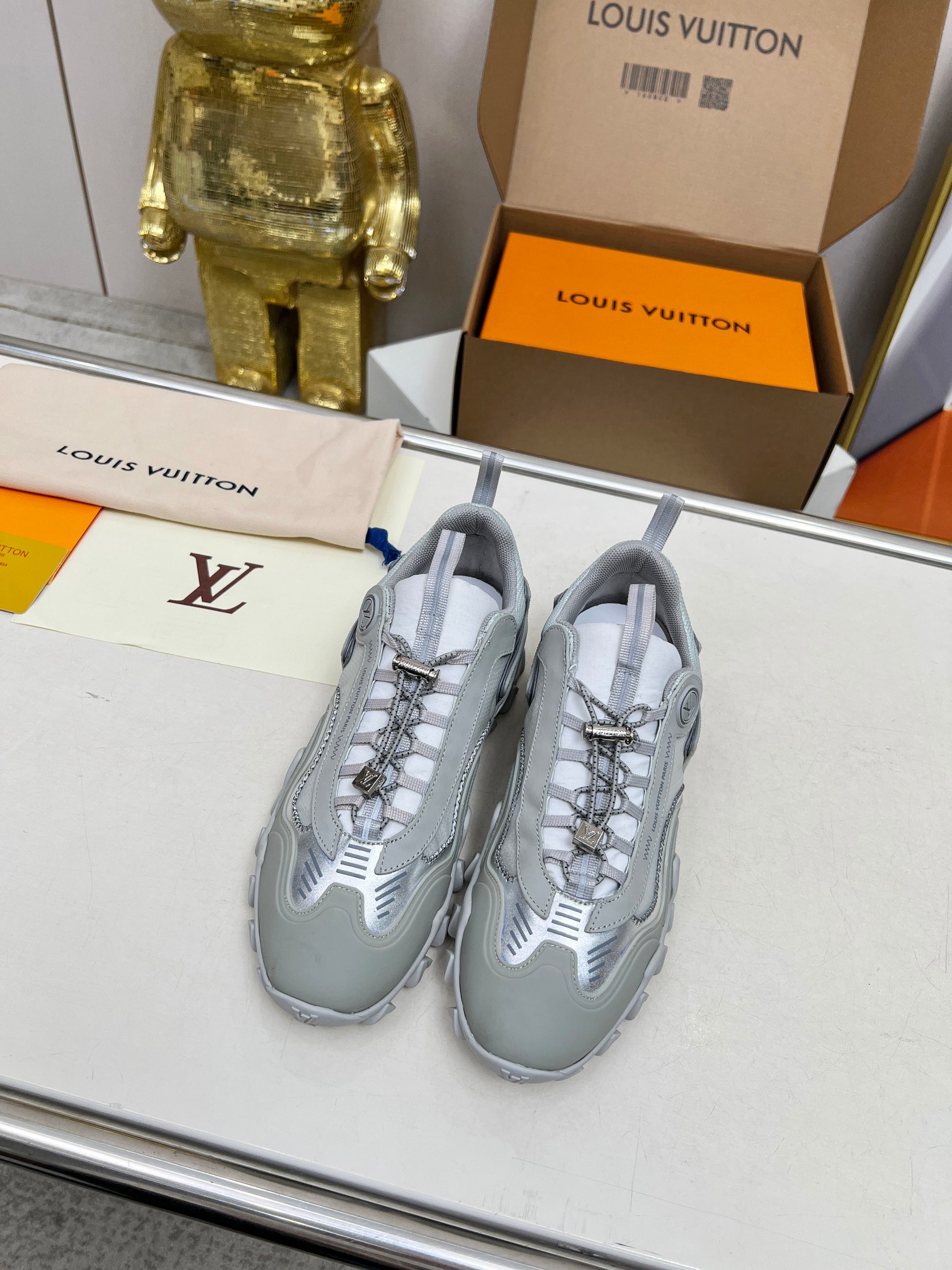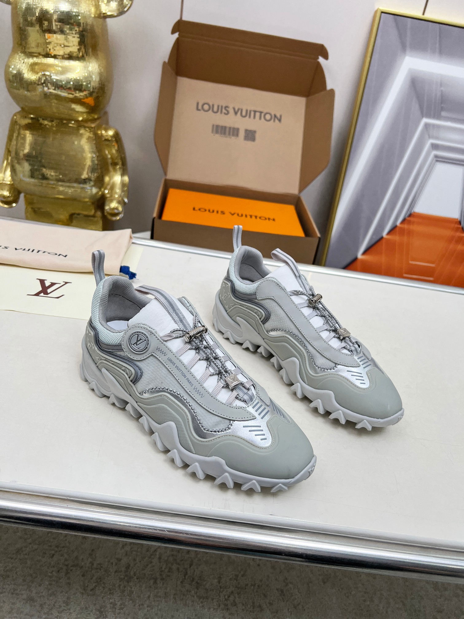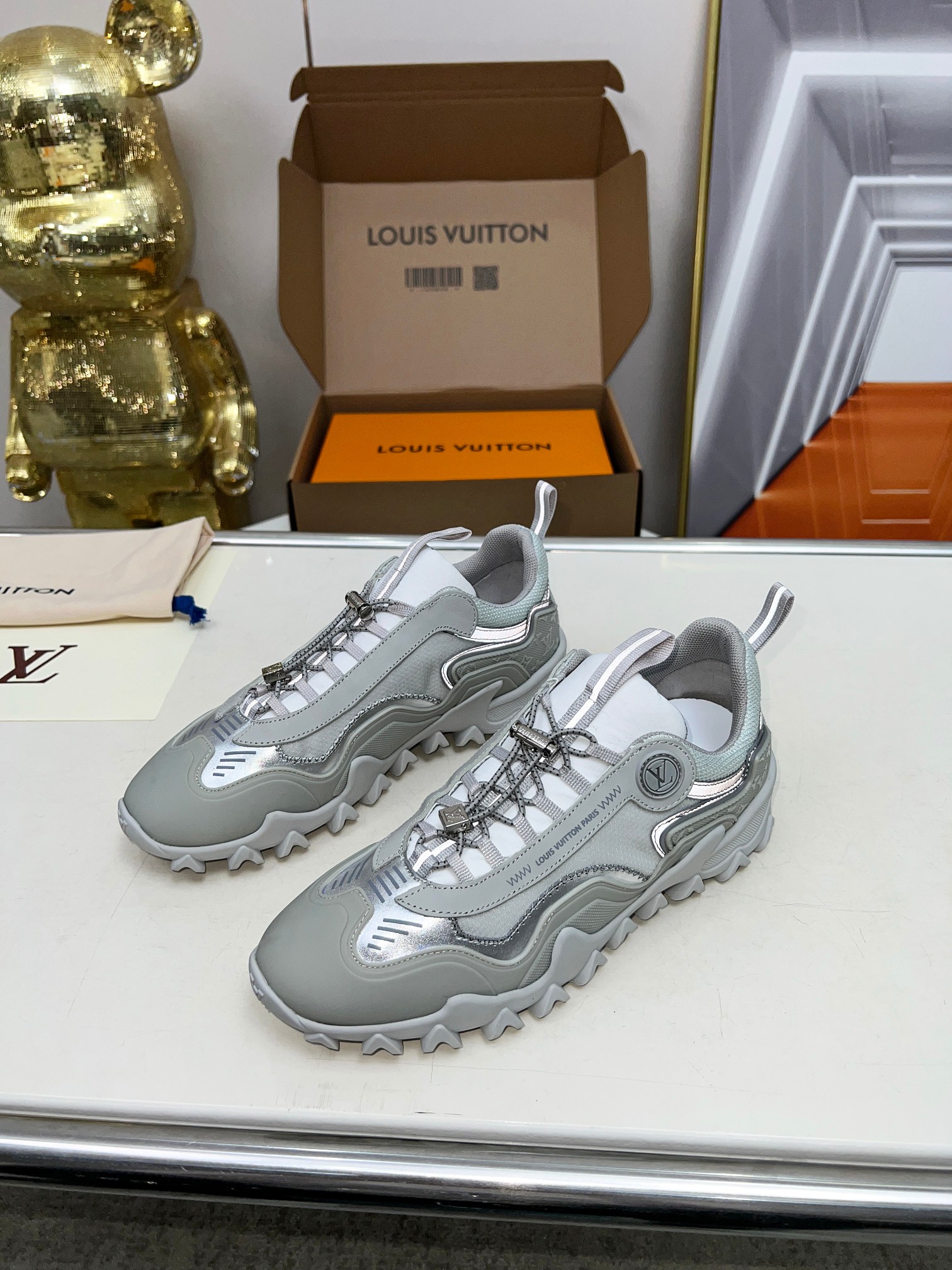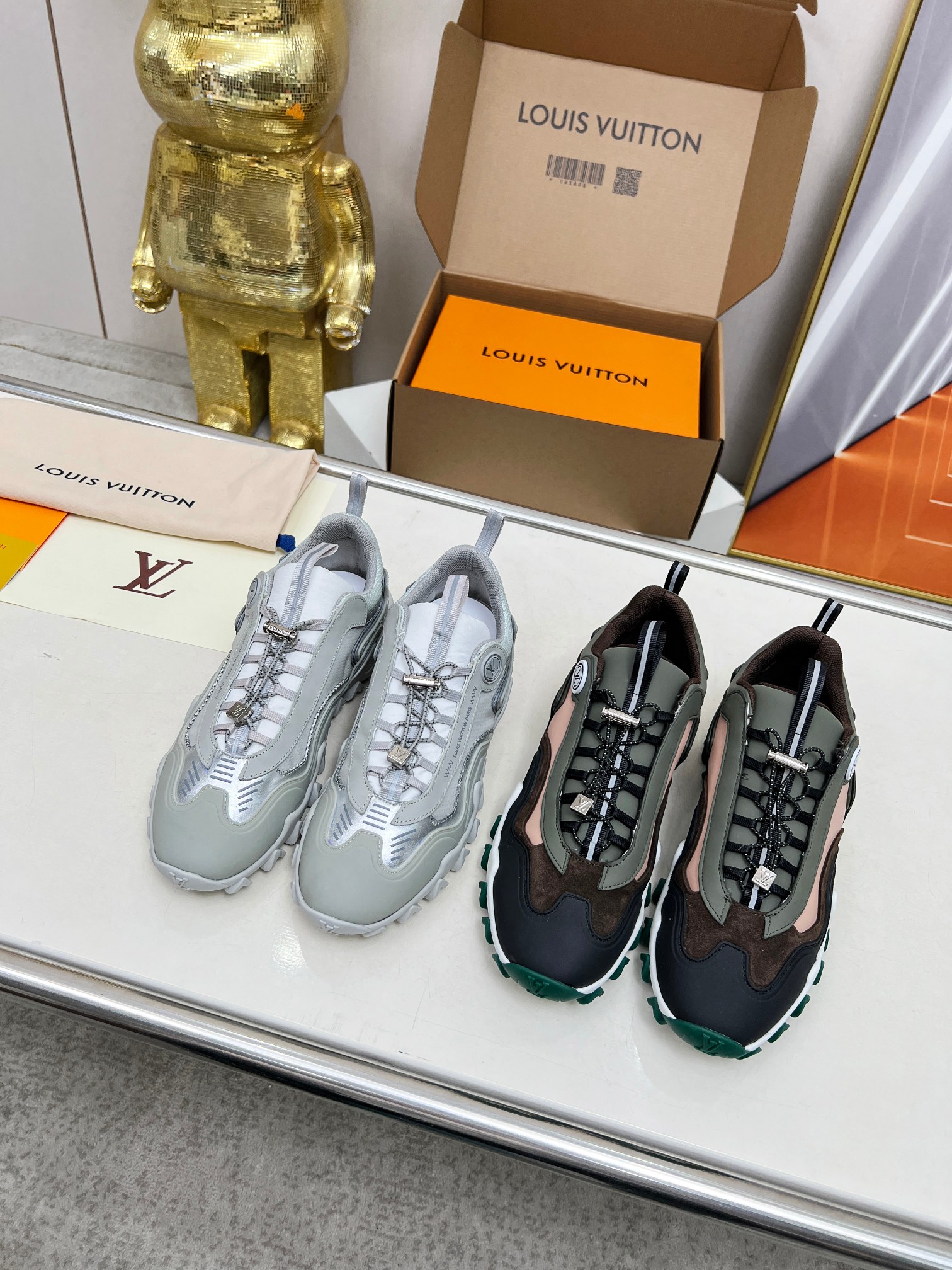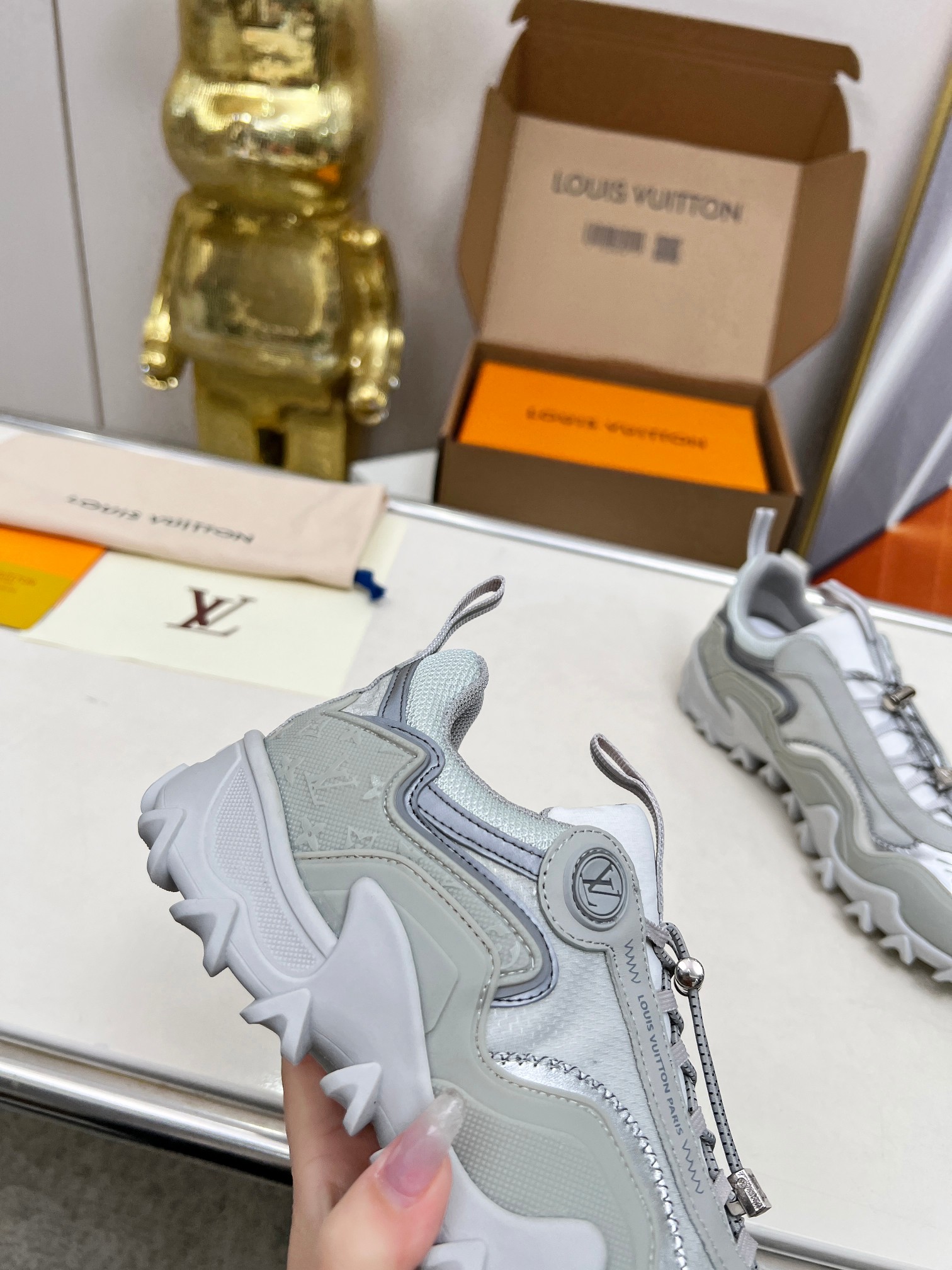 这款鞋子是AAAAA 1:1 质量 (非常棒). 使用了和原版一模一样的材料. 商标部分也保持了和路易威登/Louis Vuitton一样. 图片拍摄是实物鞋子拍摄, 您所收到的实物保证和我们图片一模一样.