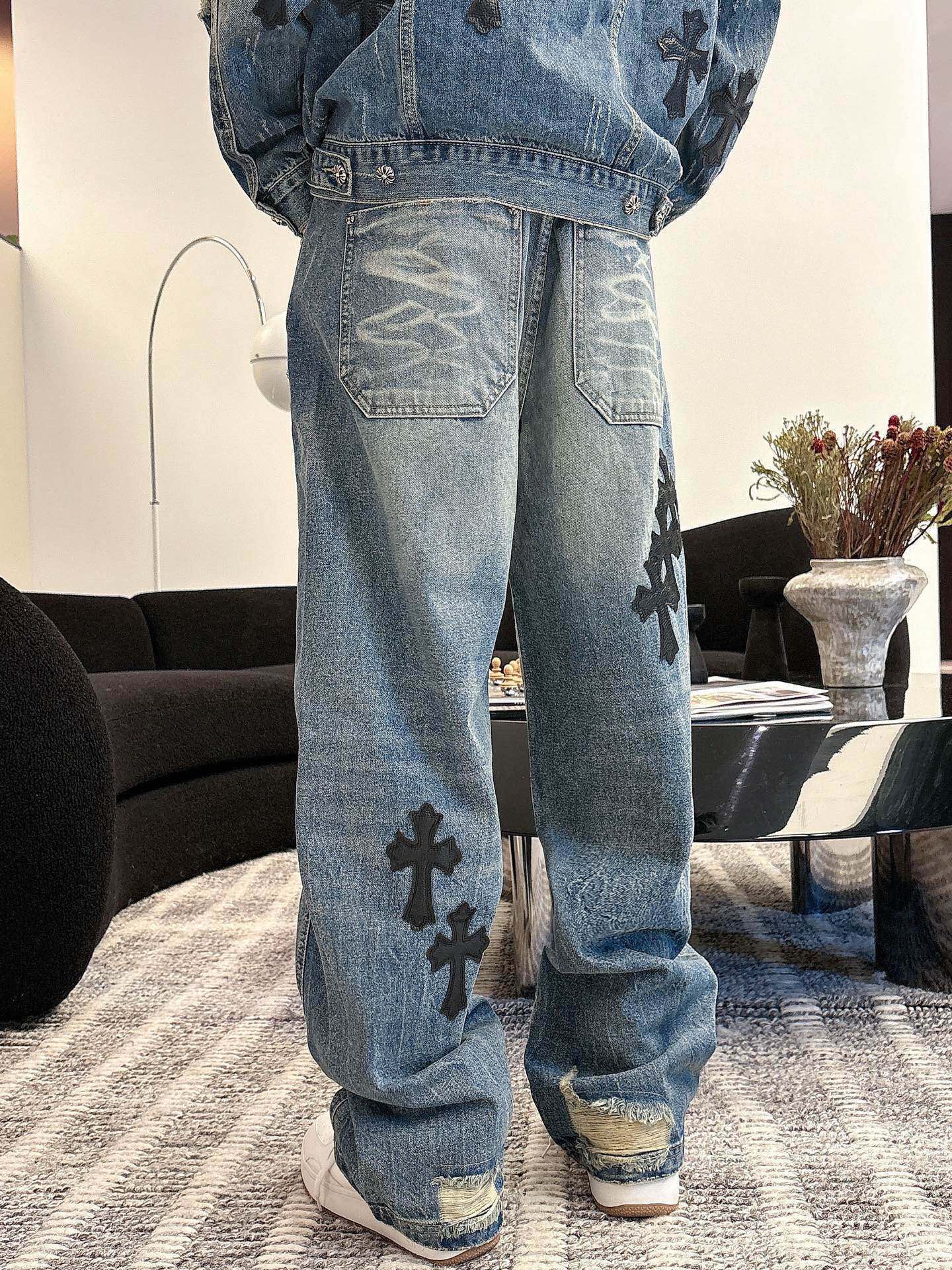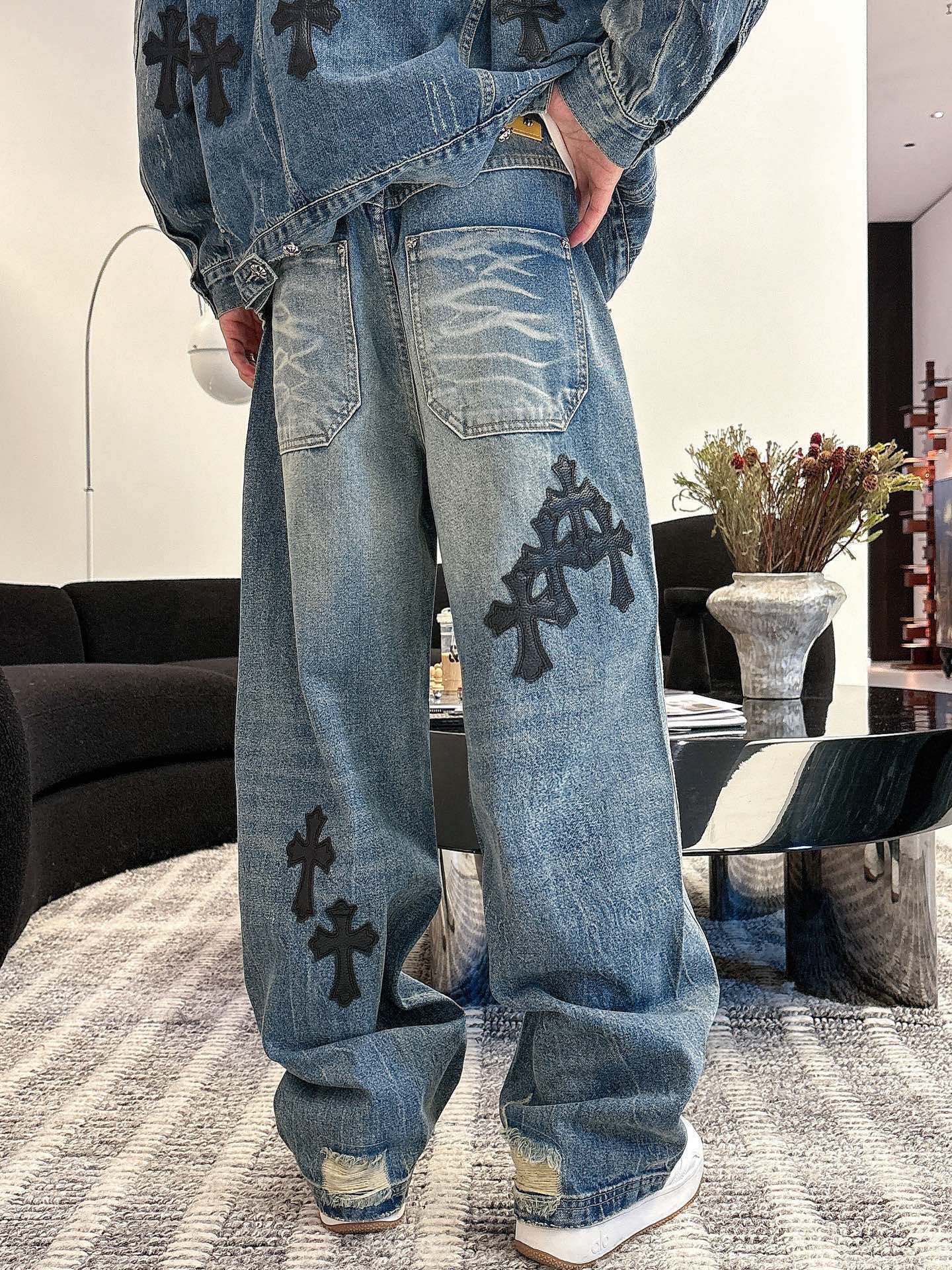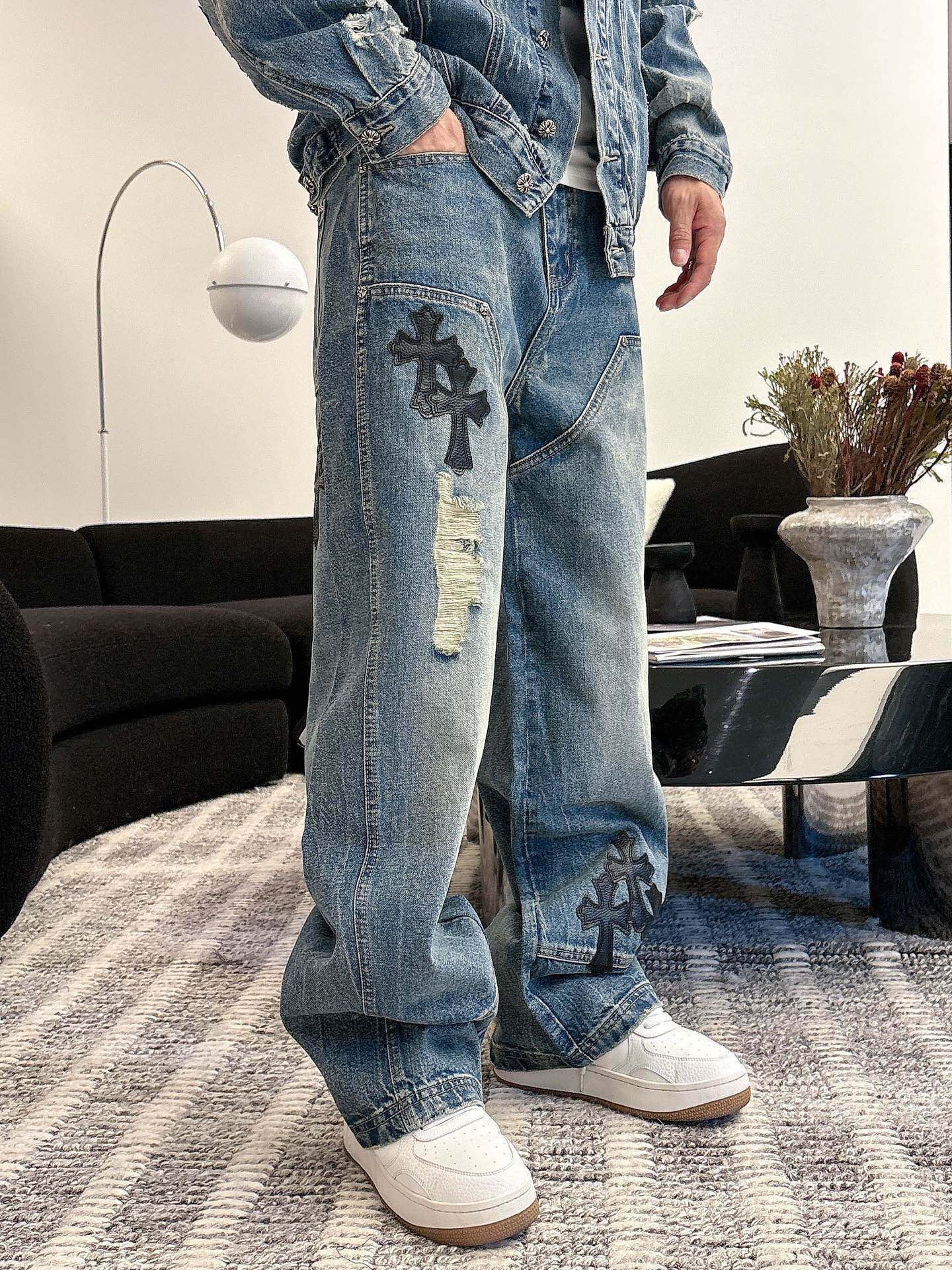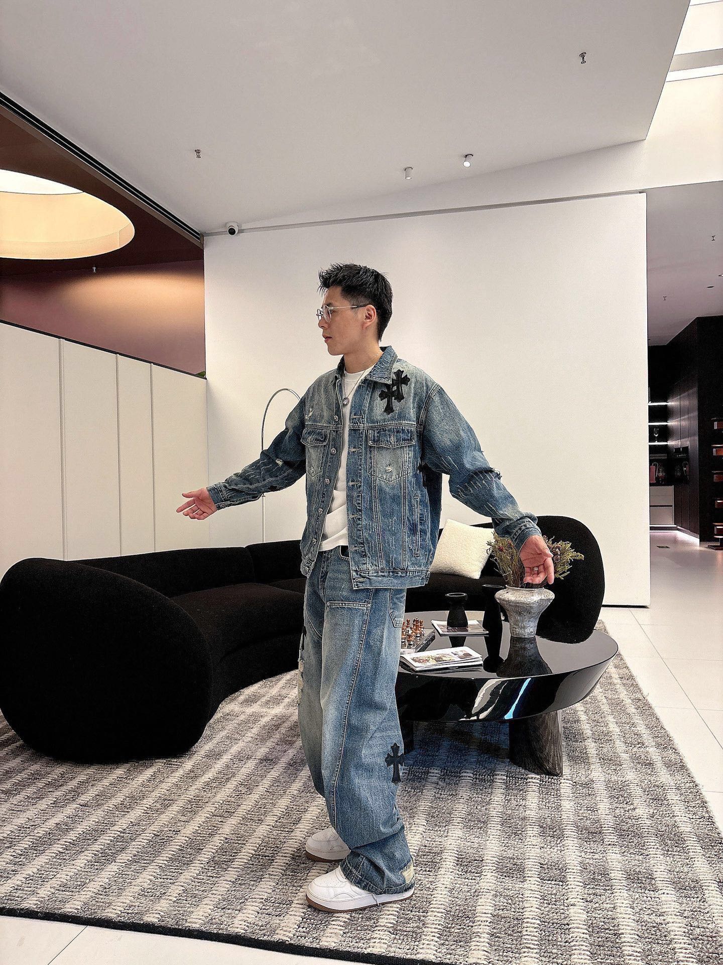 这款衣服是AAAAA 1:1 质量 (非常棒). 使用了和原版一模一样的材料. 商标部分也保持了和克罗心/Chrome Hearts一样. 图片拍摄是实物衣服拍摄, 您所收到的实物保证和我们图片一模一样.