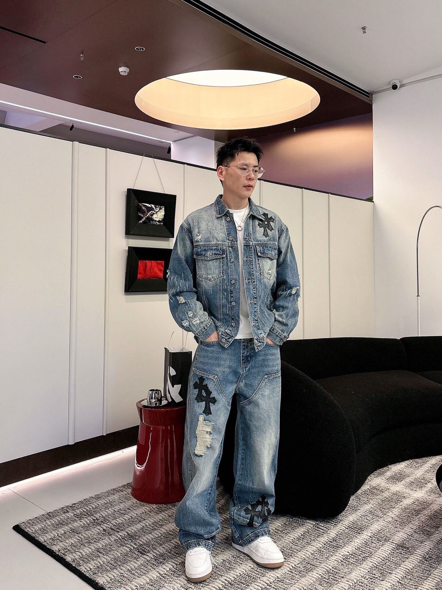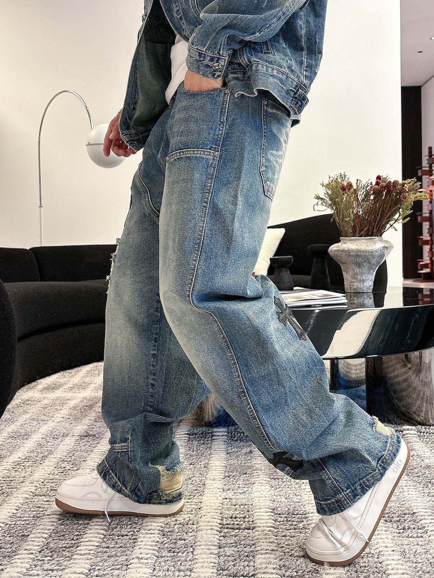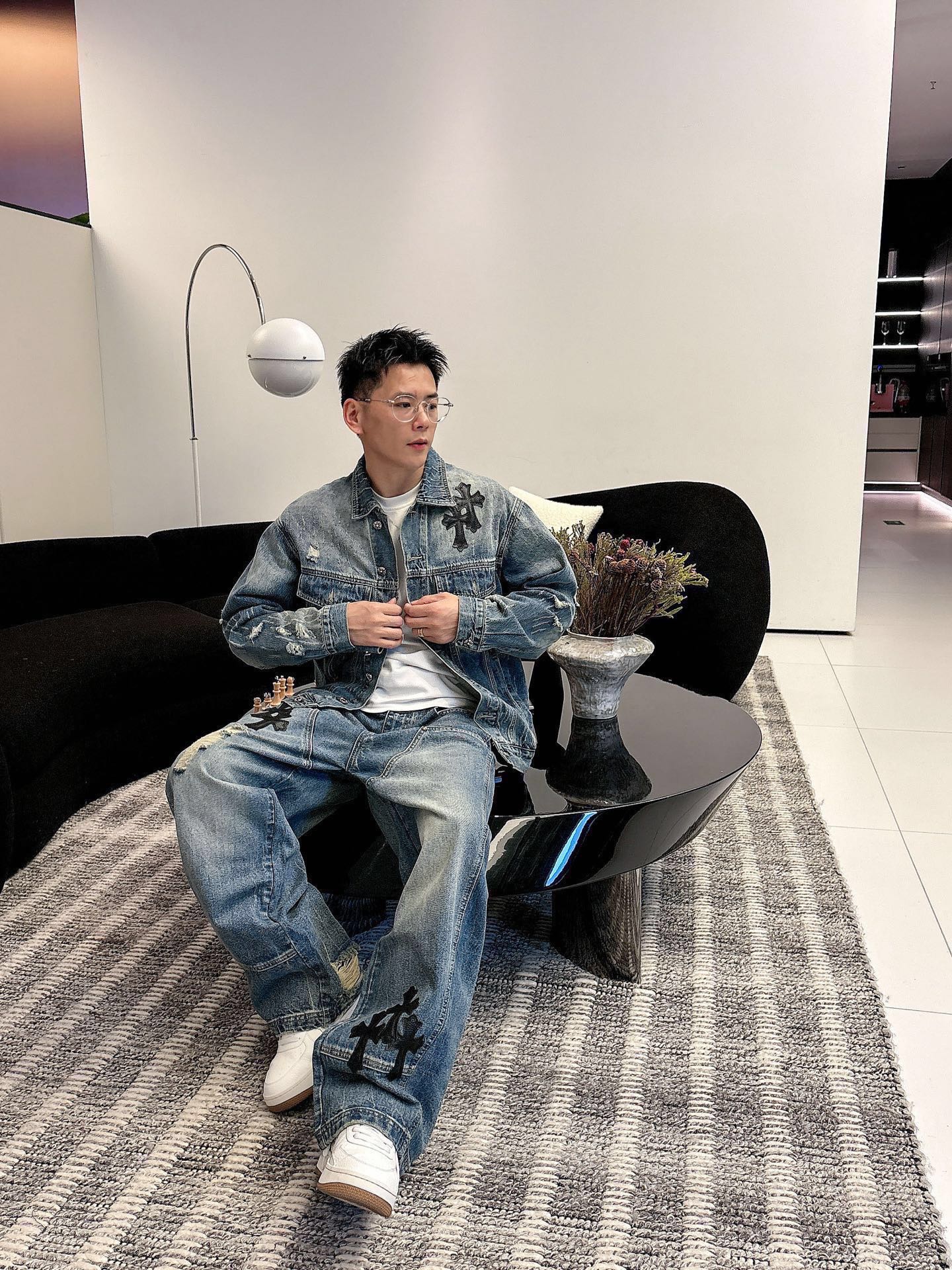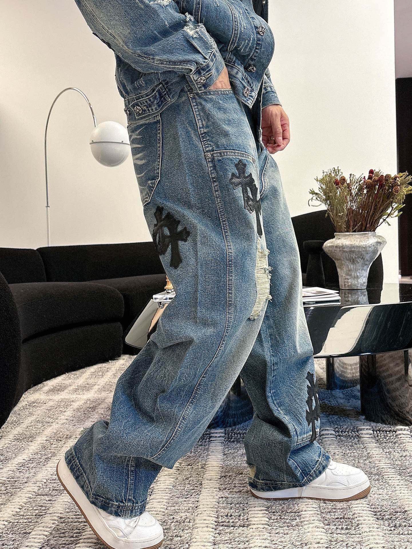 这款衣服是AAAAA 1:1 质量 (非常棒). 使用了和原版一模一样的材料. 商标部分也保持了和克罗心/Chrome Hearts一样. 图片拍摄是实物衣服拍摄, 您所收到的实物保证和我们图片一模一样.