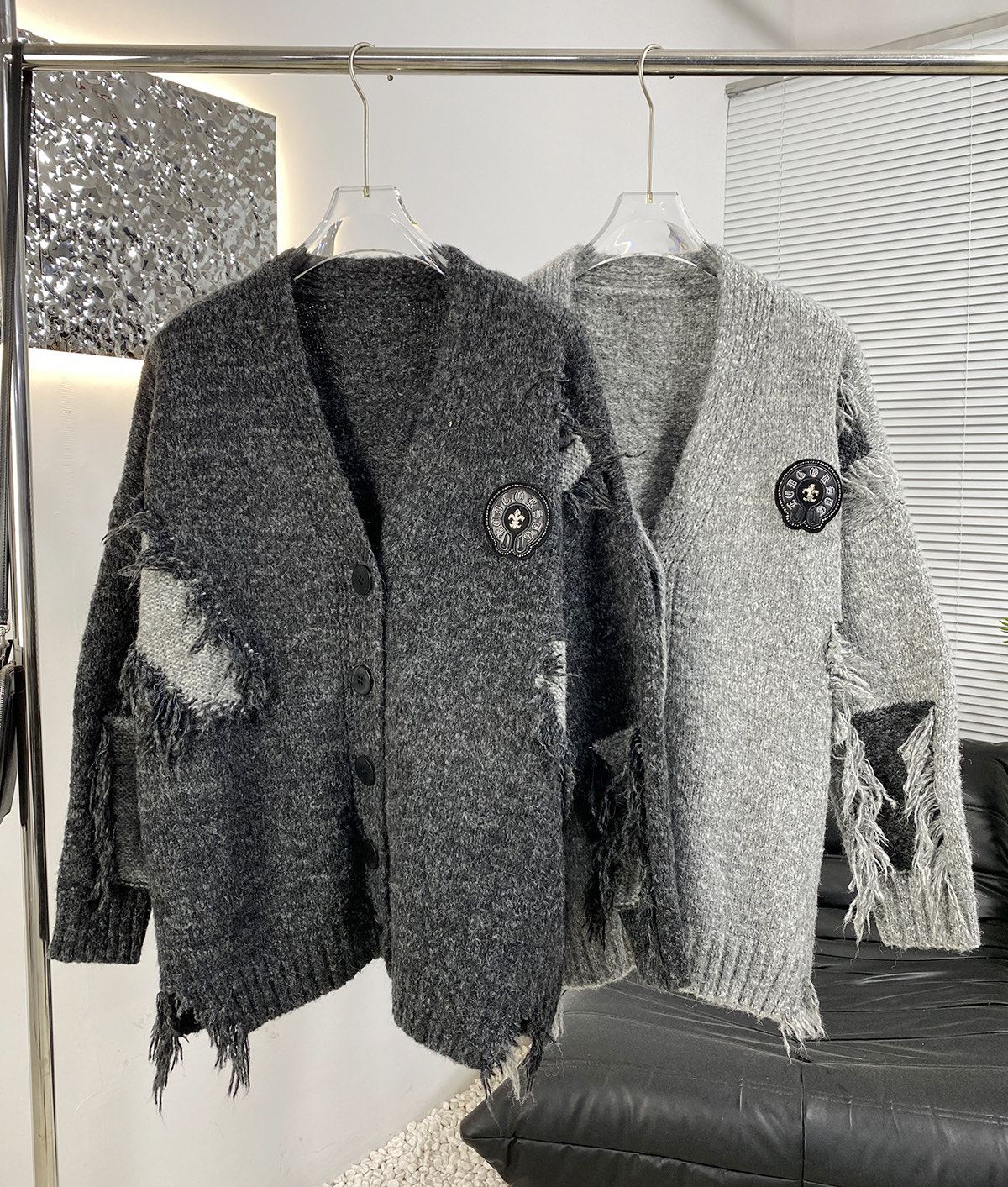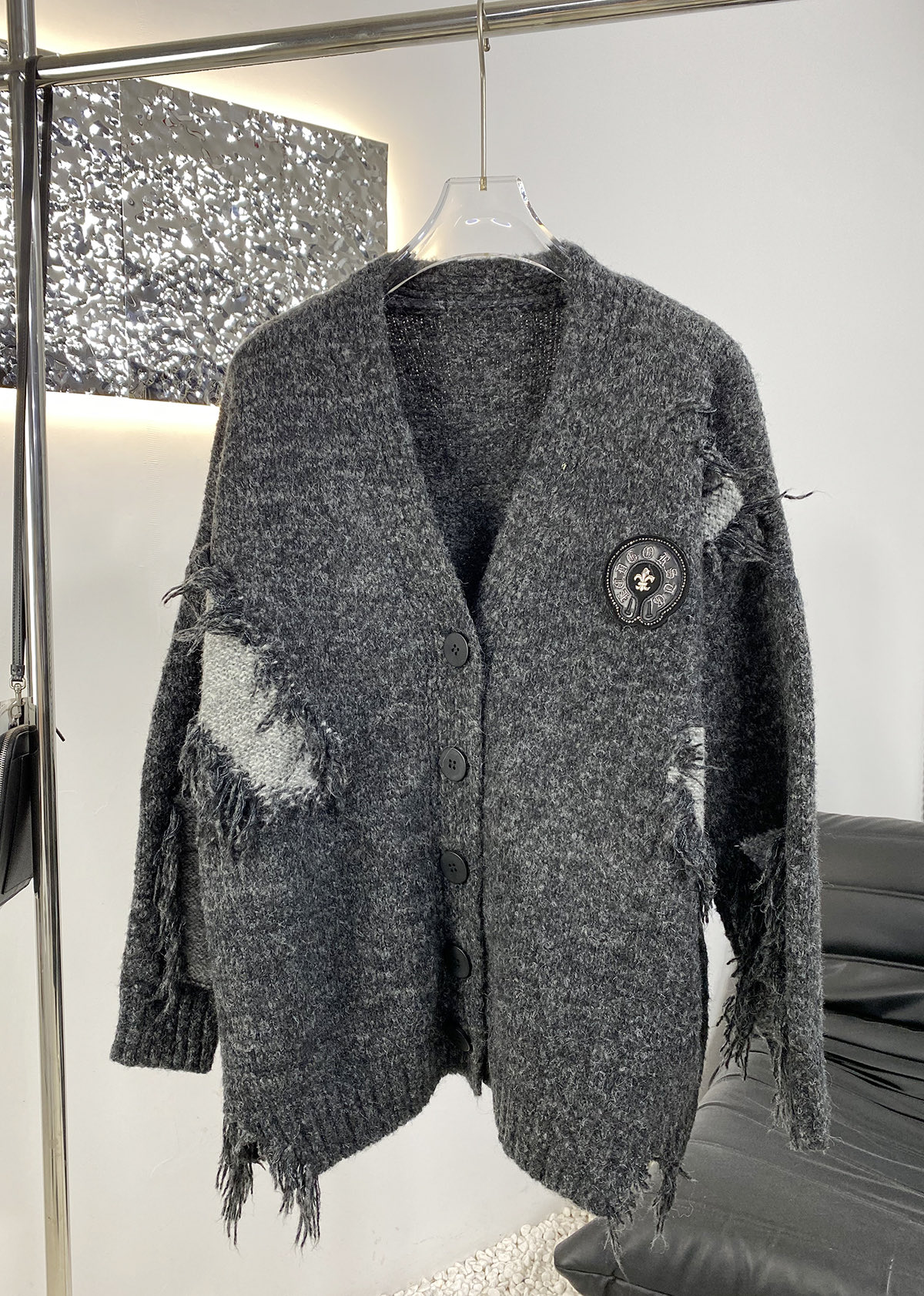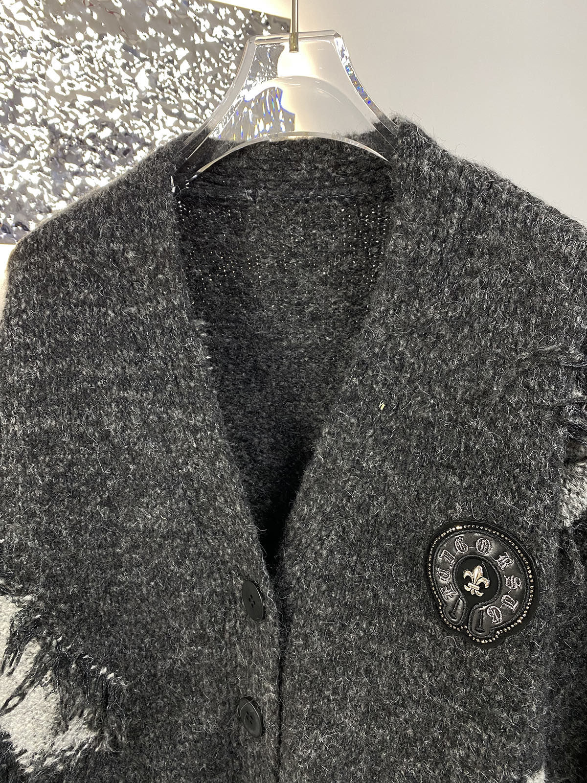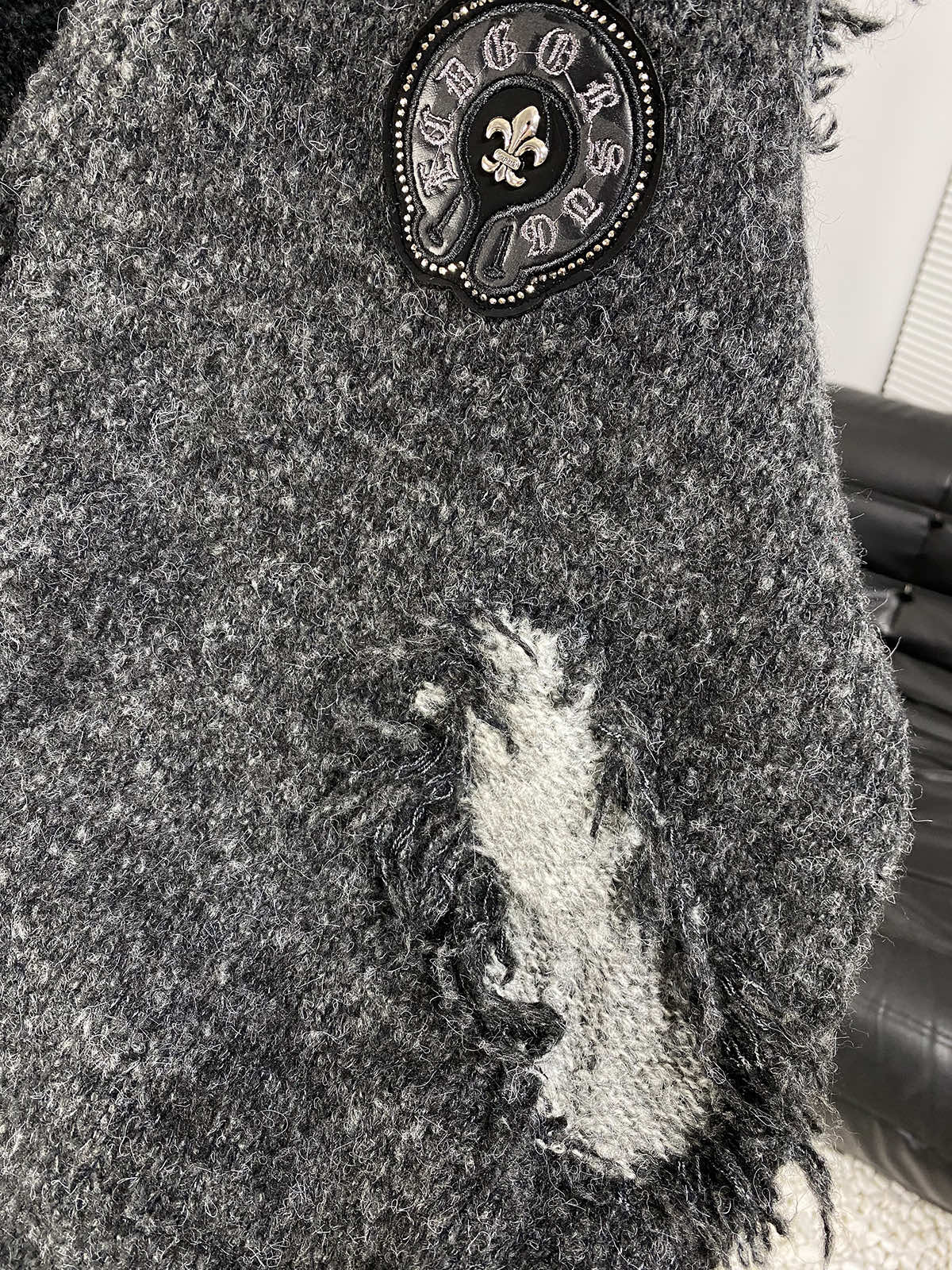 这款衣服是AAAAA 1:1 质量 (非常棒). 使用了和原版一模一样的材料. 商标部分也保持了和克罗心/Chrome Hearts一样. 图片拍摄是实物衣服拍摄, 您所收到的实物保证和我们图片一模一样.