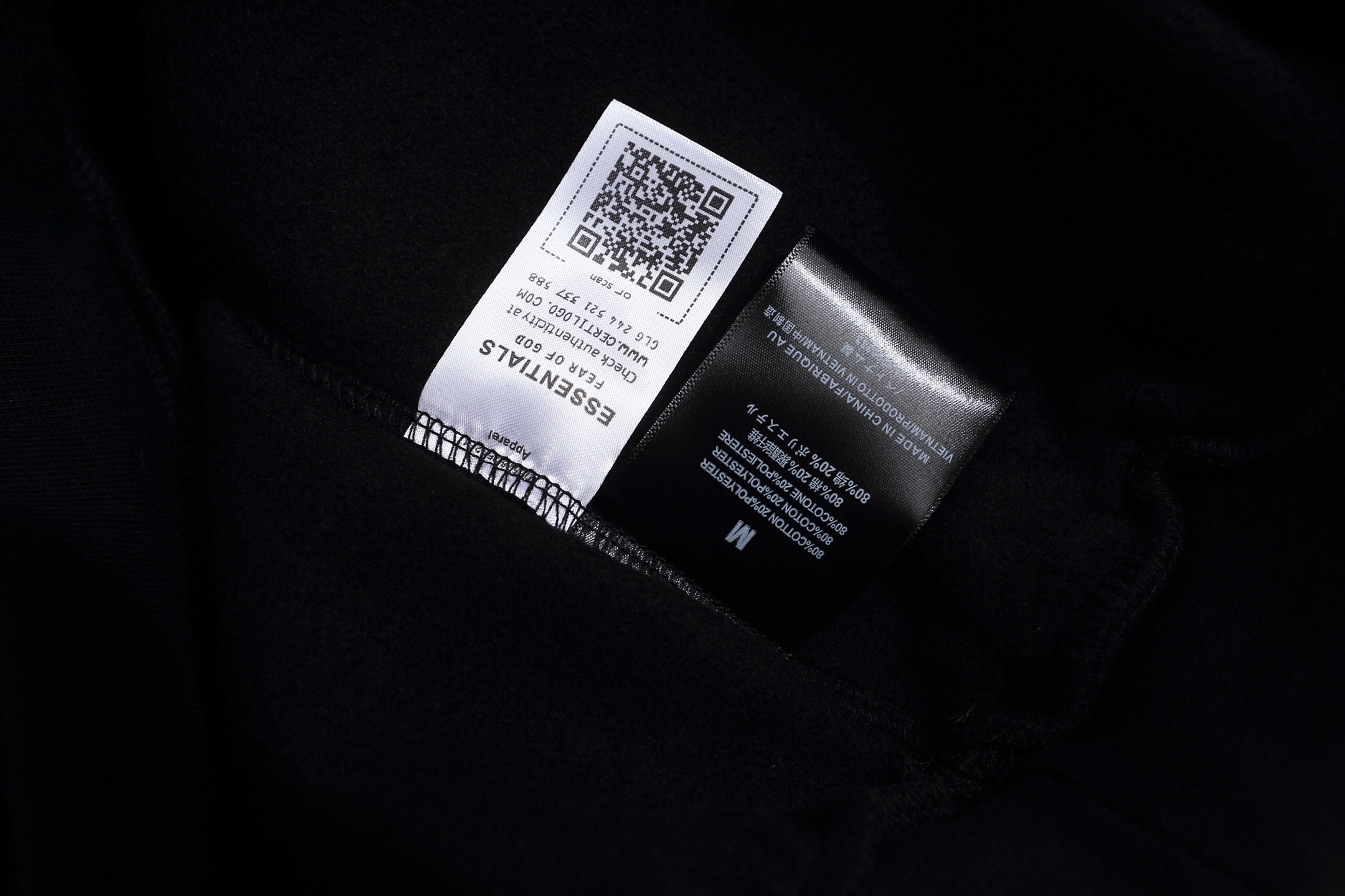 这款衣服是AAAAA 1:1 质量 (非常棒). 使用了和原版一模一样的材料. 商标部分也保持了和ESSENTIALS一样. 图片拍摄是实物衣服拍摄, 您所收到的实物保证和我们图片一模一样.