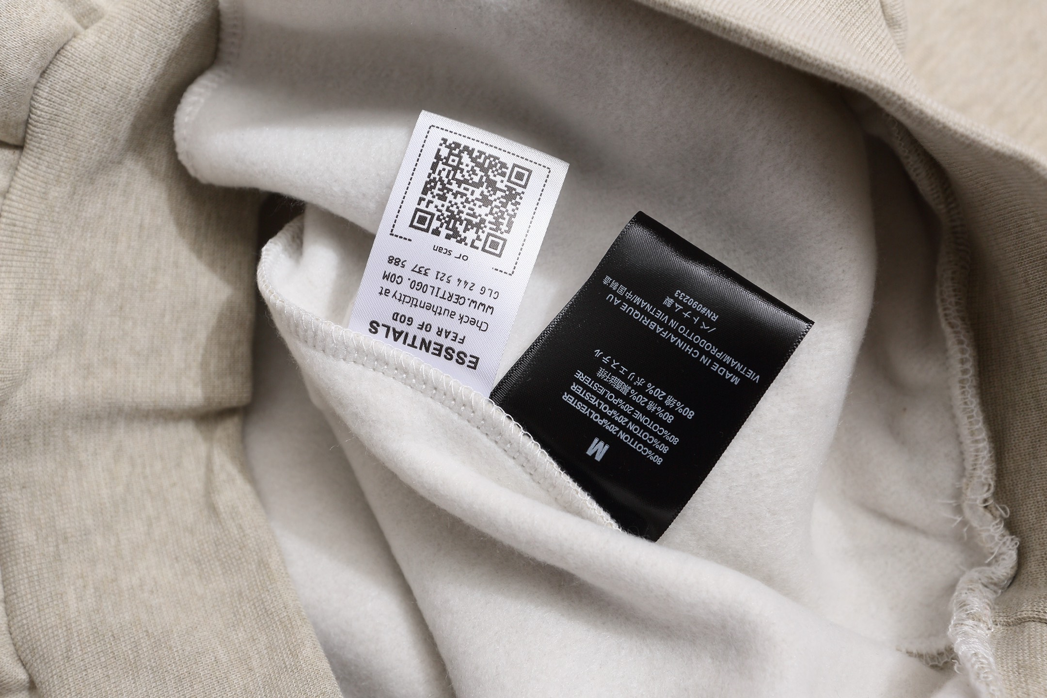 这款衣服是AAAAA 1:1 质量 (非常棒). 使用了和原版一模一样的材料. 商标部分也保持了和ESSENTIALS一样. 图片拍摄是实物衣服拍摄, 您所收到的实物保证和我们图片一模一样.