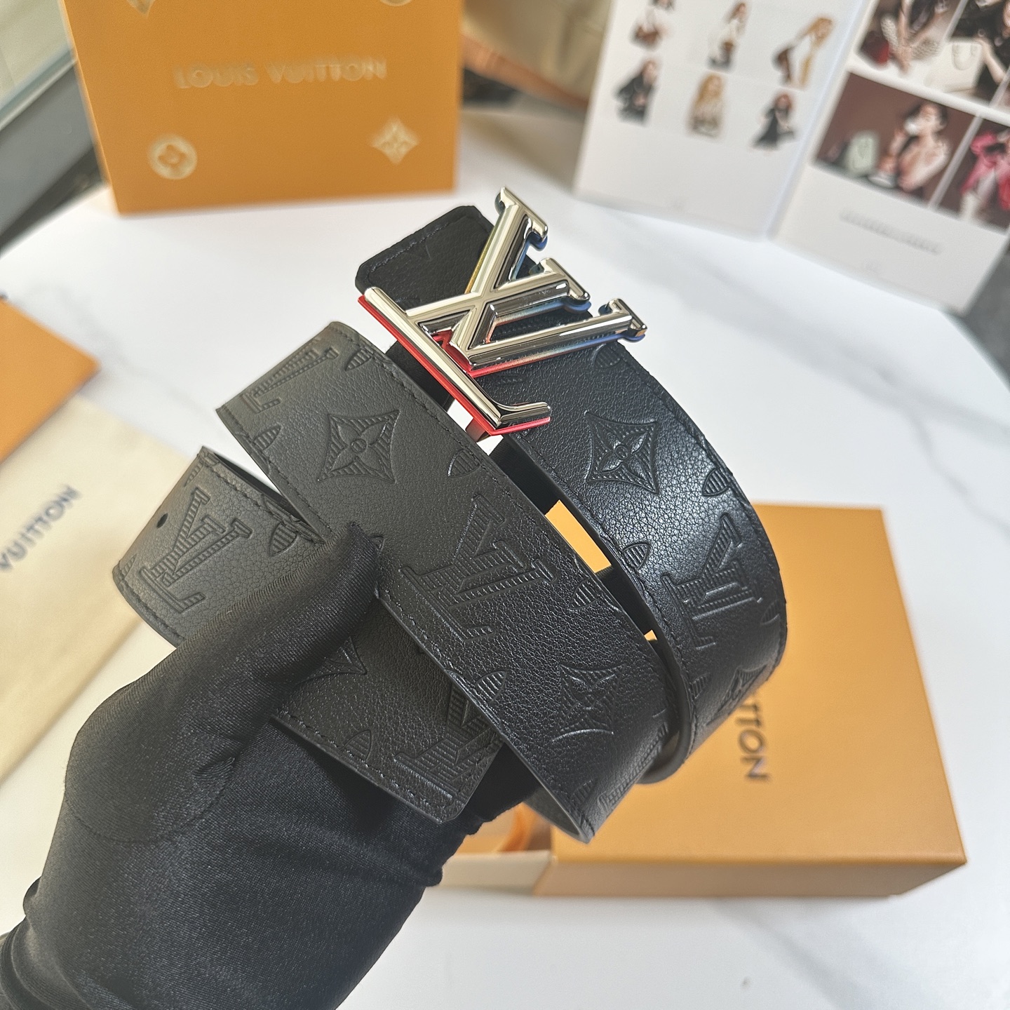 这款皮带是AAAAA 1:1 质量 (非常棒). 使用了和原版一模一样的材料. 商标部分也保持了和一样. 图片拍摄是实物皮带拍摄, 您所收到的实物保证和我们图片一模一样.