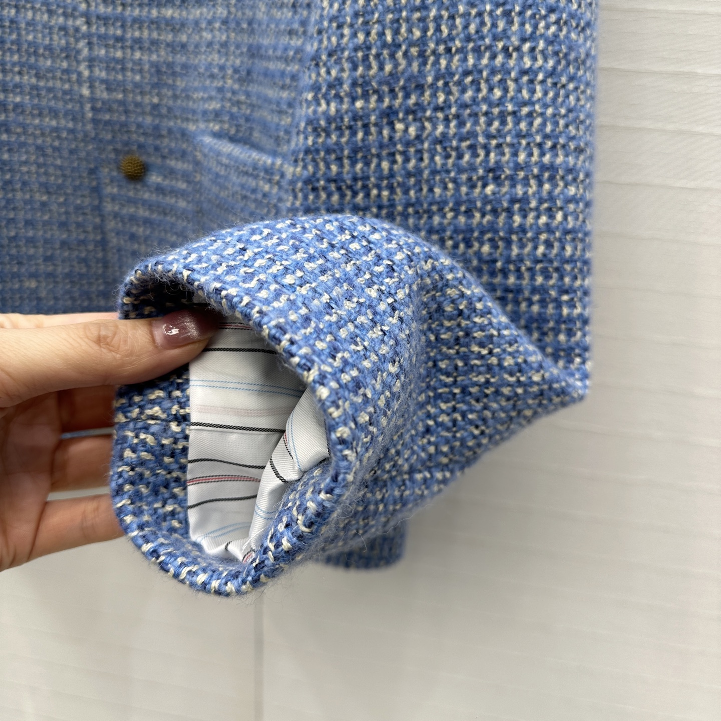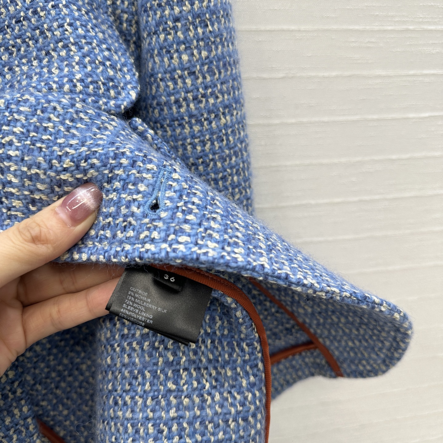 这款衣服是AAAAA 1:1 质量 (非常棒). 使用了和原版一模一样的材料. 商标部分也保持了和香奈儿/Chanel一样. 图片拍摄是实物衣服拍摄, 您所收到的实物保证和我们图片一模一样.