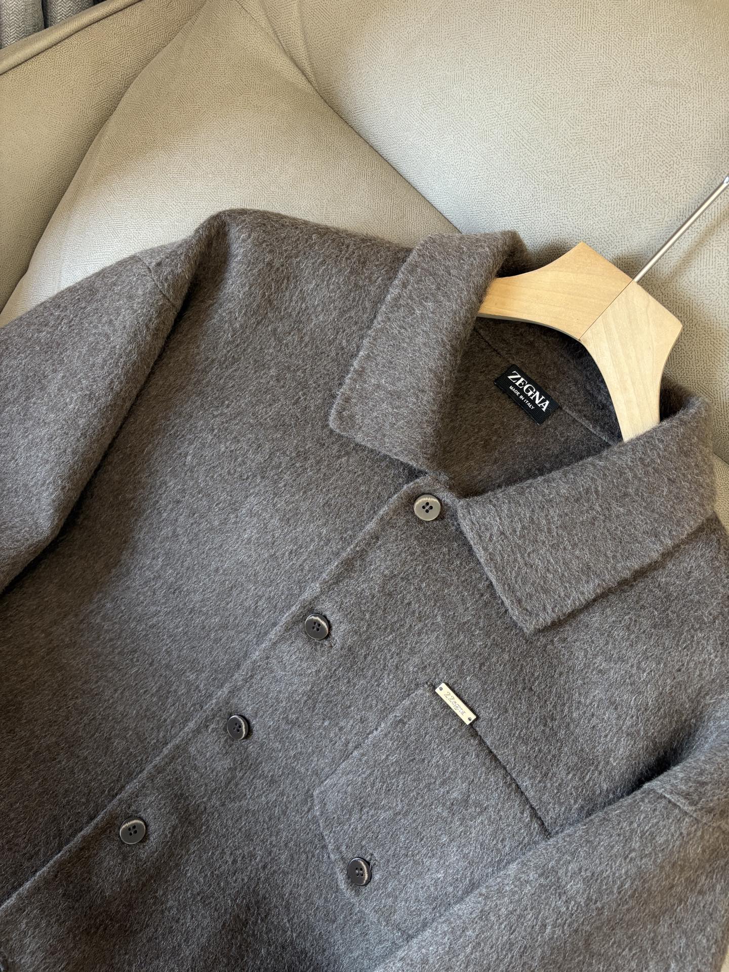 这款衣服是AAAAA 1:1 质量 (非常棒). 使用了和原版一模一样的材料. 商标部分也保持了和杰尼亚/Zegna一样. 图片拍摄是实物衣服拍摄, 您所收到的实物保证和我们图片一模一样.