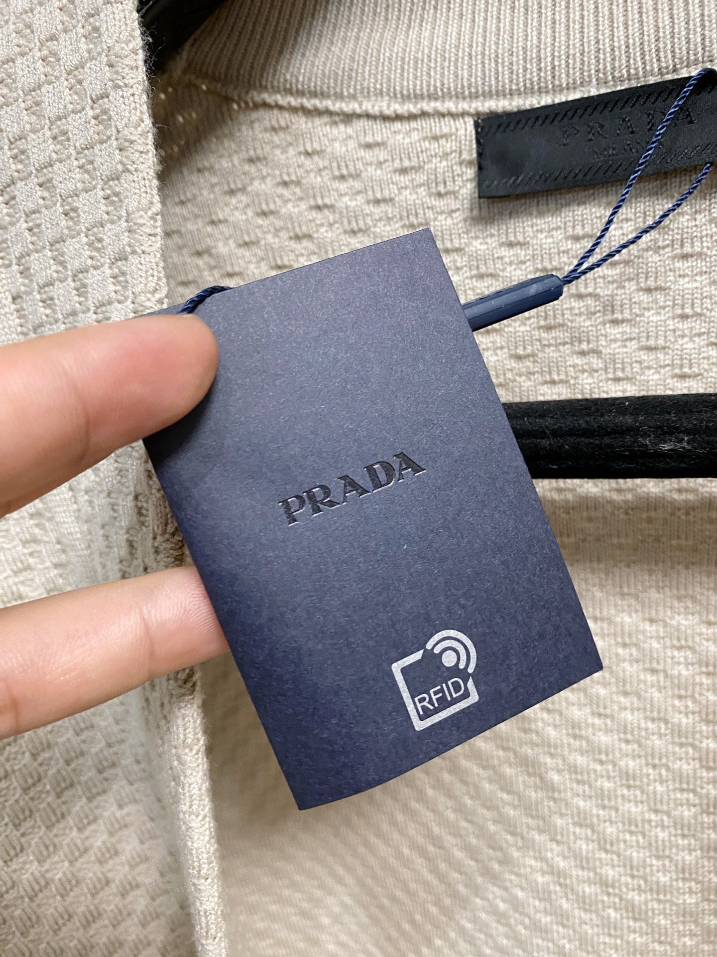 这款衣服是AAAAA 1:1 质量 (非常棒). 使用了和原版一模一样的材料. 商标部分也保持了和普拉达/Prada一样. 图片拍摄是实物衣服拍摄, 您所收到的实物保证和我们图片一模一样.