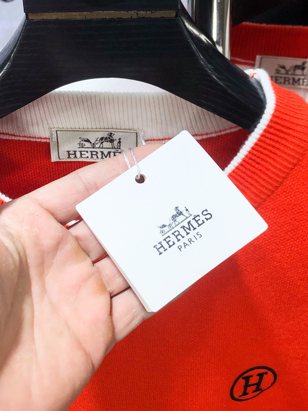 这款衣服是AAAAA 1:1 质量 (非常棒). 使用了和原版一模一样的材料. 商标部分也保持了和爱马仕/Hermes一样. 图片拍摄是实物衣服拍摄, 您所收到的实物保证和我们图片一模一样.