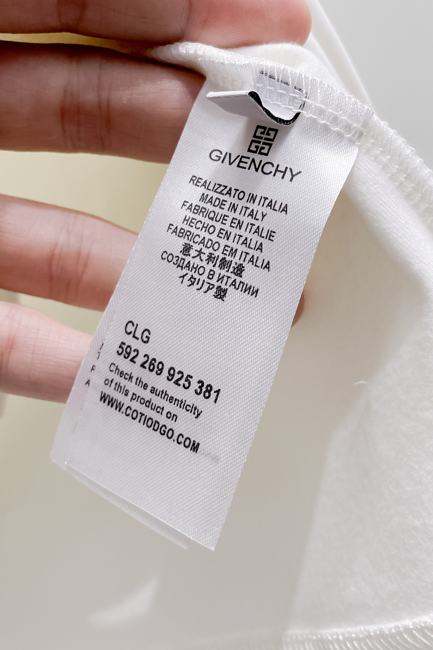 这款衣服是AAAAA 1:1 质量 (非常棒). 使用了和原版一模一样的材料. 商标部分也保持了和纪梵希/Givenchy一样. 图片拍摄是实物衣服拍摄, 您所收到的实物保证和我们图片一模一样.