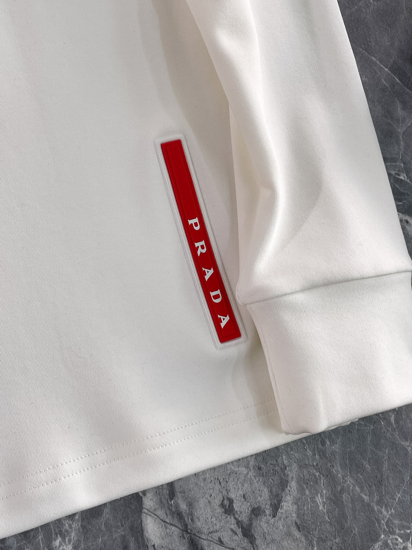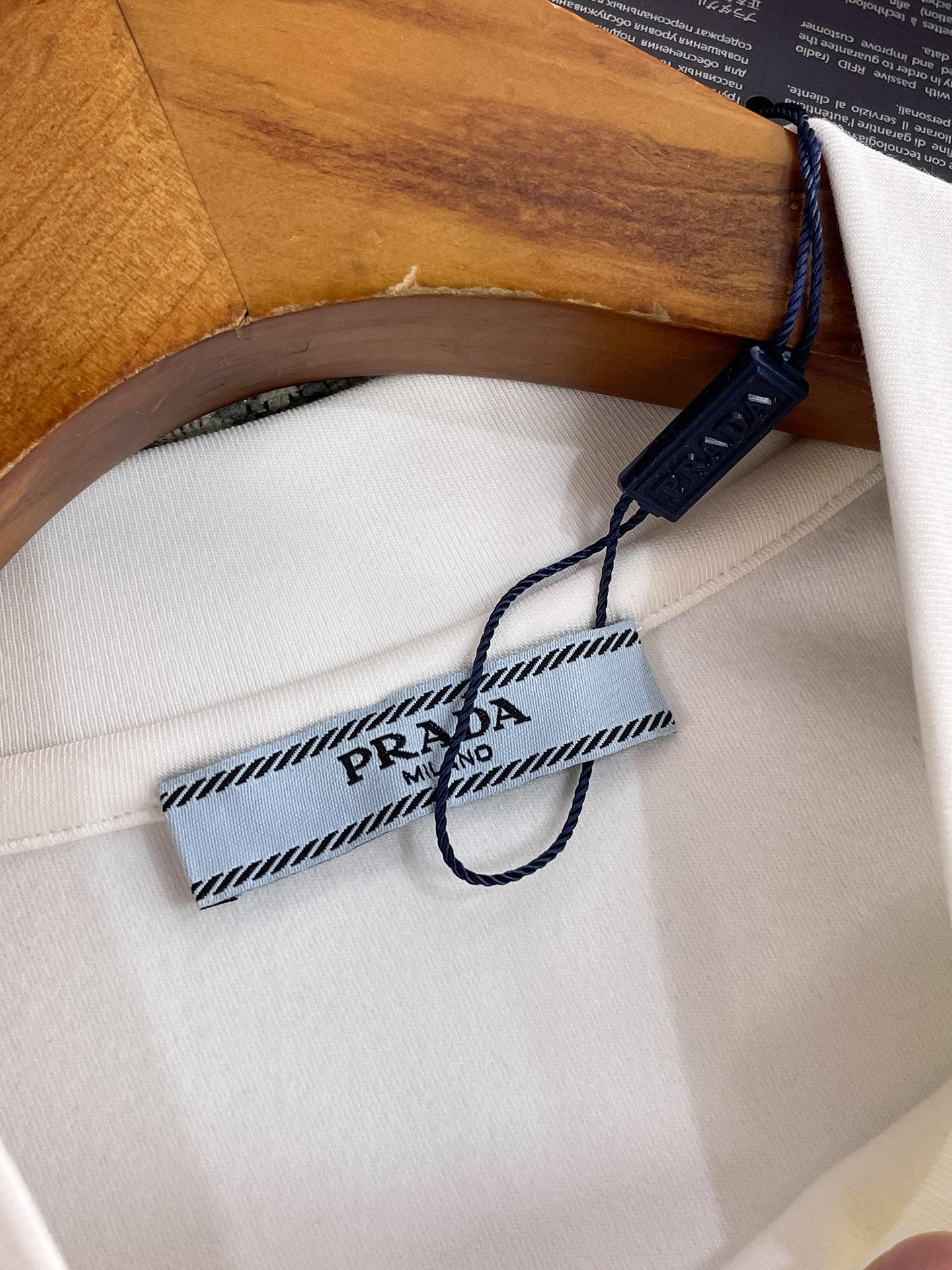这款衣服是AAAAA 1:1 质量 (非常棒). 使用了和原版一模一样的材料. 商标部分也保持了和普拉达/Prada一样. 图片拍摄是实物衣服拍摄, 您所收到的实物保证和我们图片一模一样.