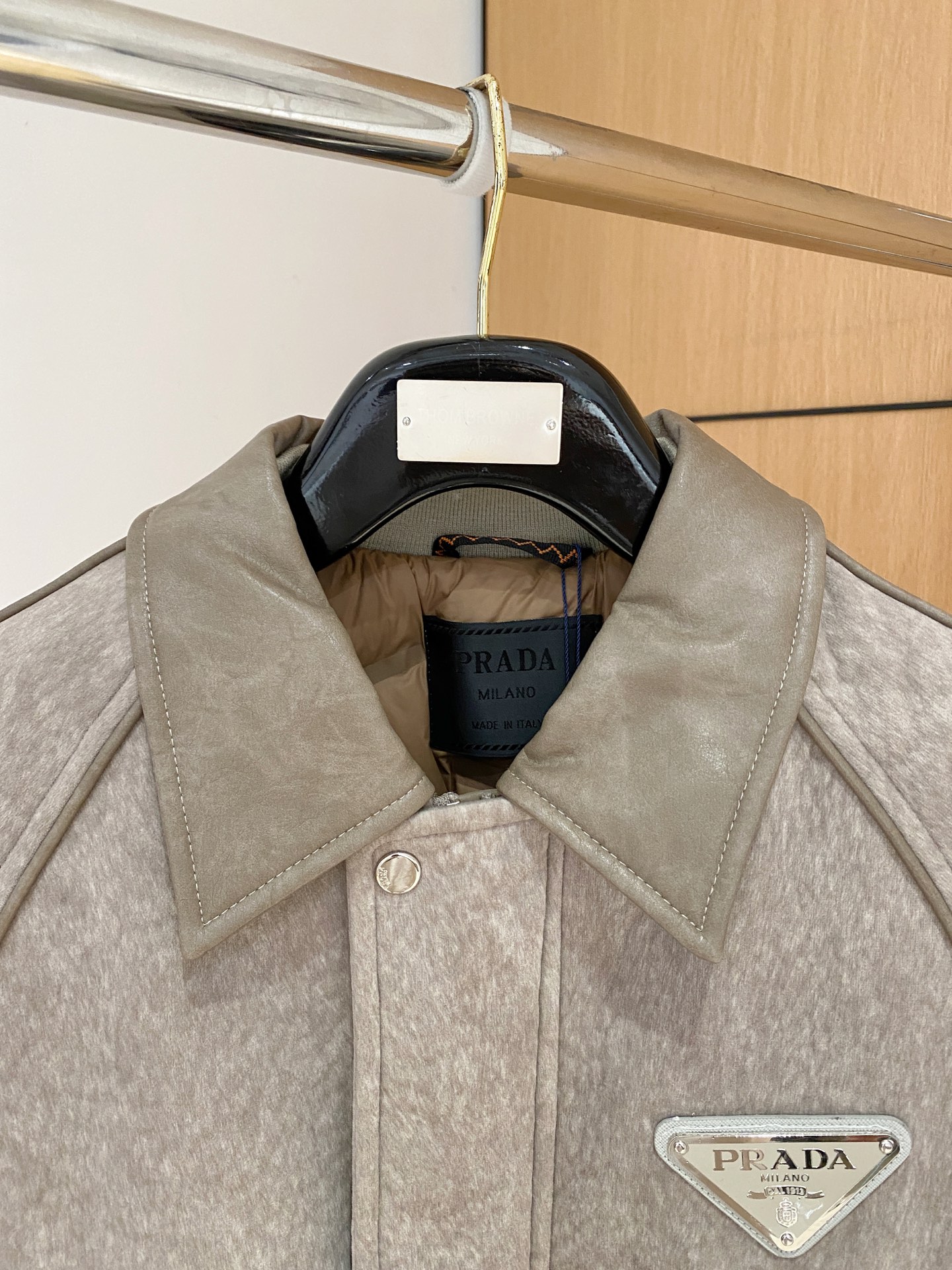 这款衣服是AAAAA 1:1 质量 (非常棒). 使用了和原版一模一样的材料. 商标部分也保持了和普拉达/Prada一样. 图片拍摄是实物衣服拍摄, 您所收到的实物保证和我们图片一模一样.