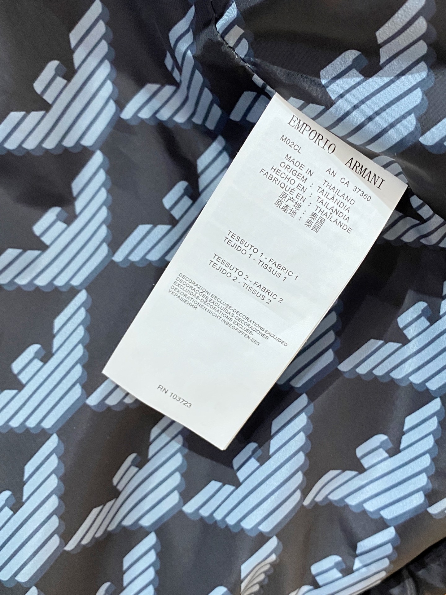 这款衣服是AAAAA 1:1 质量 (非常棒). 使用了和原版一模一样的材料. 商标部分也保持了和阿玛尼/Armani一样. 图片拍摄是实物衣服拍摄, 您所收到的实物保证和我们图片一模一样.