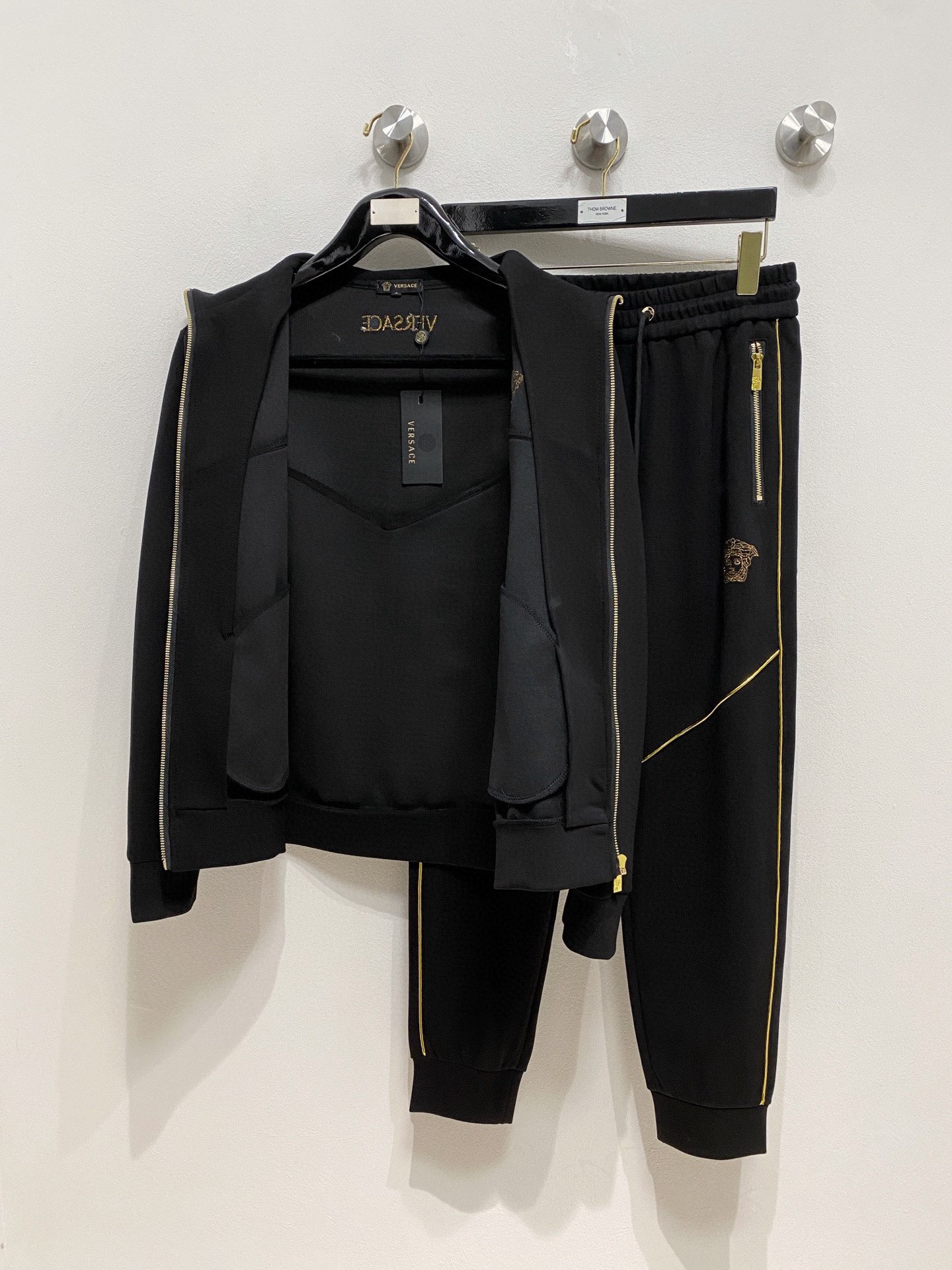 这款衣服是AAAAA 1:1 质量 (非常棒). 使用了和原版一模一样的材料. 商标部分也保持了和范思哲/Versace一样. 图片拍摄是实物衣服拍摄, 您所收到的实物保证和我们图片一模一样.