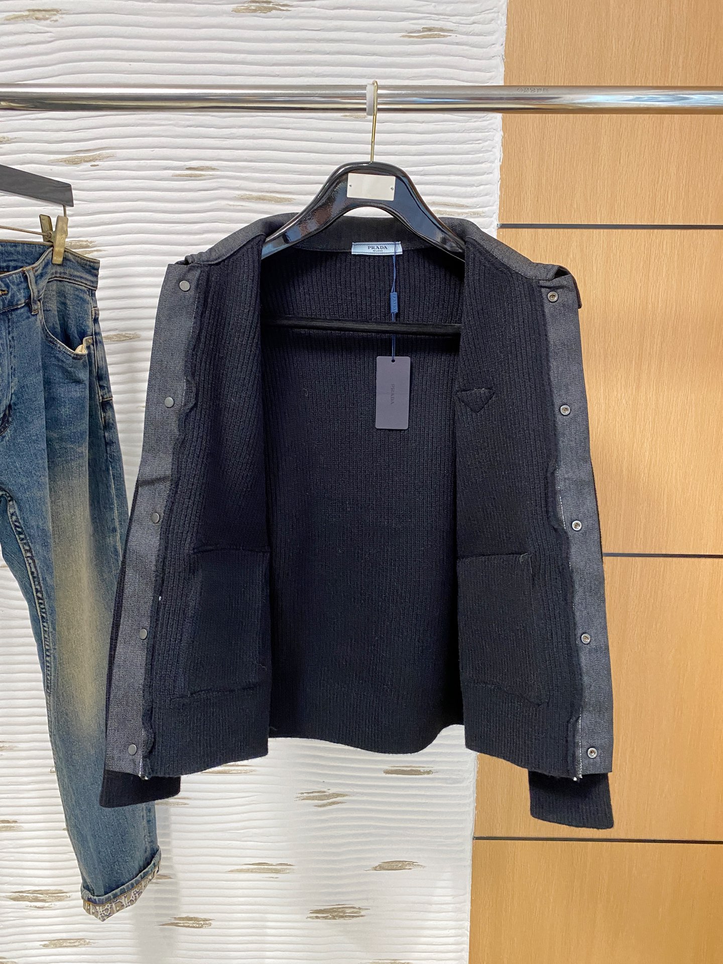 这款衣服是AAAAA 1:1 质量 (非常棒). 使用了和原版一模一样的材料. 商标部分也保持了和普拉达/Prada一样. 图片拍摄是实物衣服拍摄, 您所收到的实物保证和我们图片一模一样.